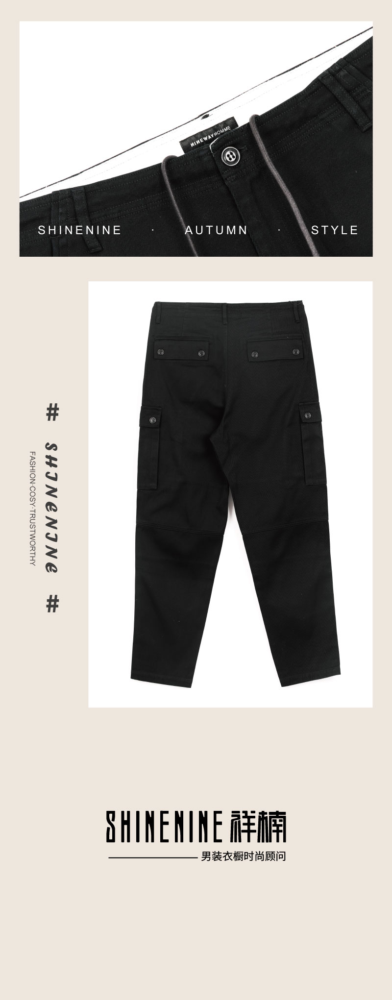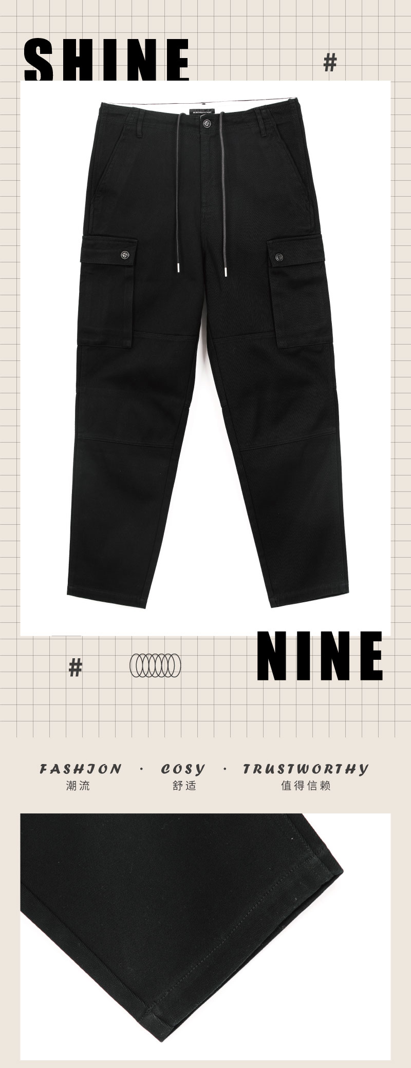 932U05口袋装饰梭织裤
