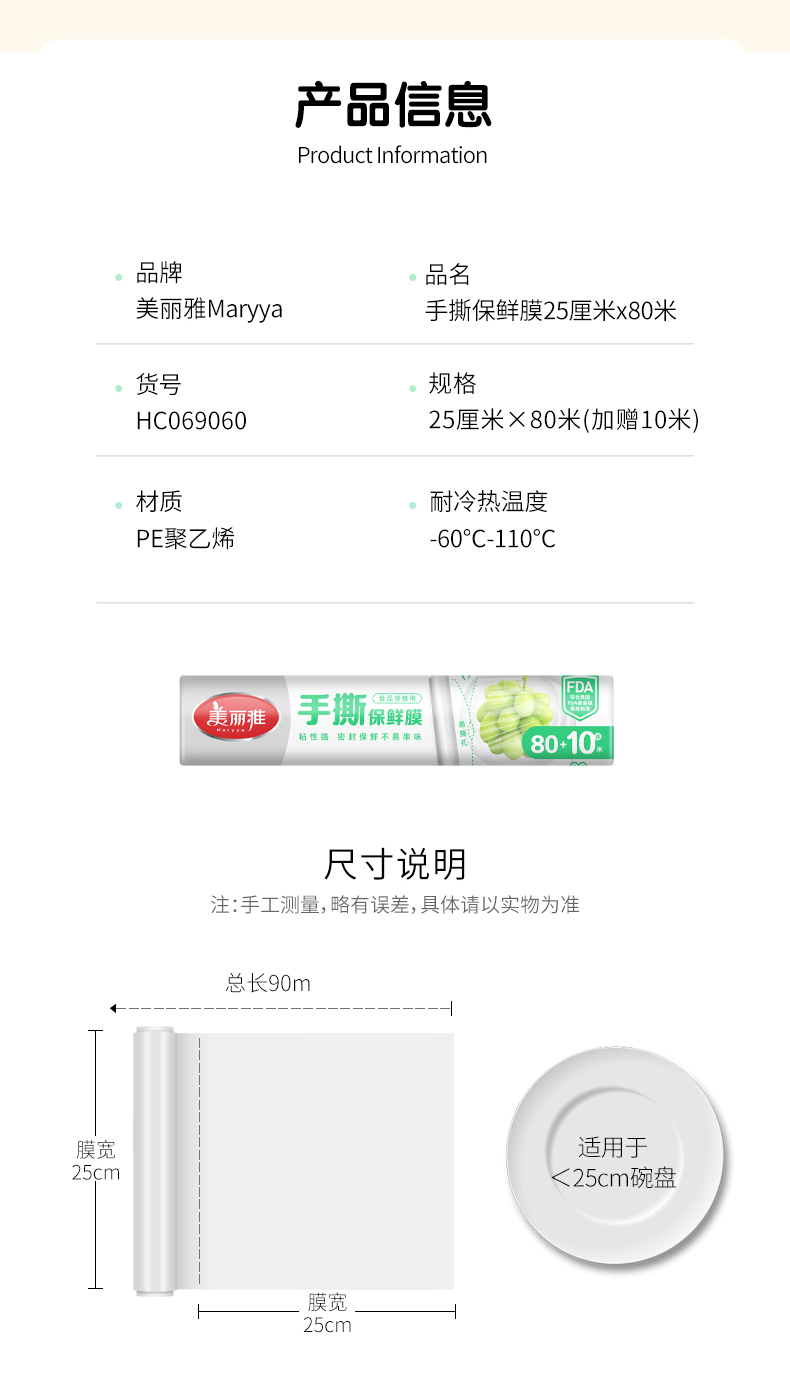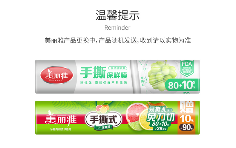 【批发】美丽雅易撕PE保鲜膜25CM*(80米+赠10米)
