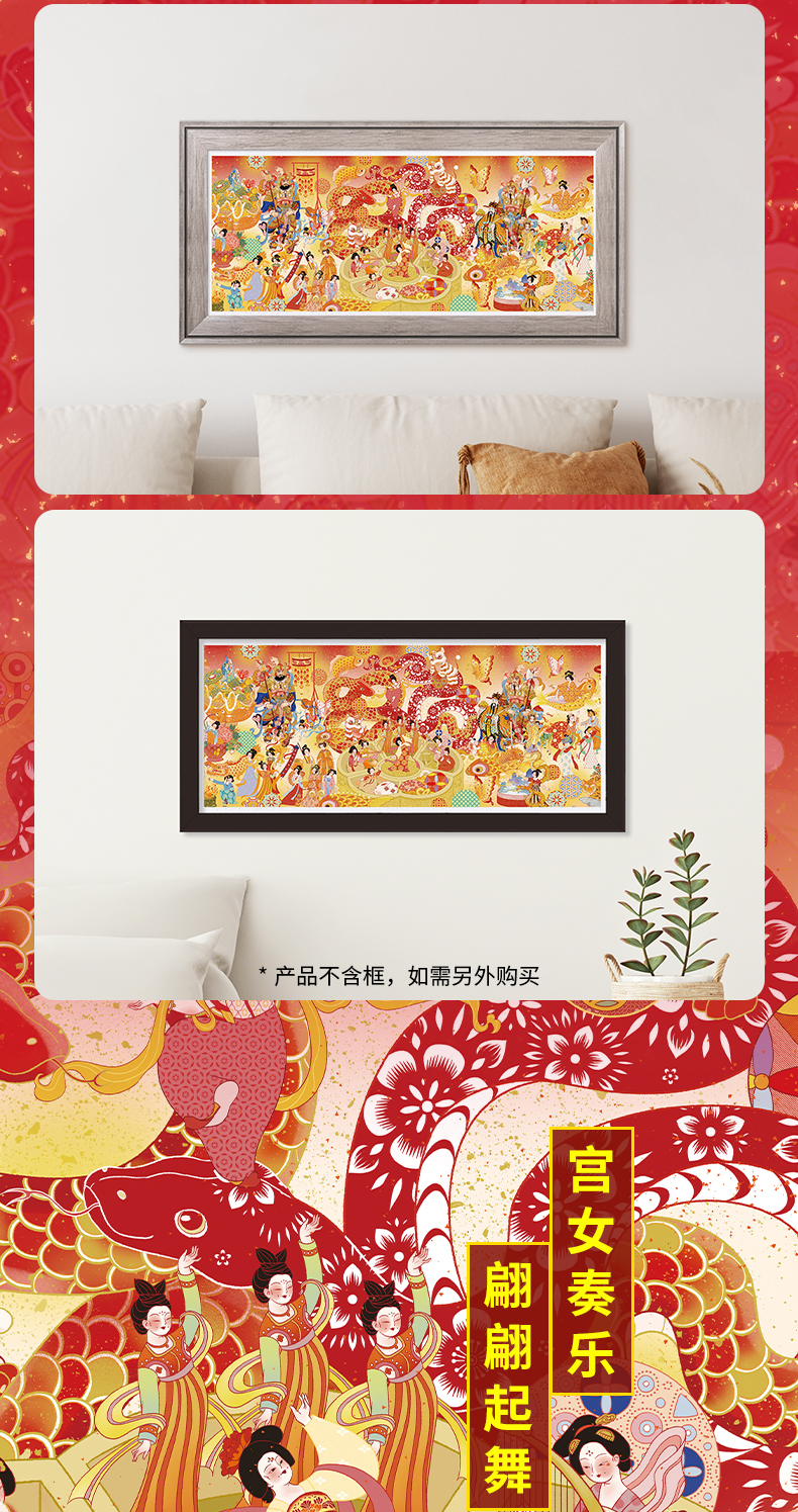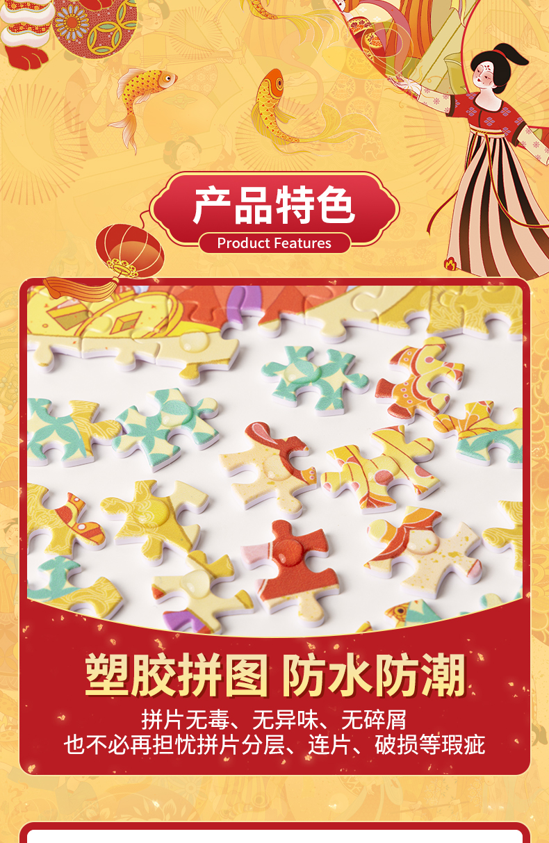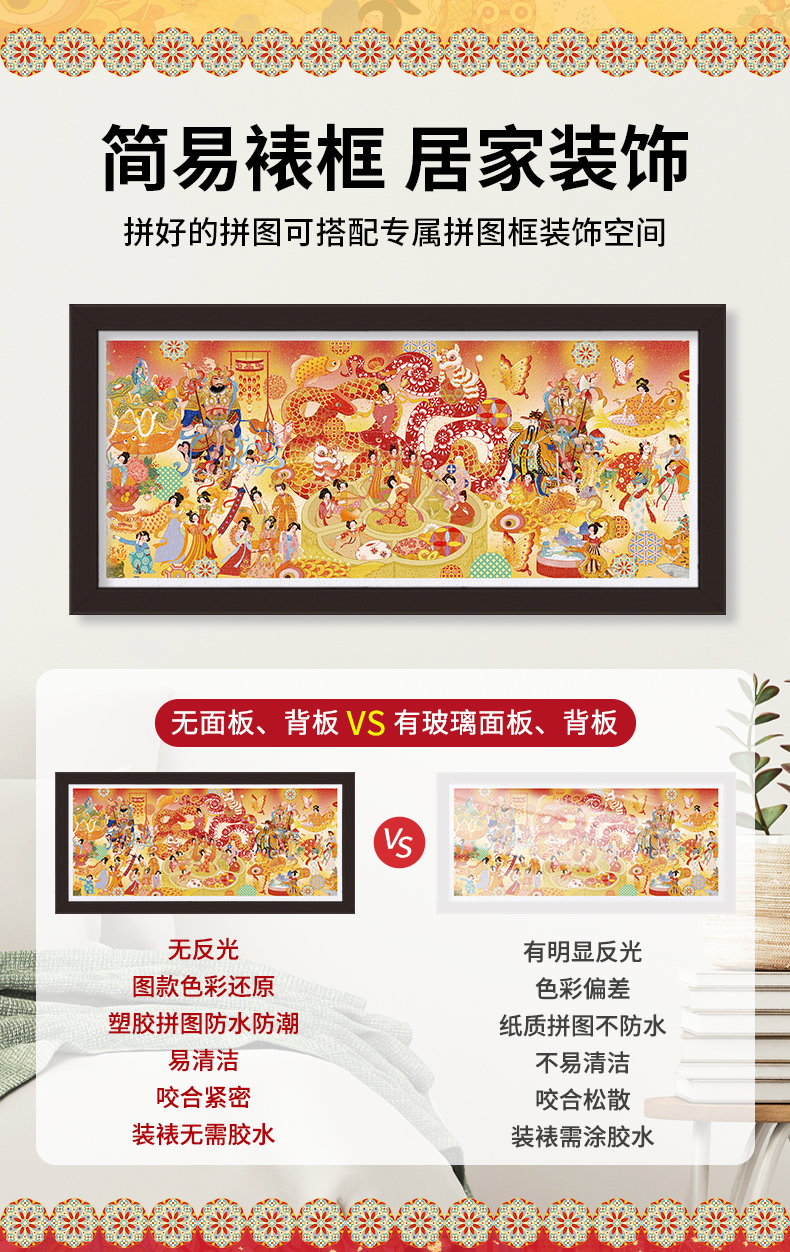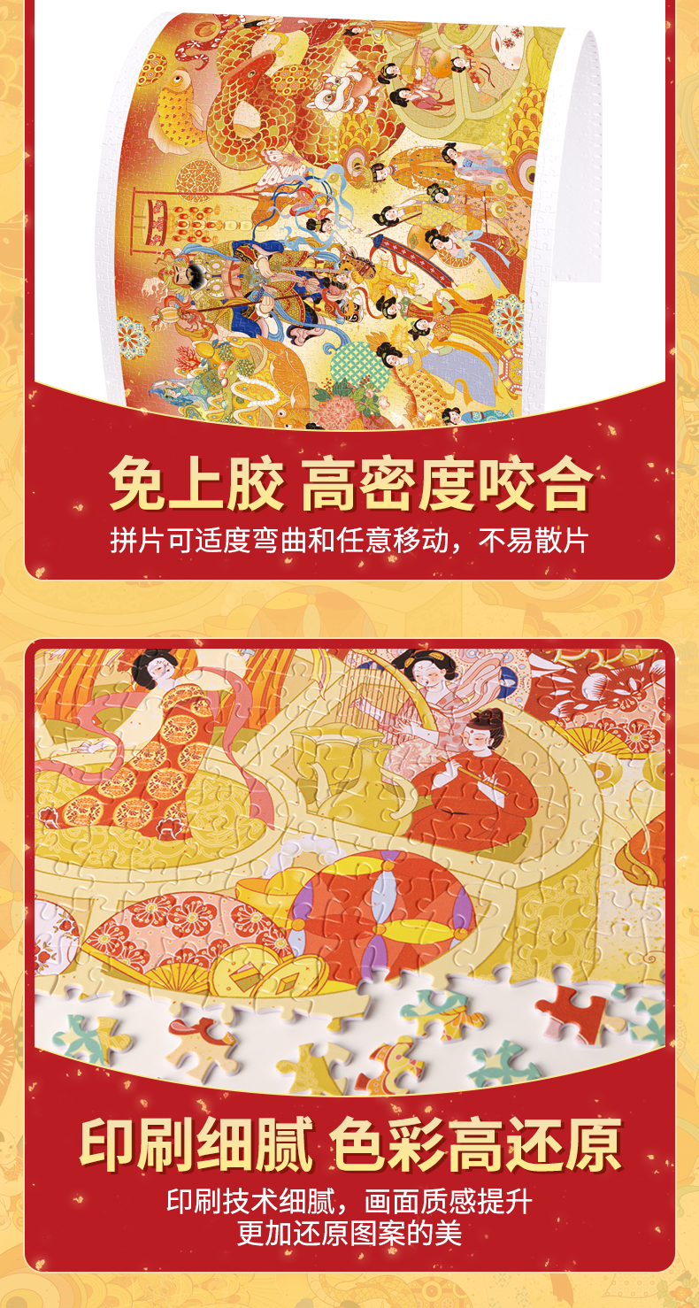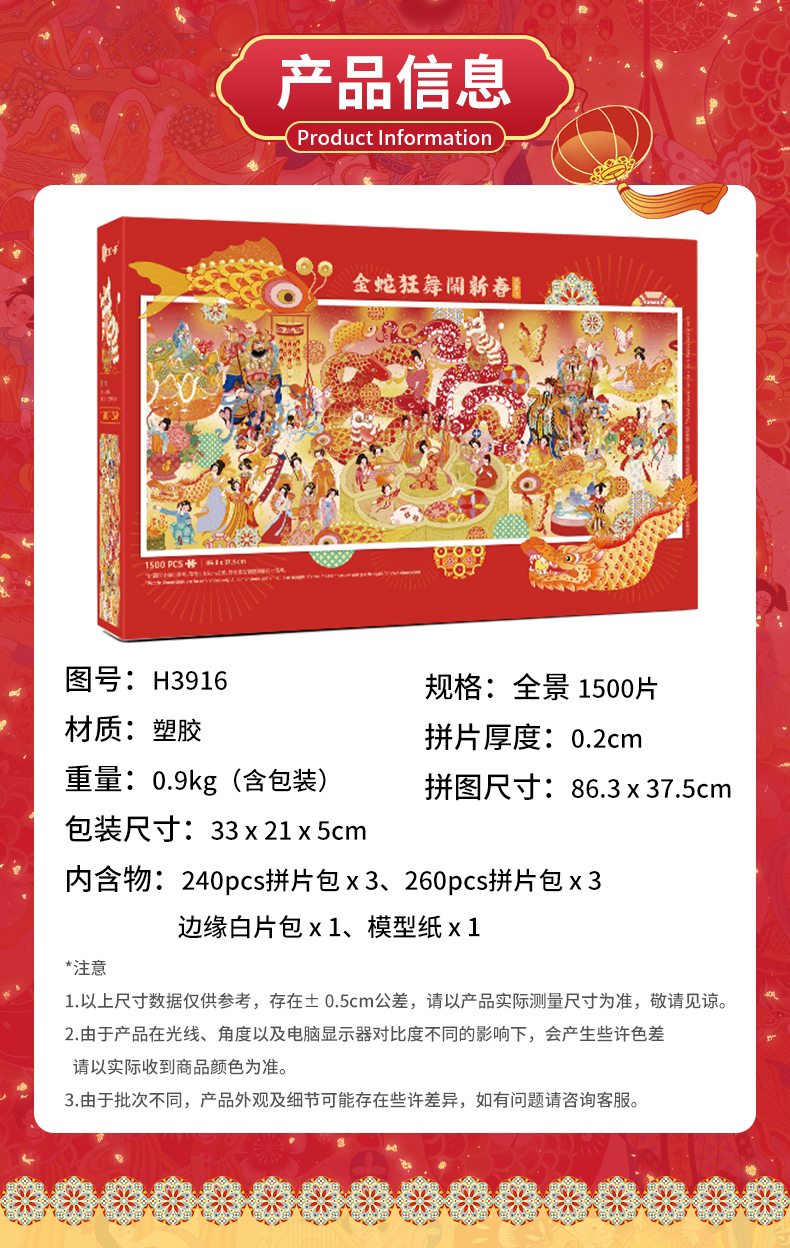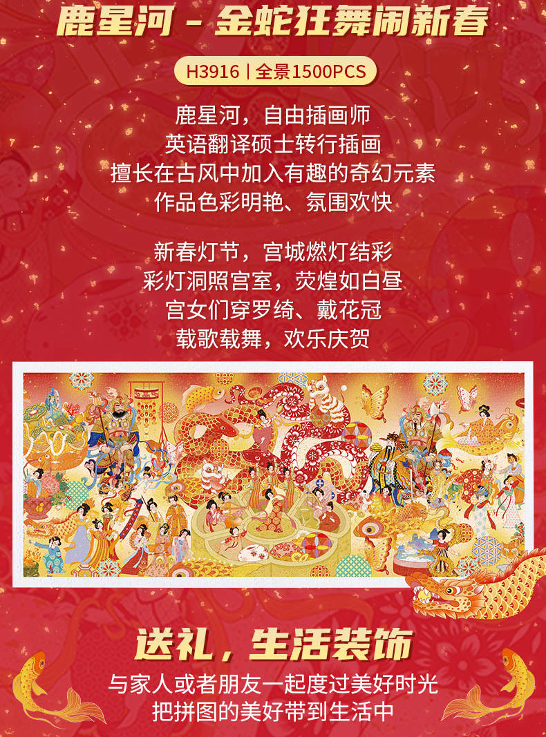 【折扣商品 不退不换】1500片 平面塑料拼图 H3916 全景长版拼图-鹿星河-金蛇狂舞闹新春