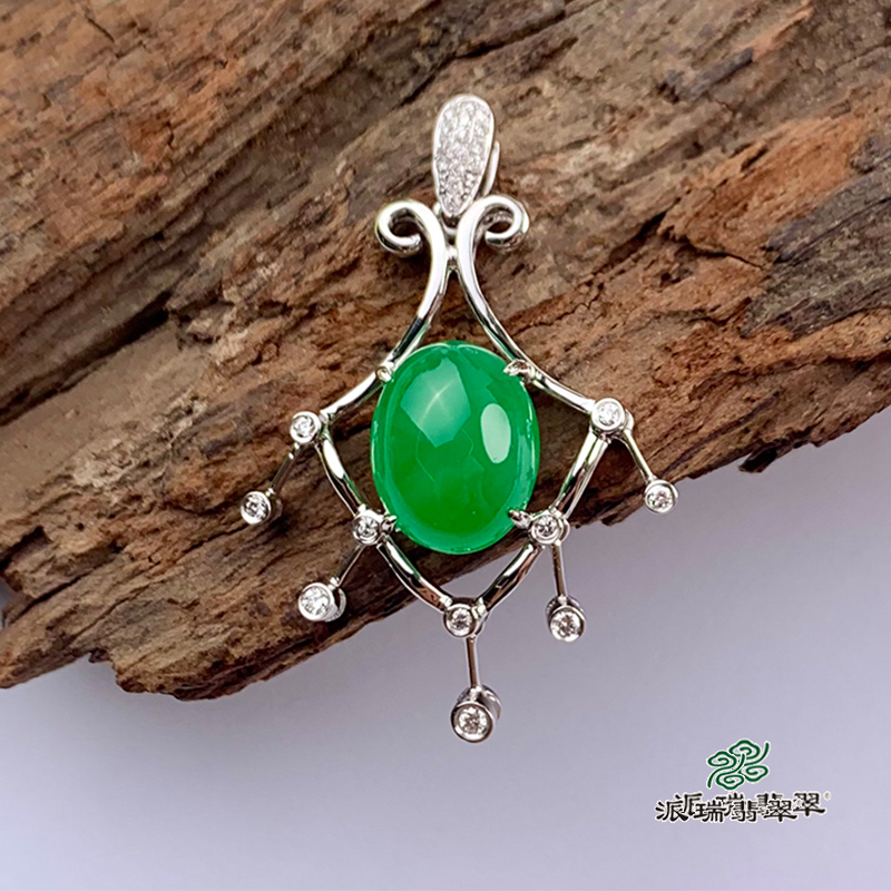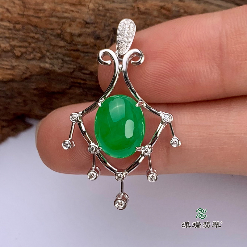 派瑞翡翠 18k金翡翠吊坠 冰种 绿色