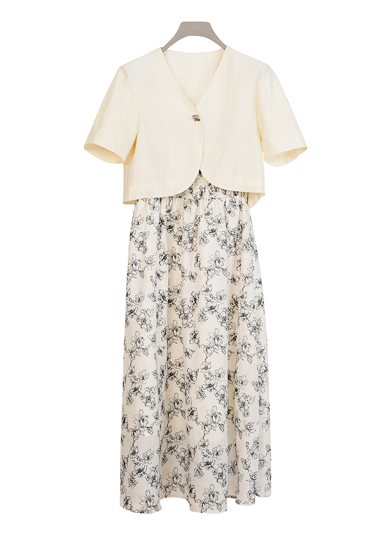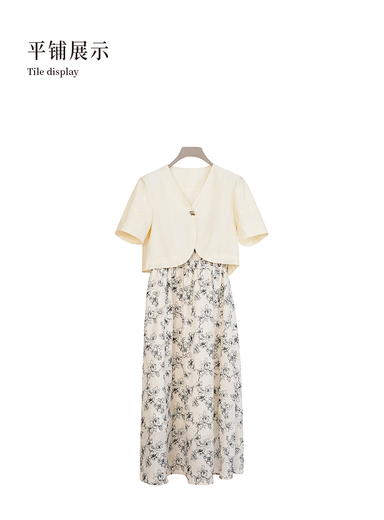 oldcolour商场同款夏季时尚气质优雅碎花连衣裙套装女Q231011A1