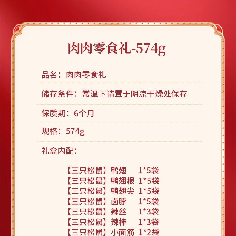 三只松鼠肉肉零食礼574g麻辣零食礼-XL