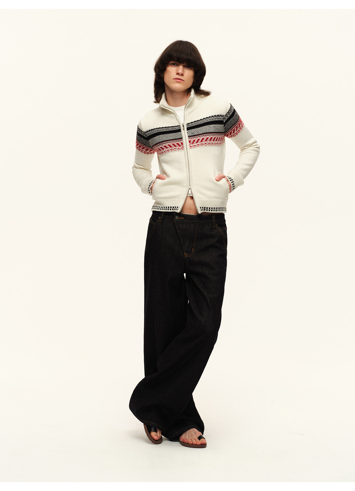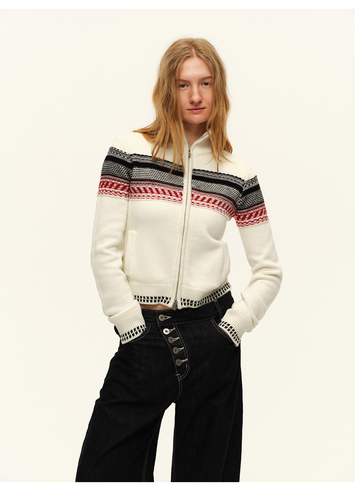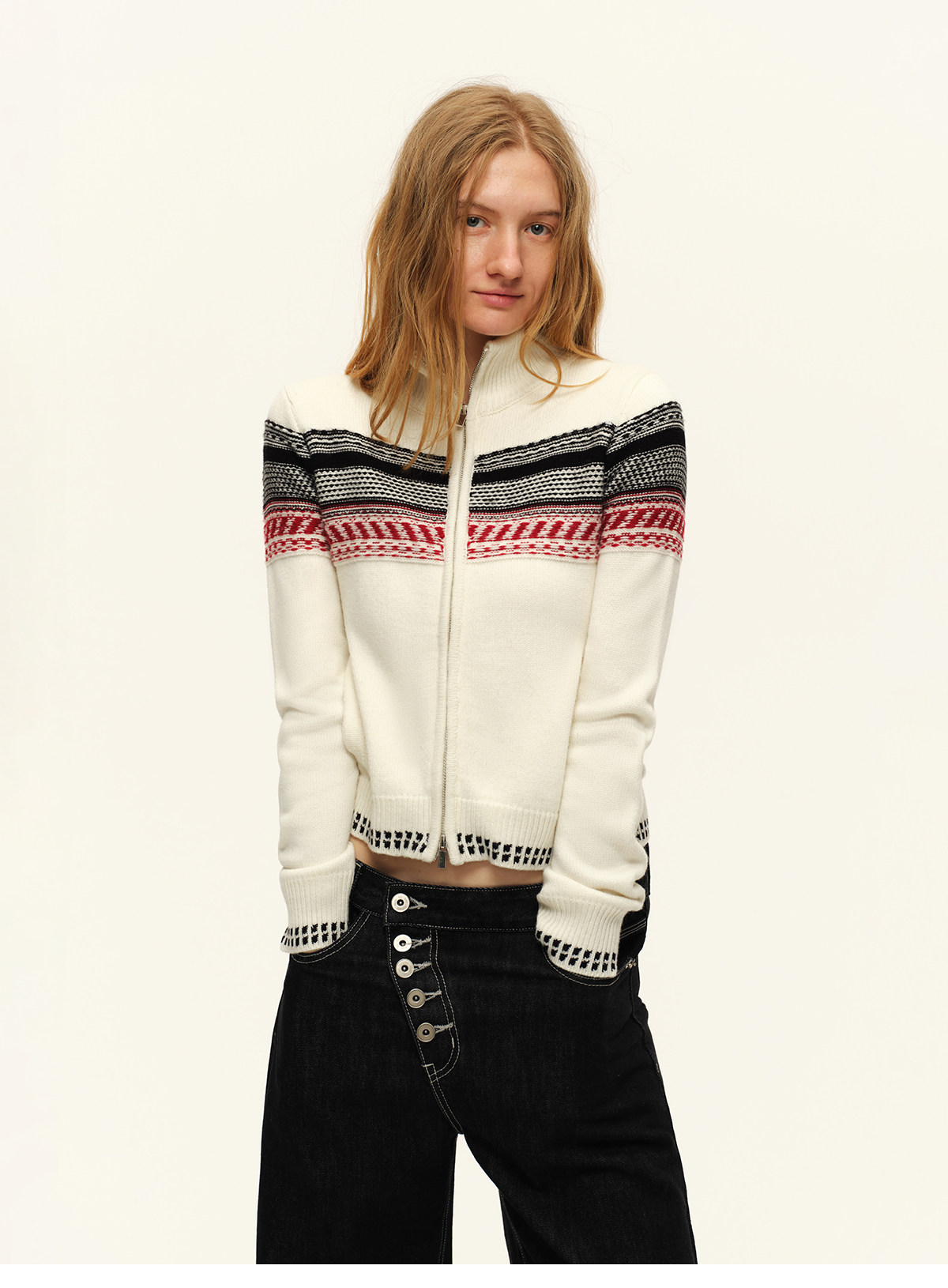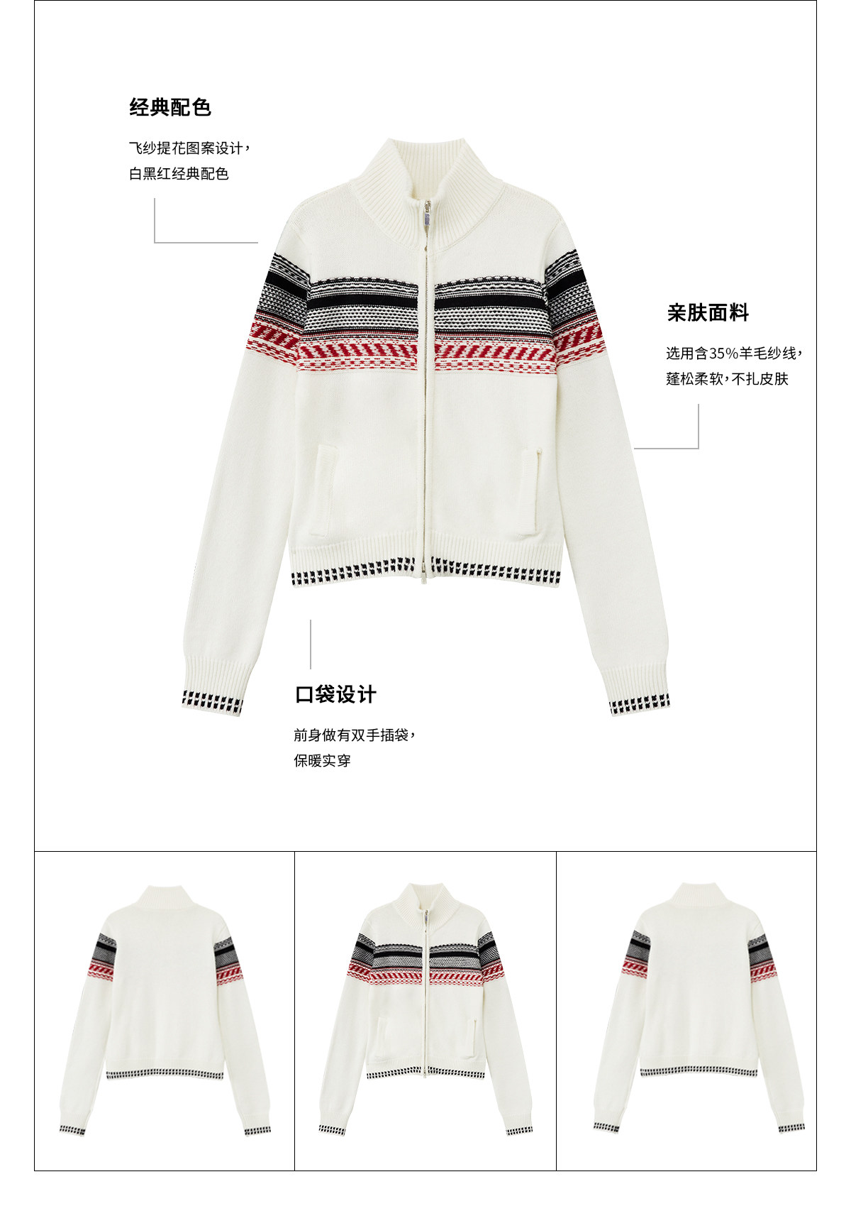 出逃赤岗西/C26SSE029/复古立领提花羊毛毛衣外套