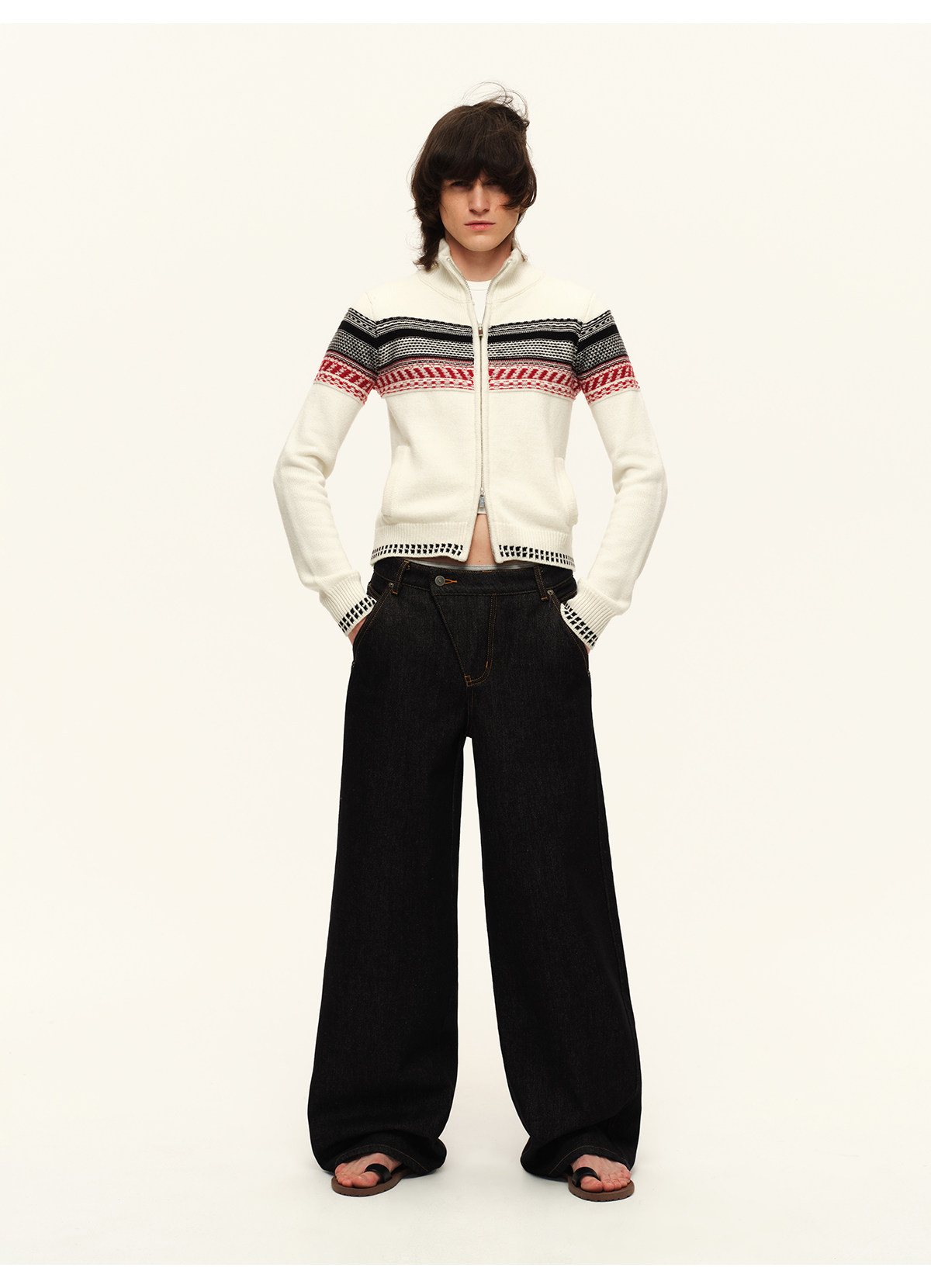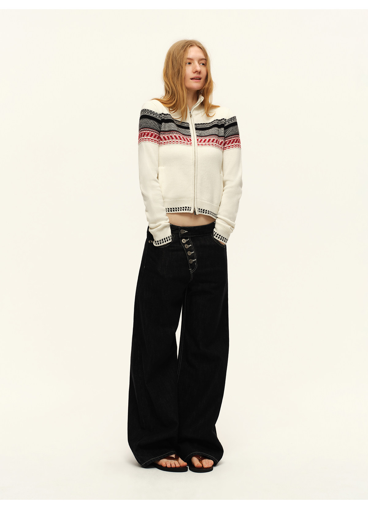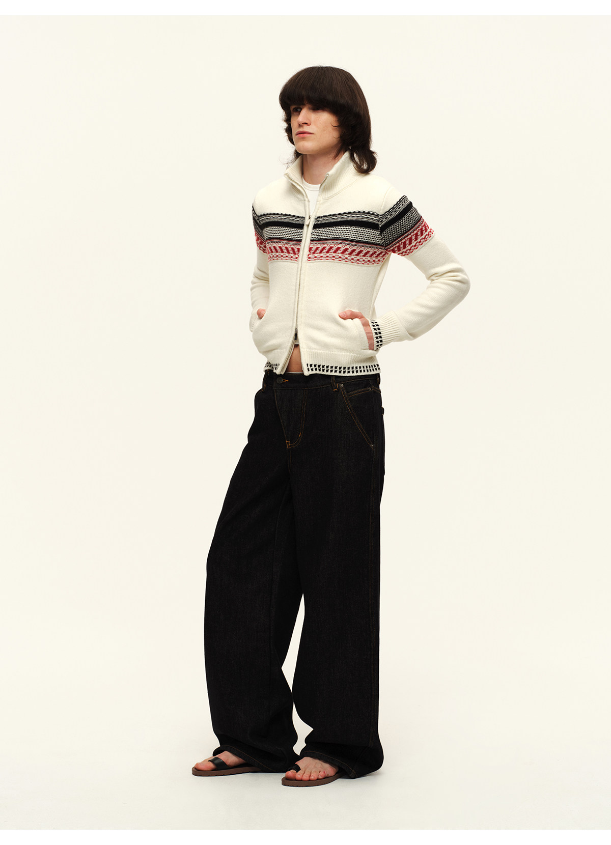 出逃赤岗西/C26SSE029/复古立领提花羊毛毛衣外套