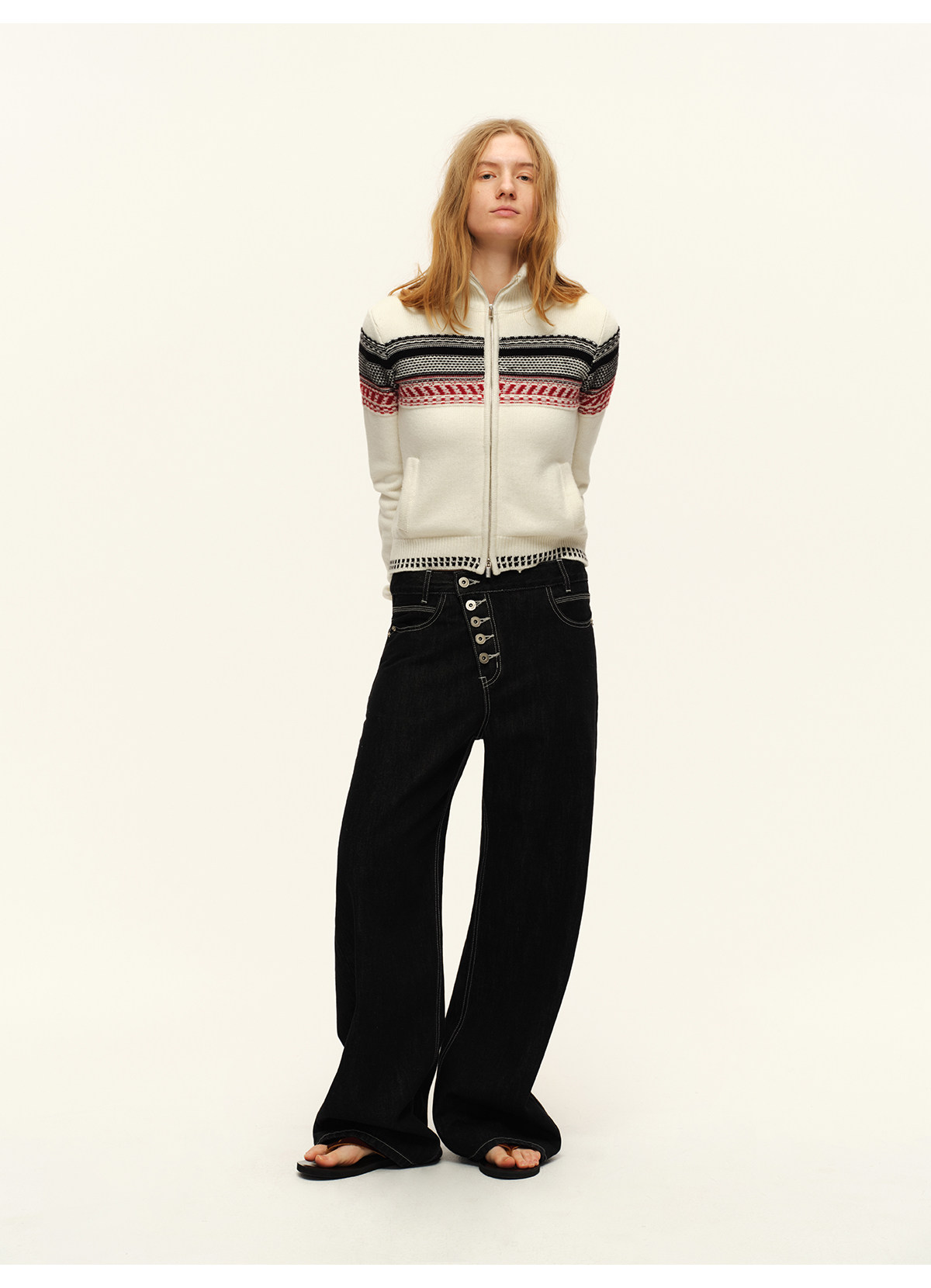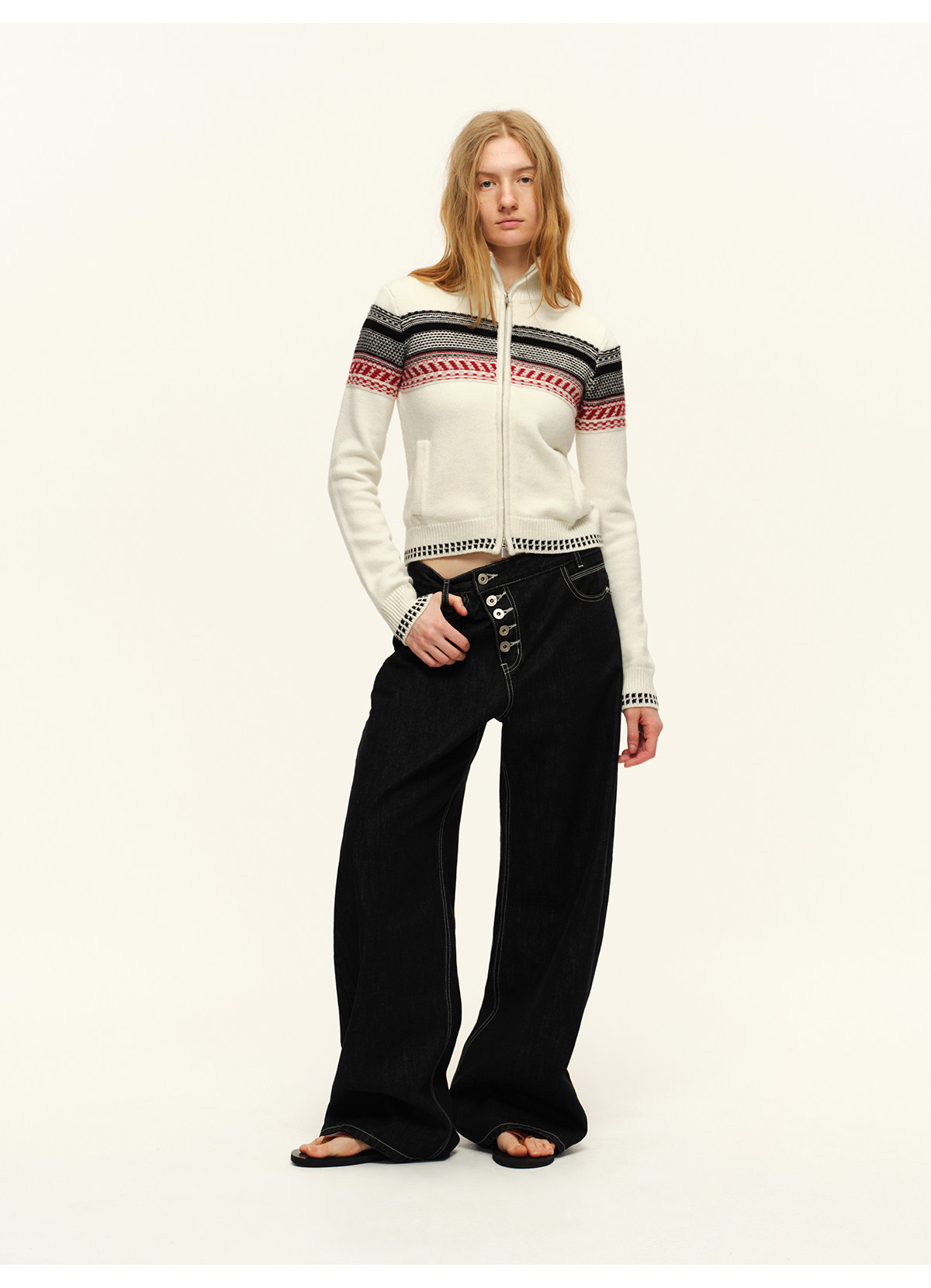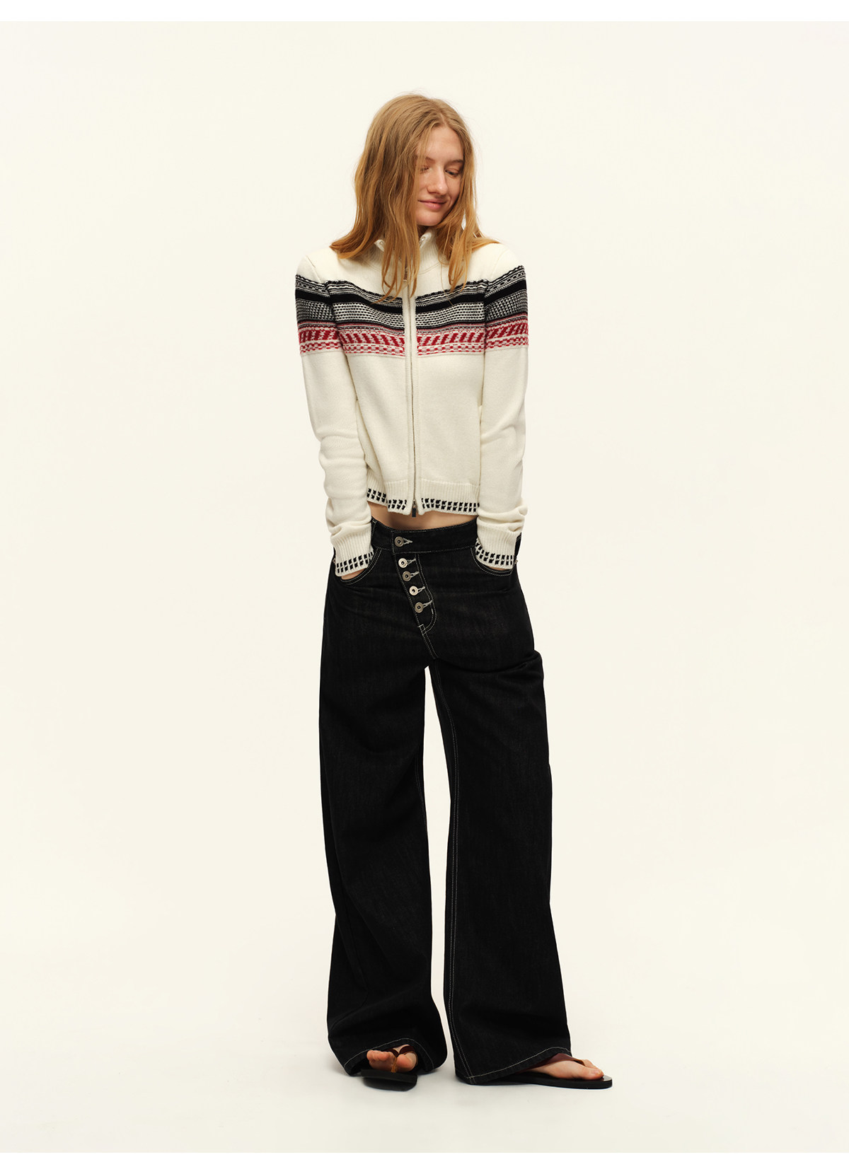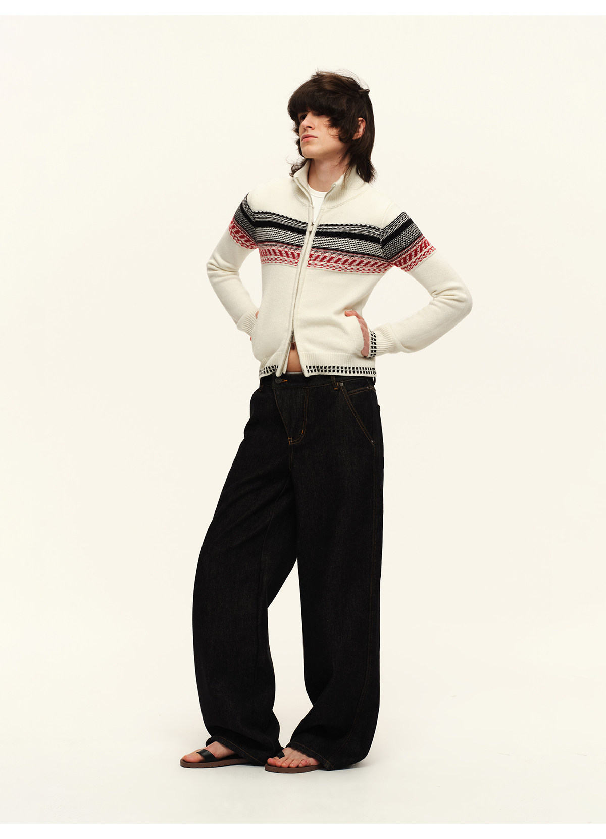 出逃赤岗西/C26SSE029/复古立领提花羊毛毛衣外套