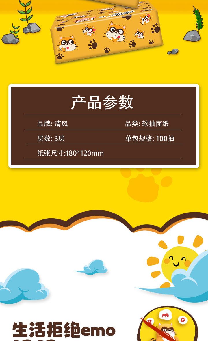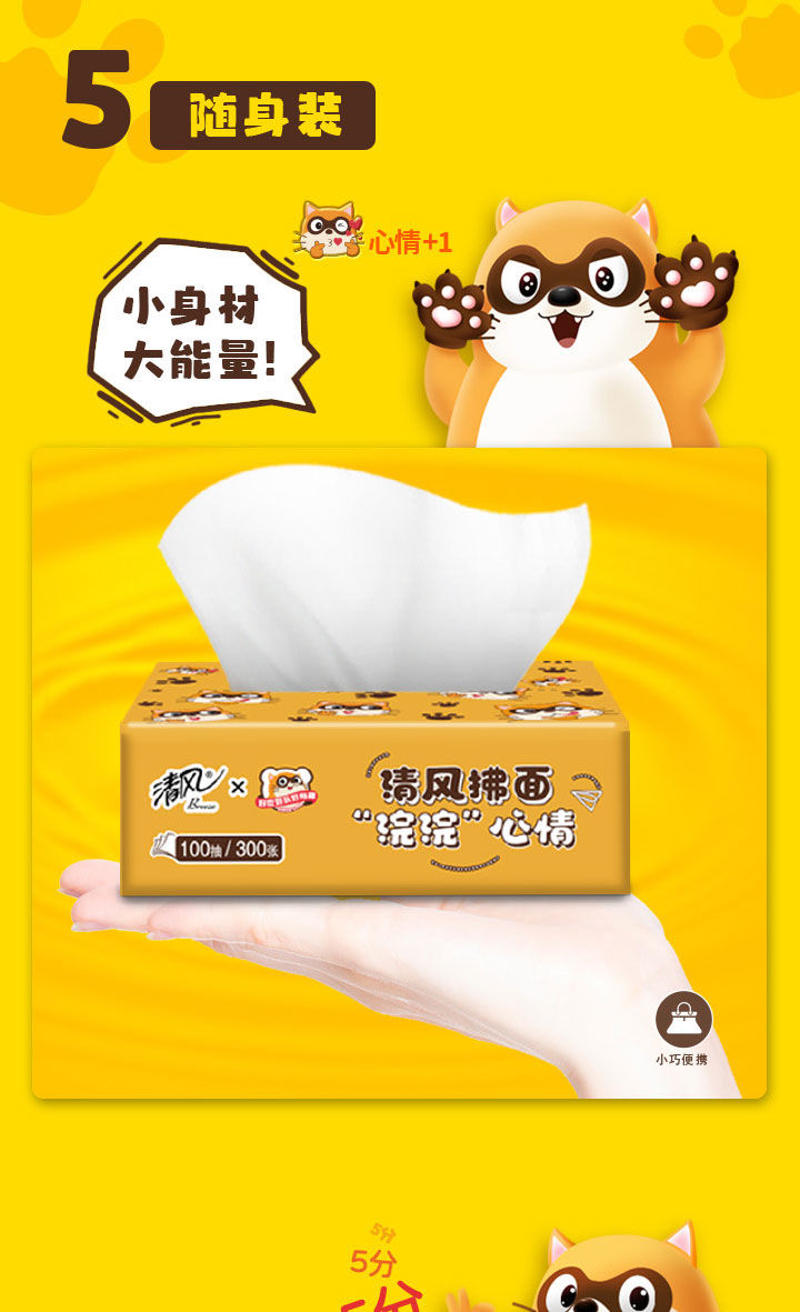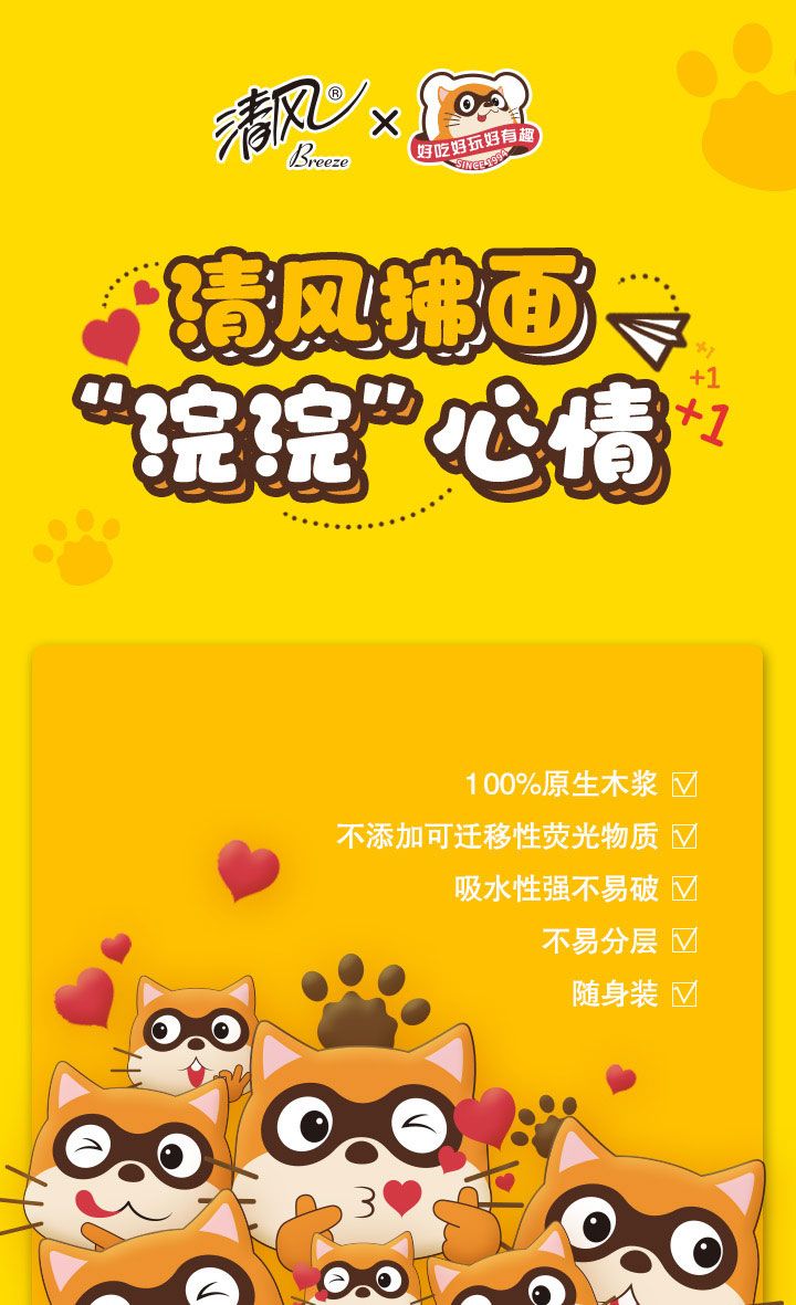 清风|“浣浣”联名表情面巾抽纸超柔软、不易破超低价到手24包/箱