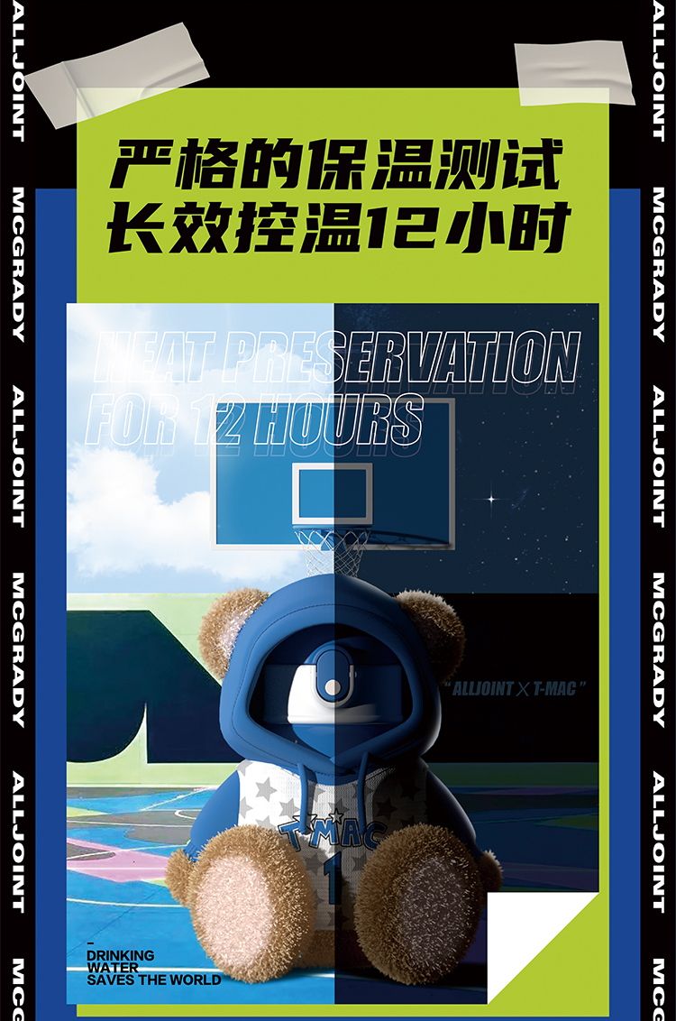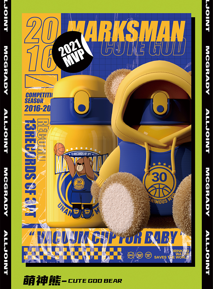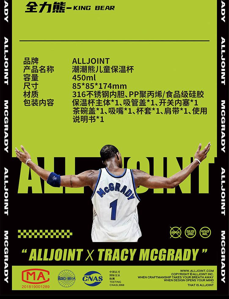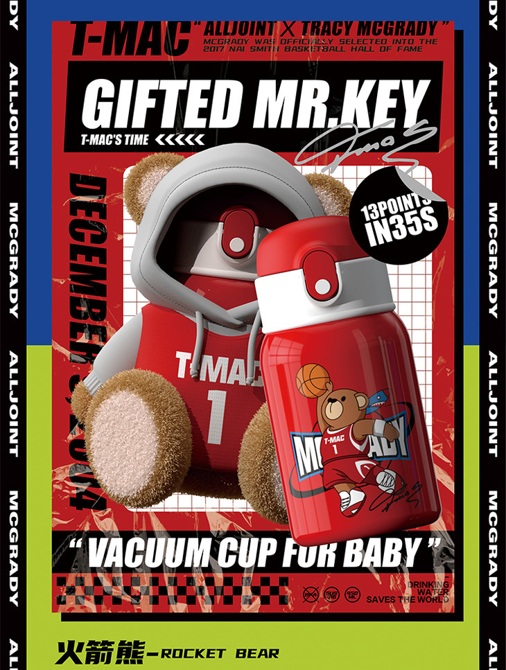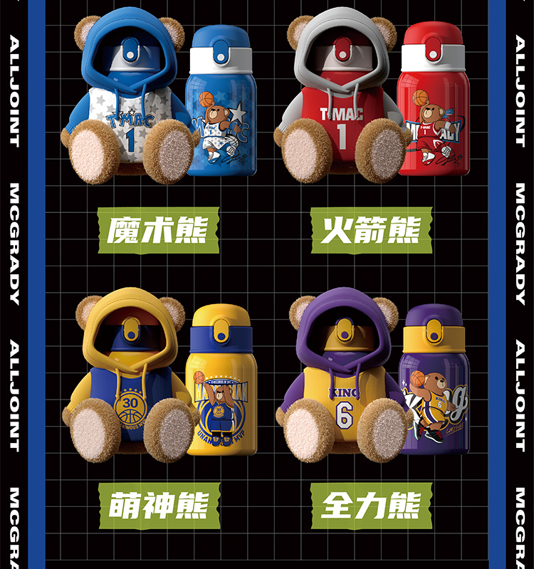 【秋冬热卖】ALL-JOINT优仅潮潮熊卫衣熊保温杯ins风儿童创意吸管杯带杯套双盖450ml礼袋装【ALL-JOINT】