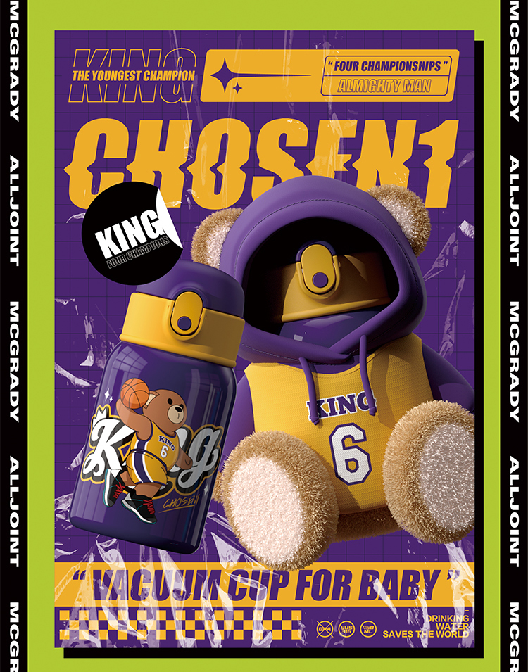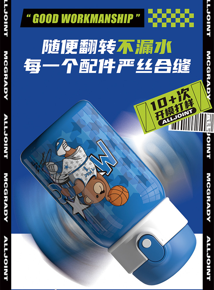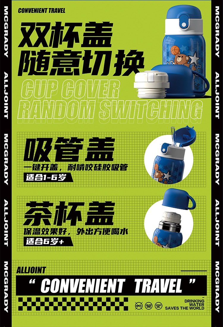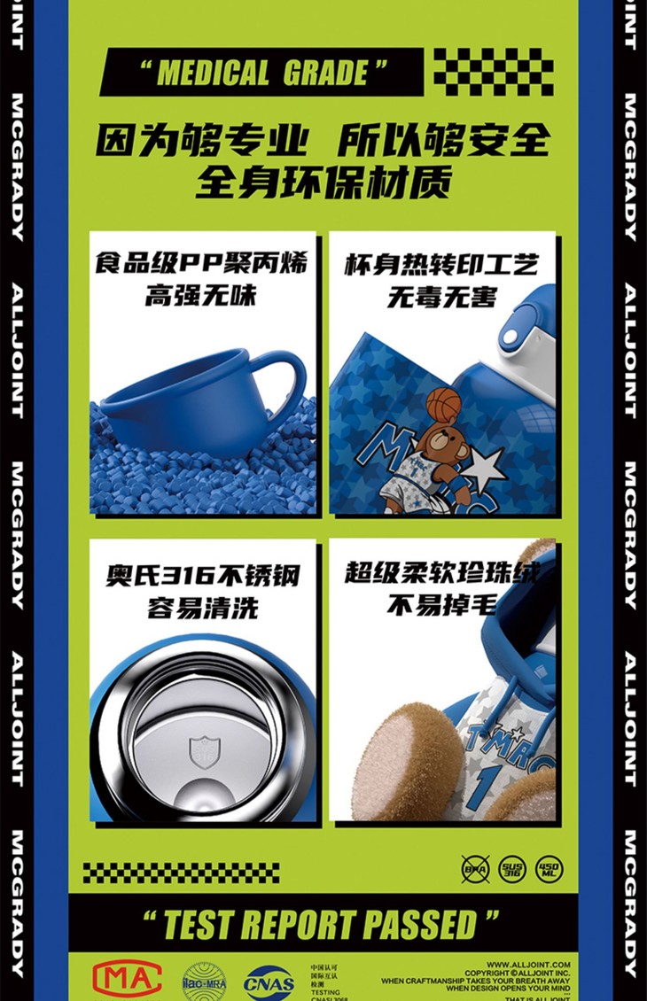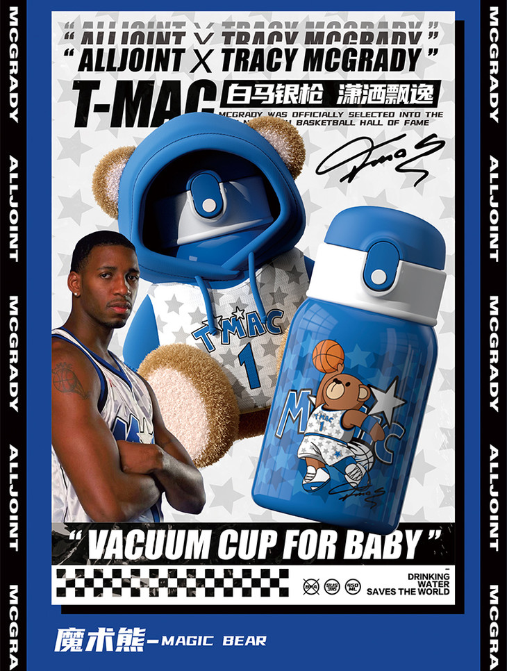 【秋冬热卖】ALL-JOINT优仅潮潮熊卫衣熊保温杯ins风儿童创意吸管杯带杯套双盖450ml礼袋装【ALL-JOINT】