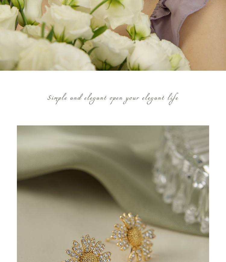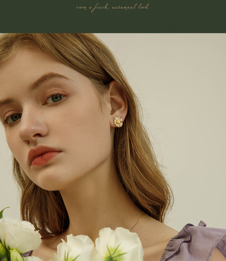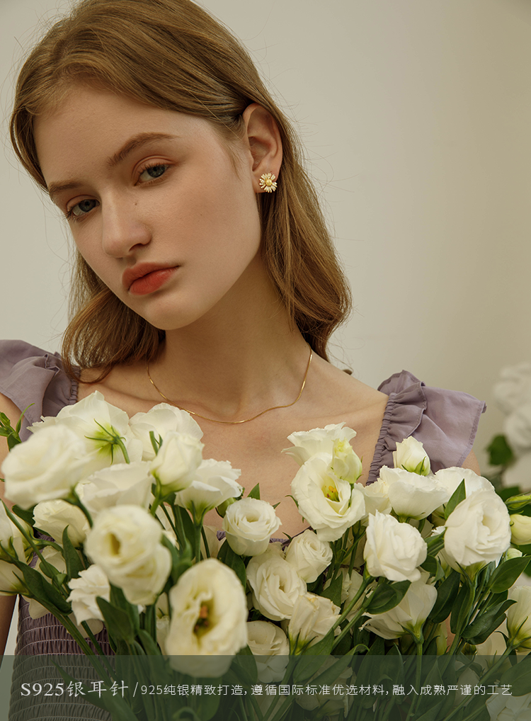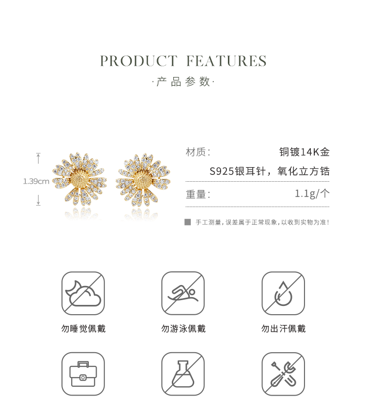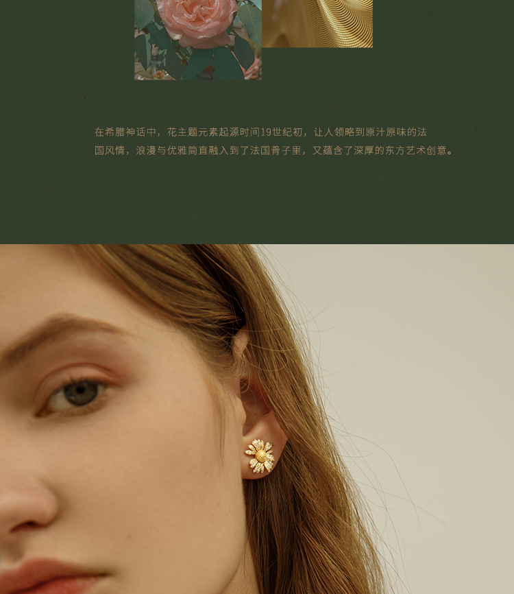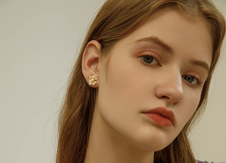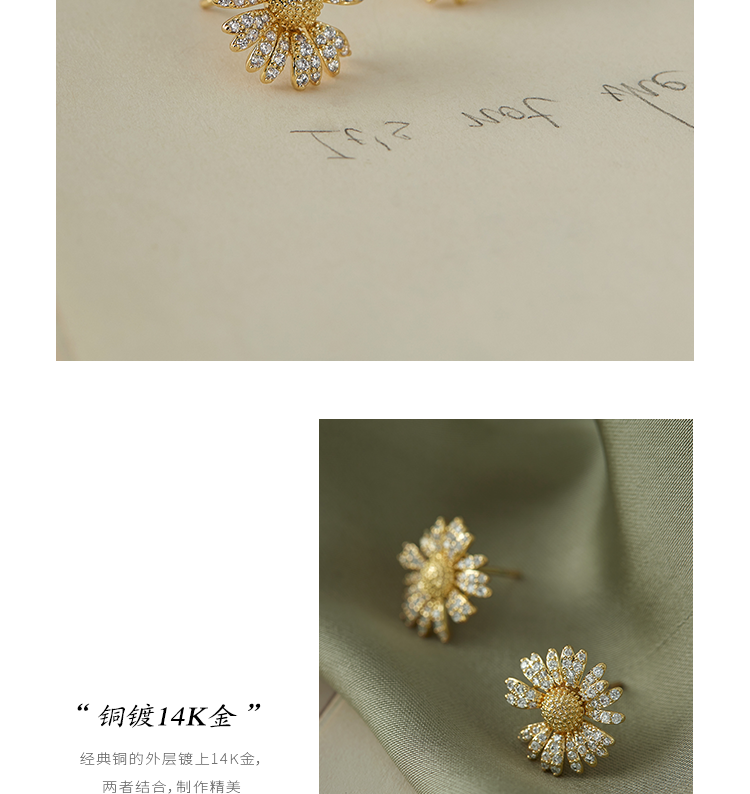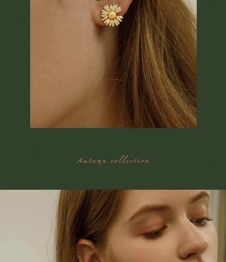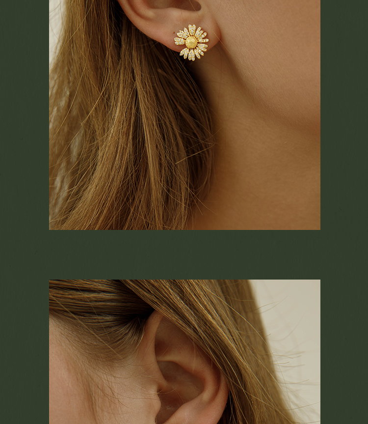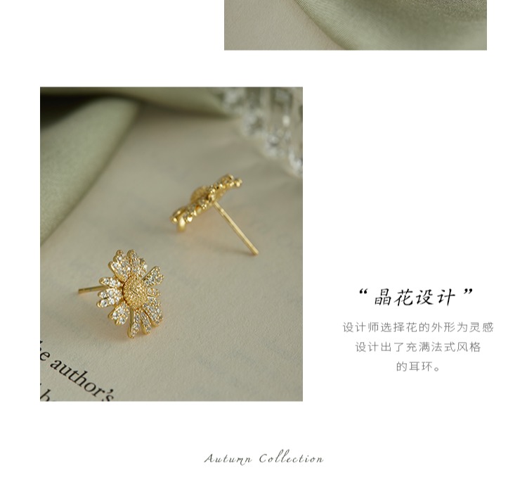 Oflye潮流饰品 向日葵耳环女锆石镶嵌花朵耳钉新款时尚甜美少女饰品