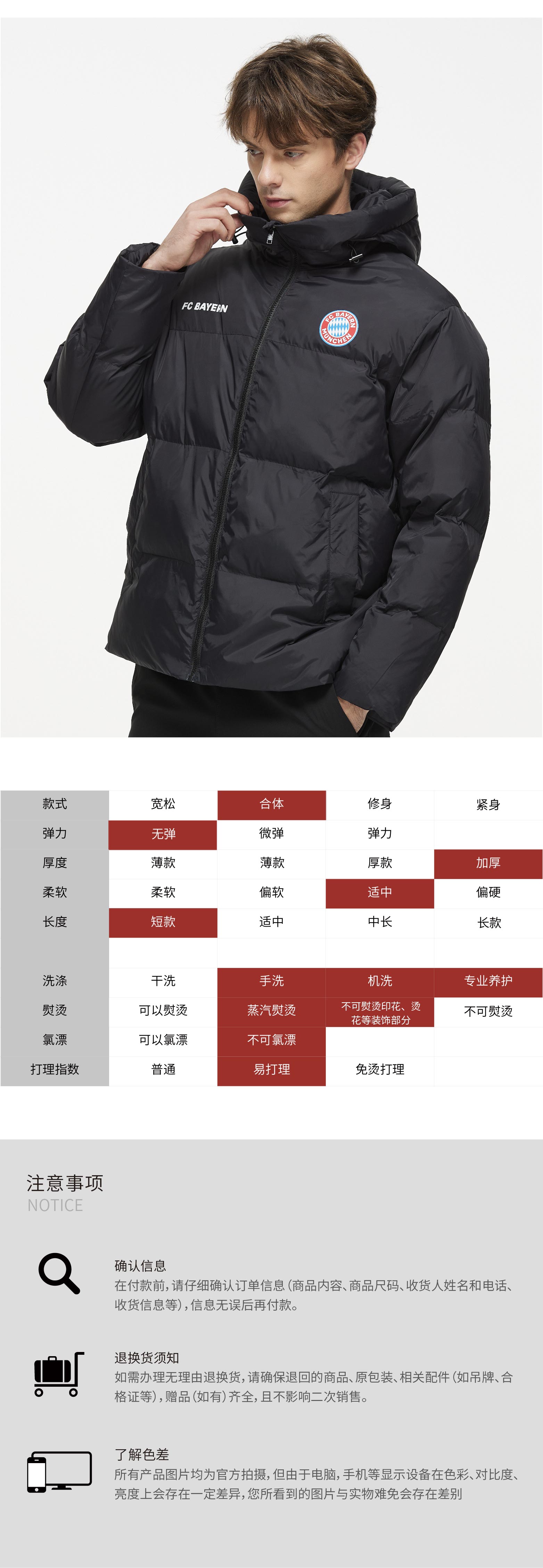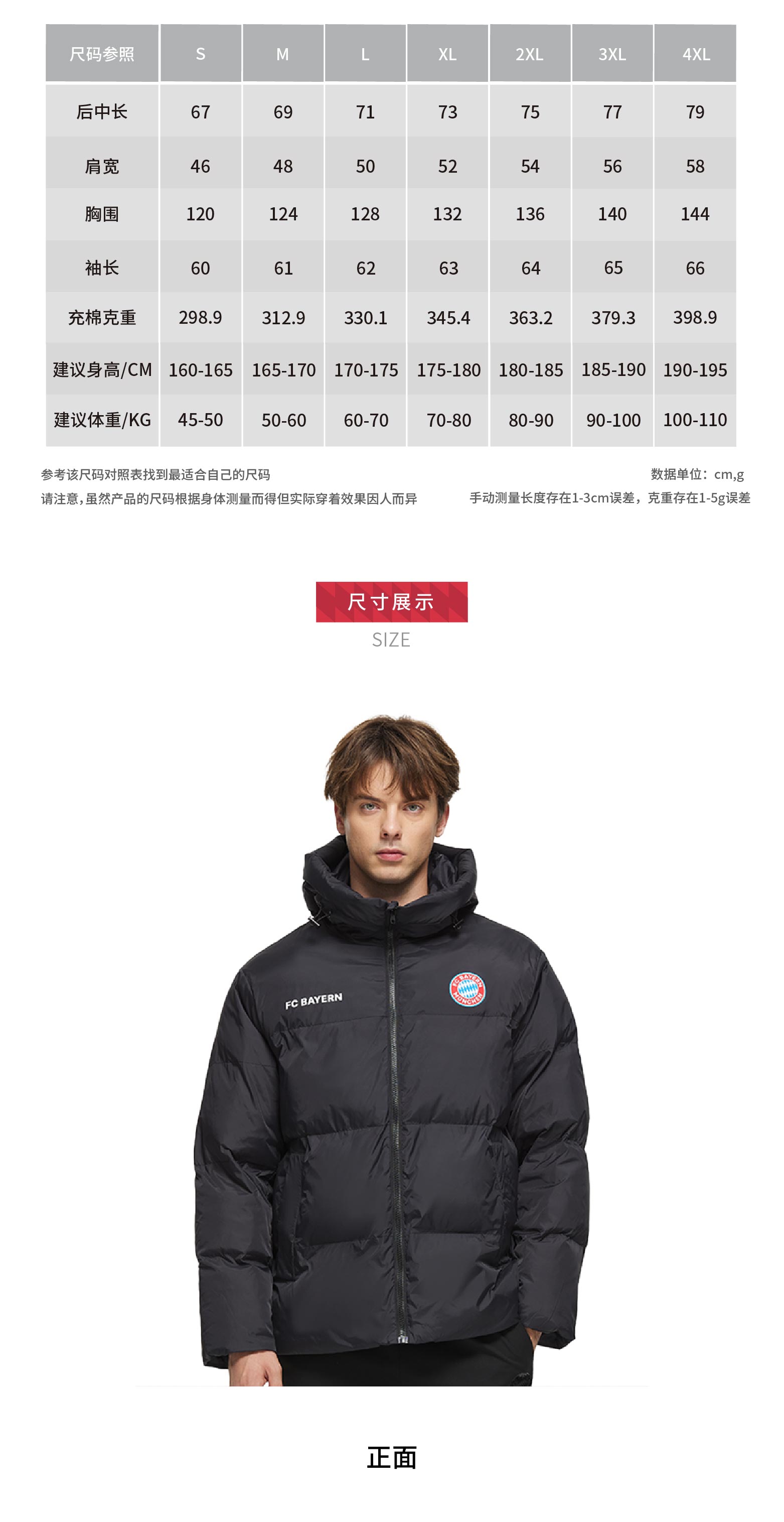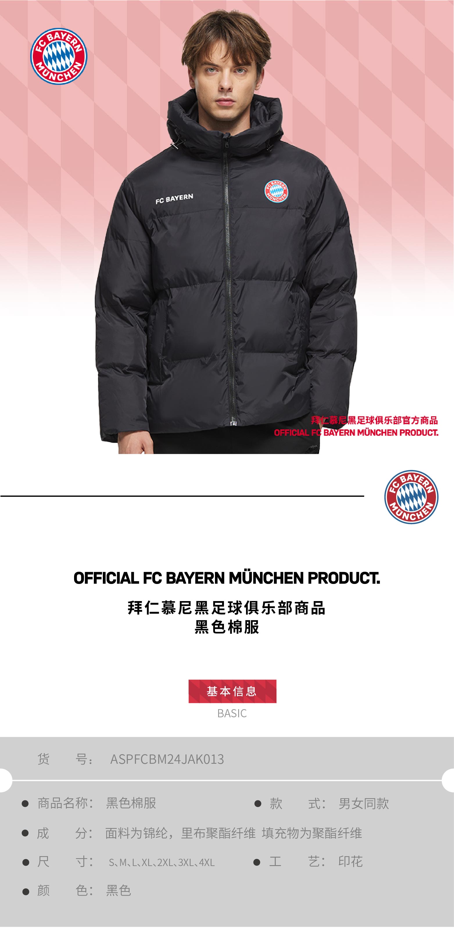【官方正版】拜仁慕尼黑足球俱乐部 | 高档黑棉服保暖高领球迷