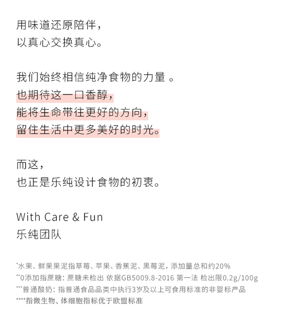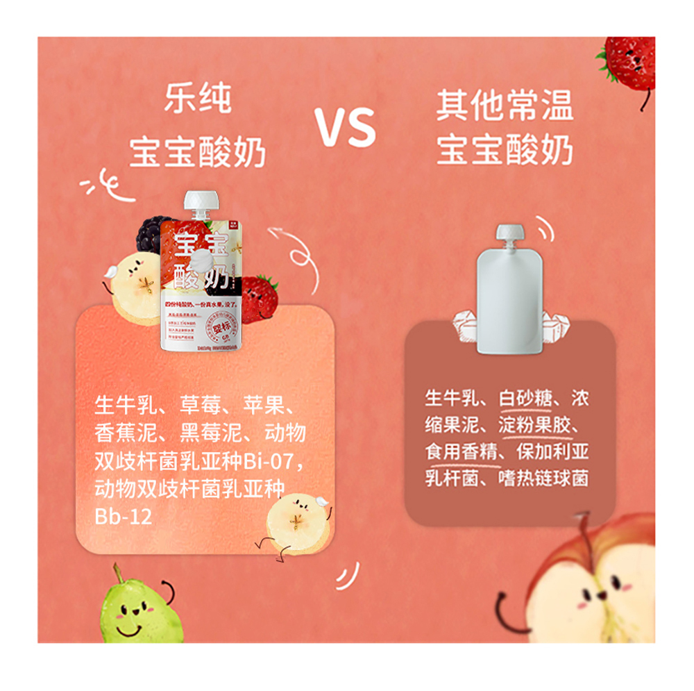 『纯净酸奶搭配真水果』乐纯宝宝酸奶 3.4g蛋白质+复合维生素 0添加蔗糖 草莓香蕉/无花果水蜜桃/蓝莓苹果/原味水果酸奶