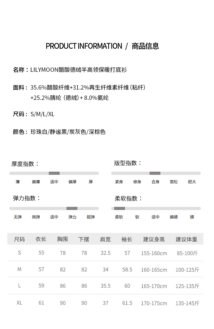 LILYMOON 醋酸德绒半高领保暖打底衫百搭发热保暖修身显瘦老钱风