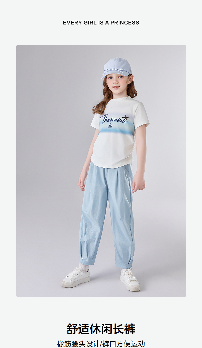 笛莎Deesha 童装女童裤子2025夏新款女童舒适休闲长裤