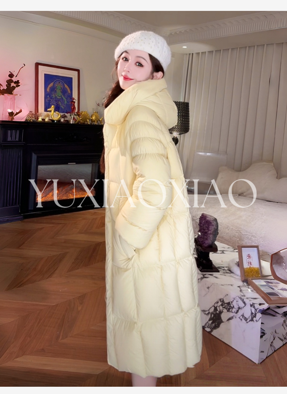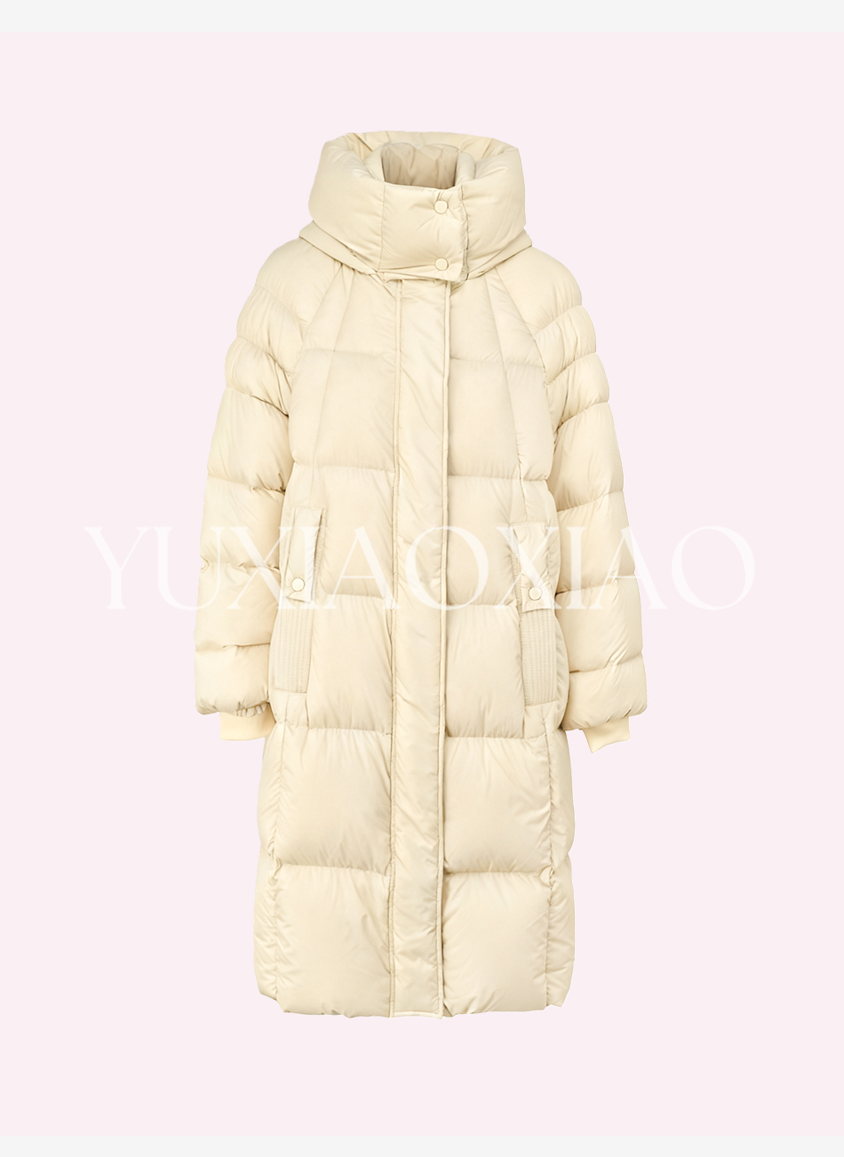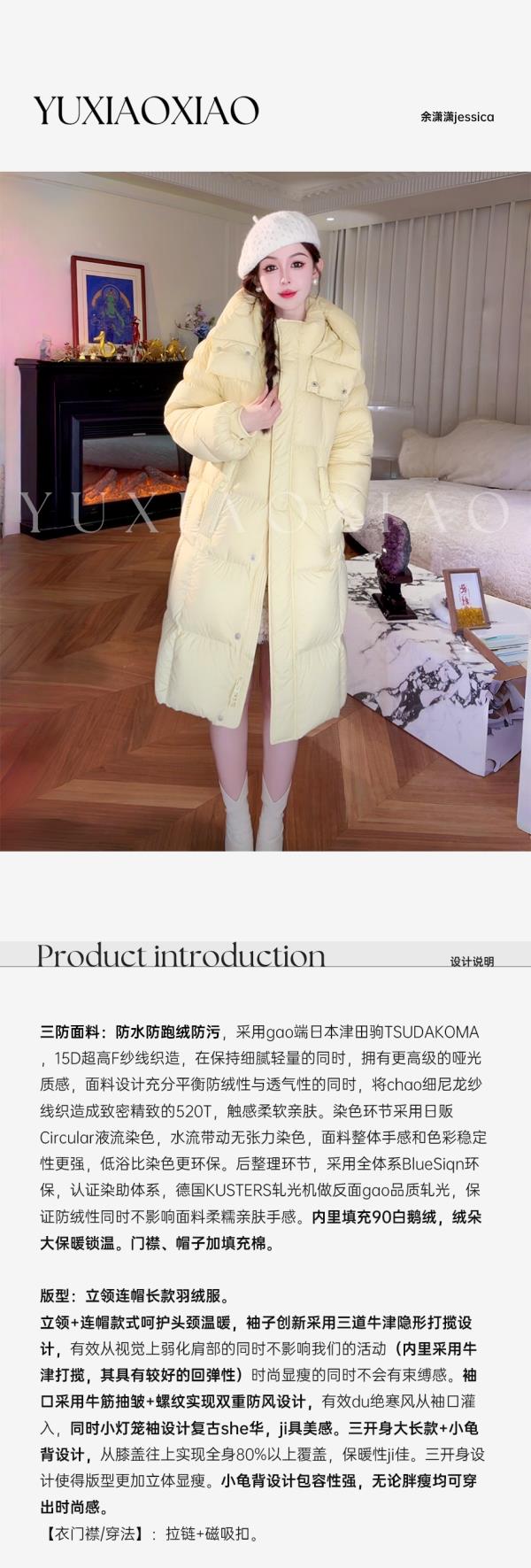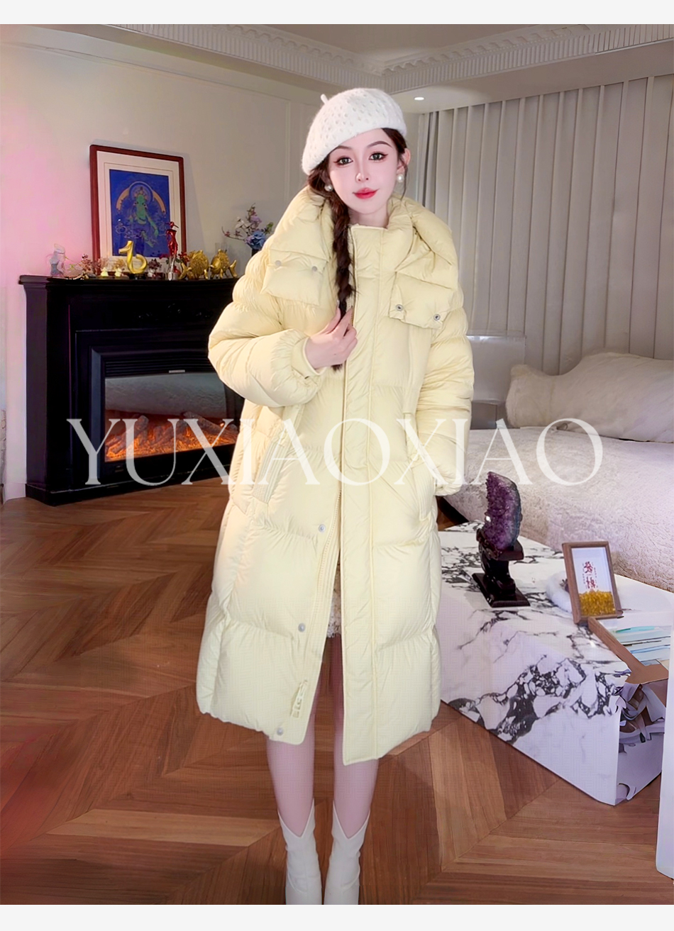余潇潇【北欧环游】高级感90白鹅绒三防面料保暖立领连帽长款羽绒服