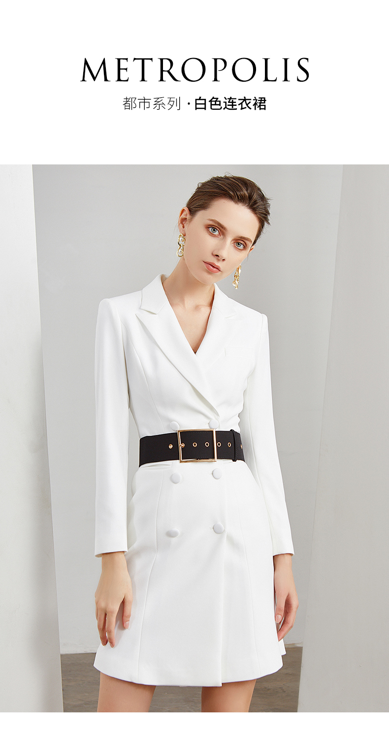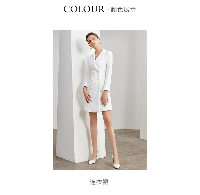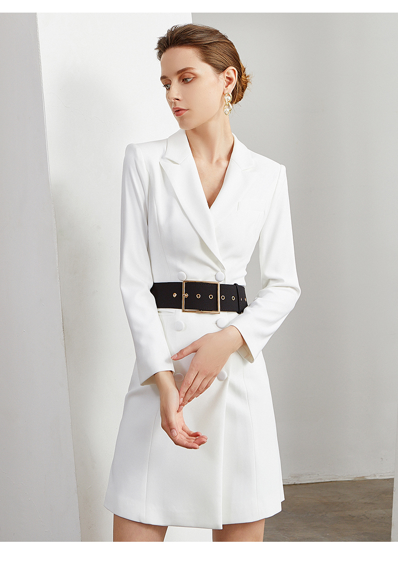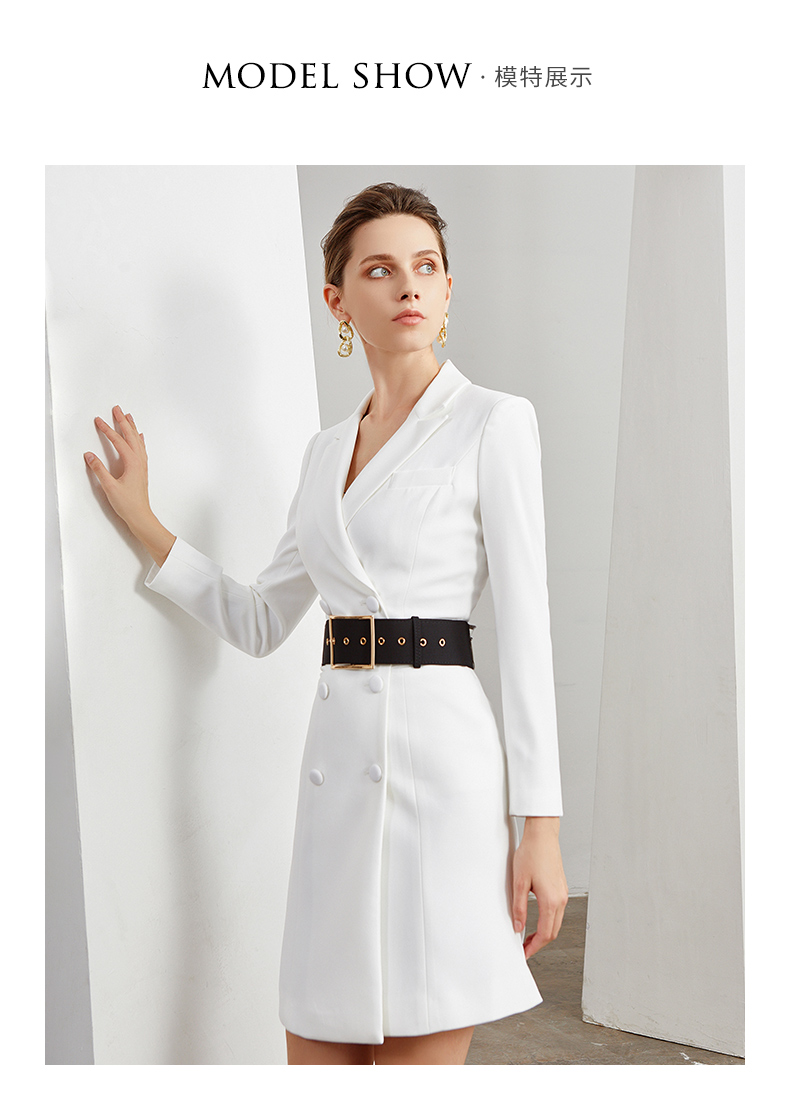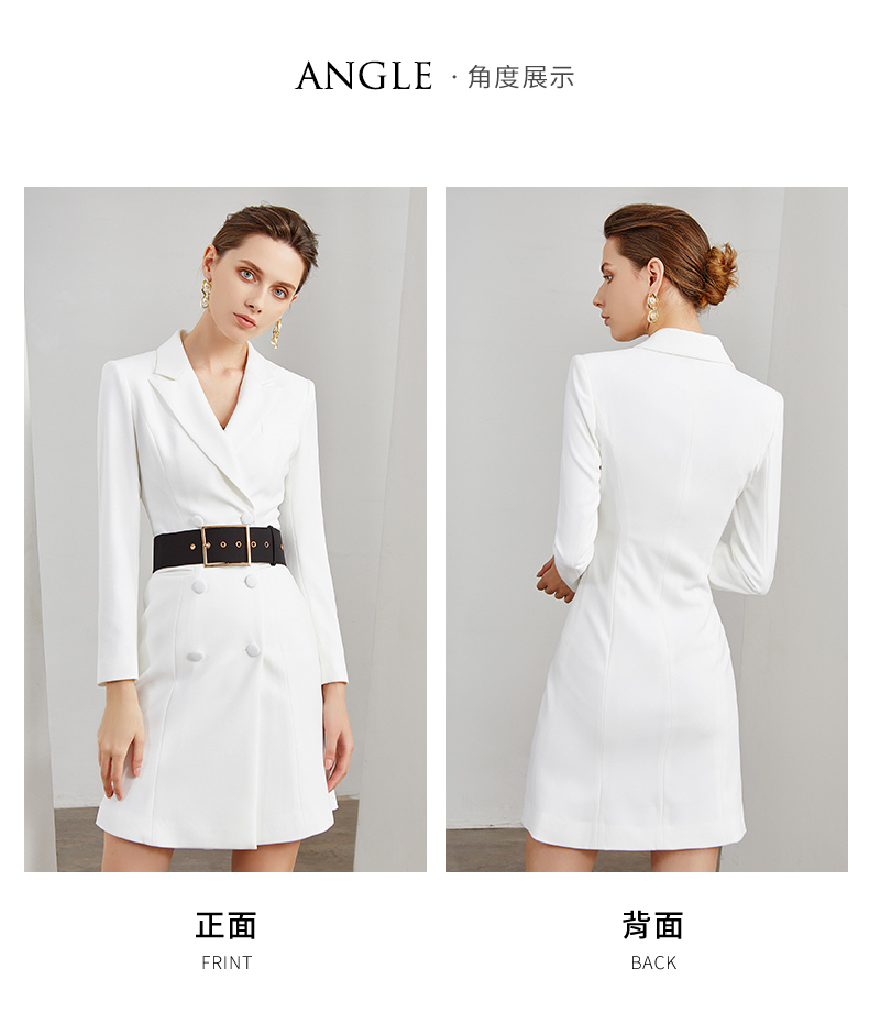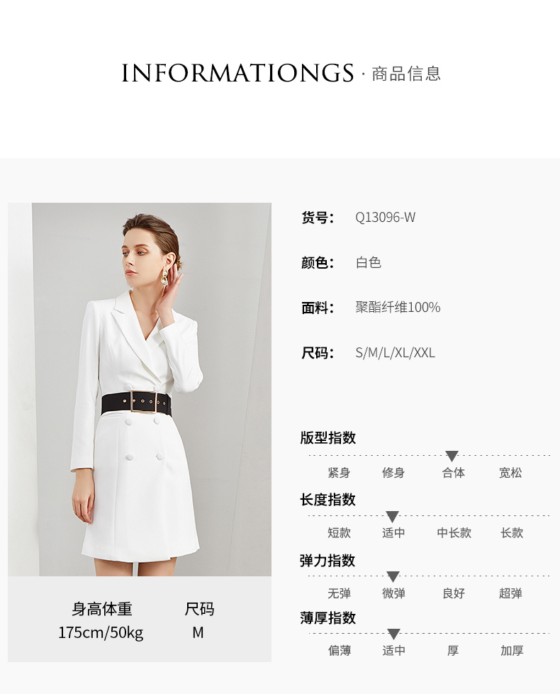 IWY/白色西服连衣裙收腰显瘦工作服女播音主持艺考正装职业装 Q13096-W