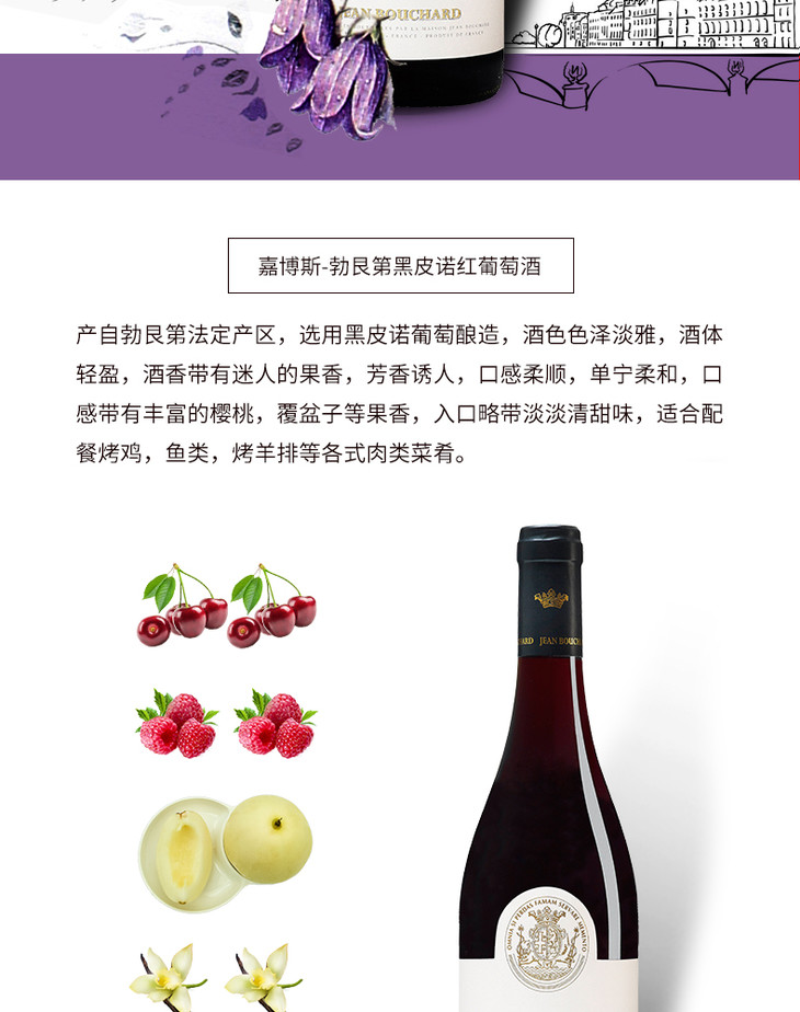 嘉博斯-勃艮第黑皮诺红葡萄酒Jean Bouchard Bourgogne 单支装750ml