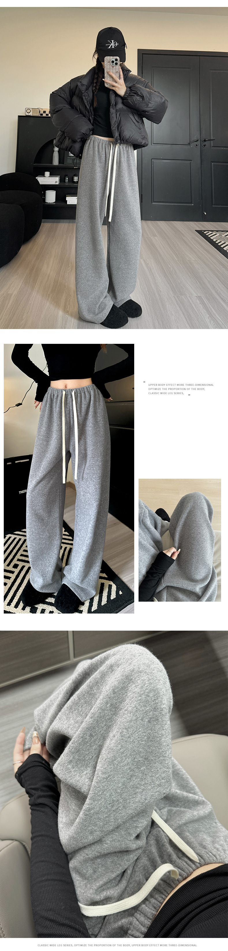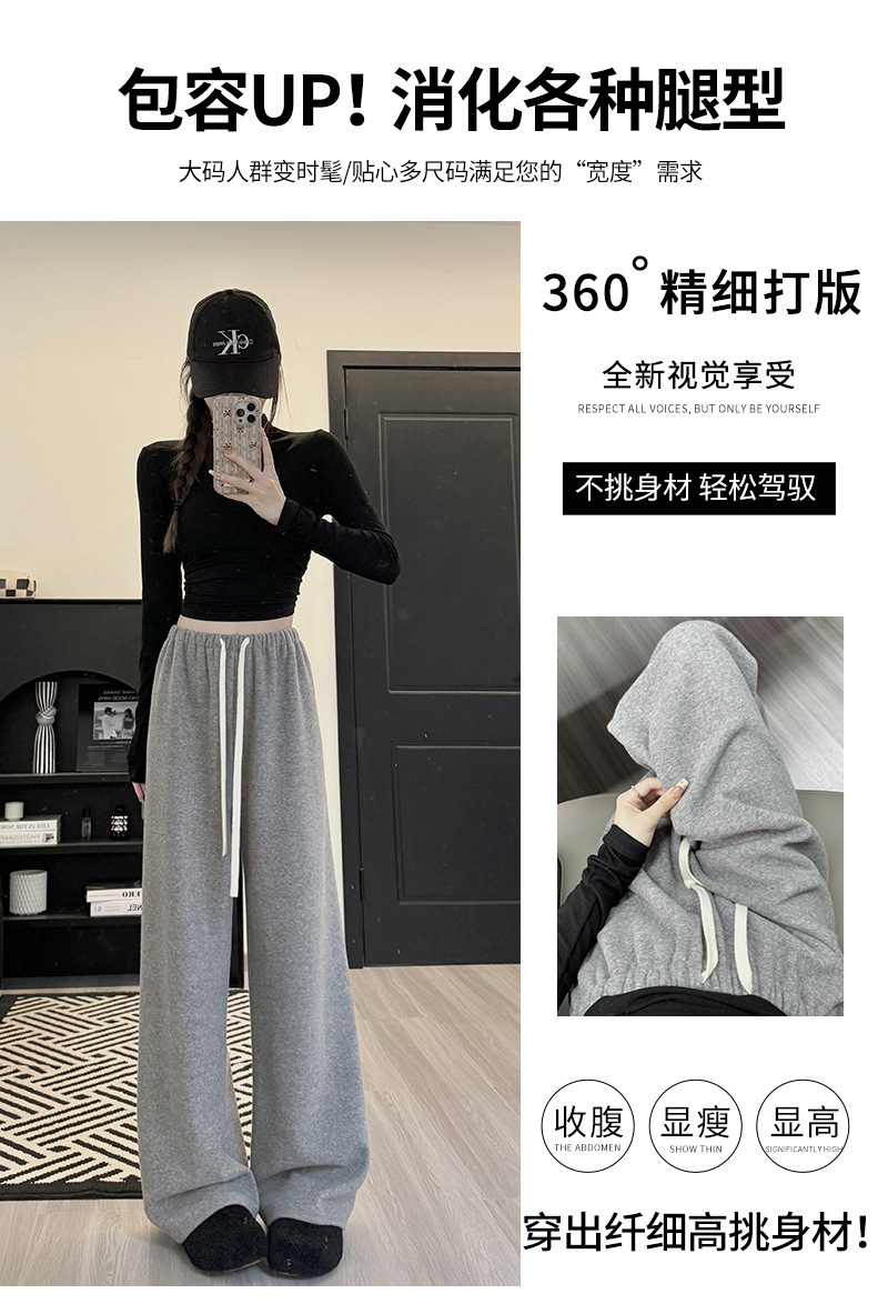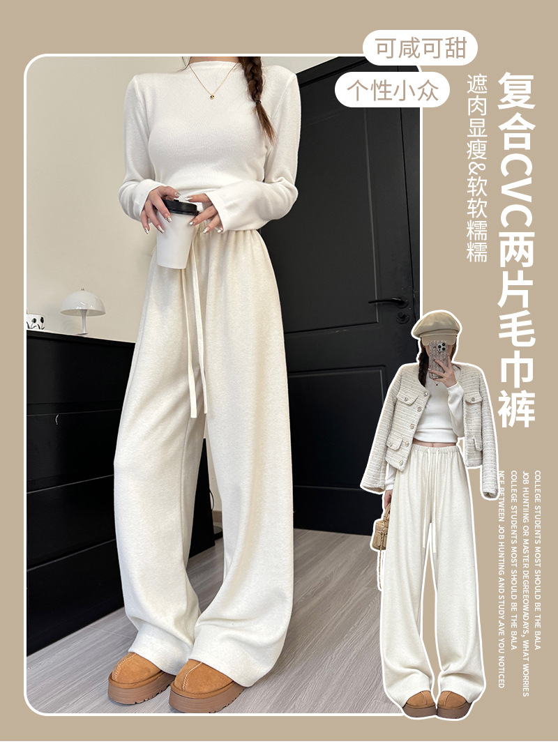 【高克重毛巾裤】春秋新款 高腰垂感宽松直筒裤 小个子女装慵懒阔腿裤