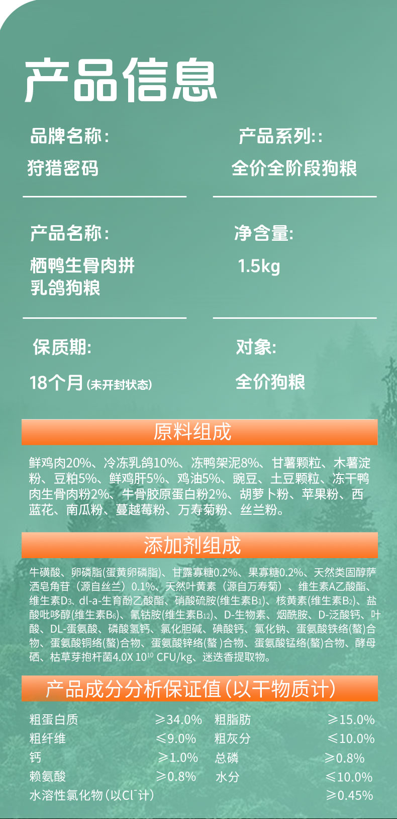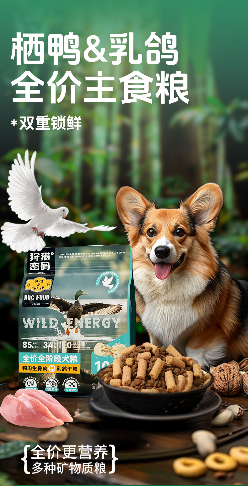 狩猎密码全价冻干生骨肉主粮1.5kg 鸡肉肉&乳鸽猫粮 鸭肉&乳鸽犬粮 线下专供