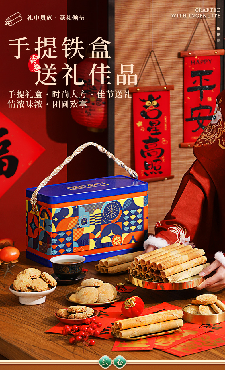 年货蛋卷礼盒鸡蛋卷酥礼盒过年送礼品走亲戚糕点饼干零食礼盒批货