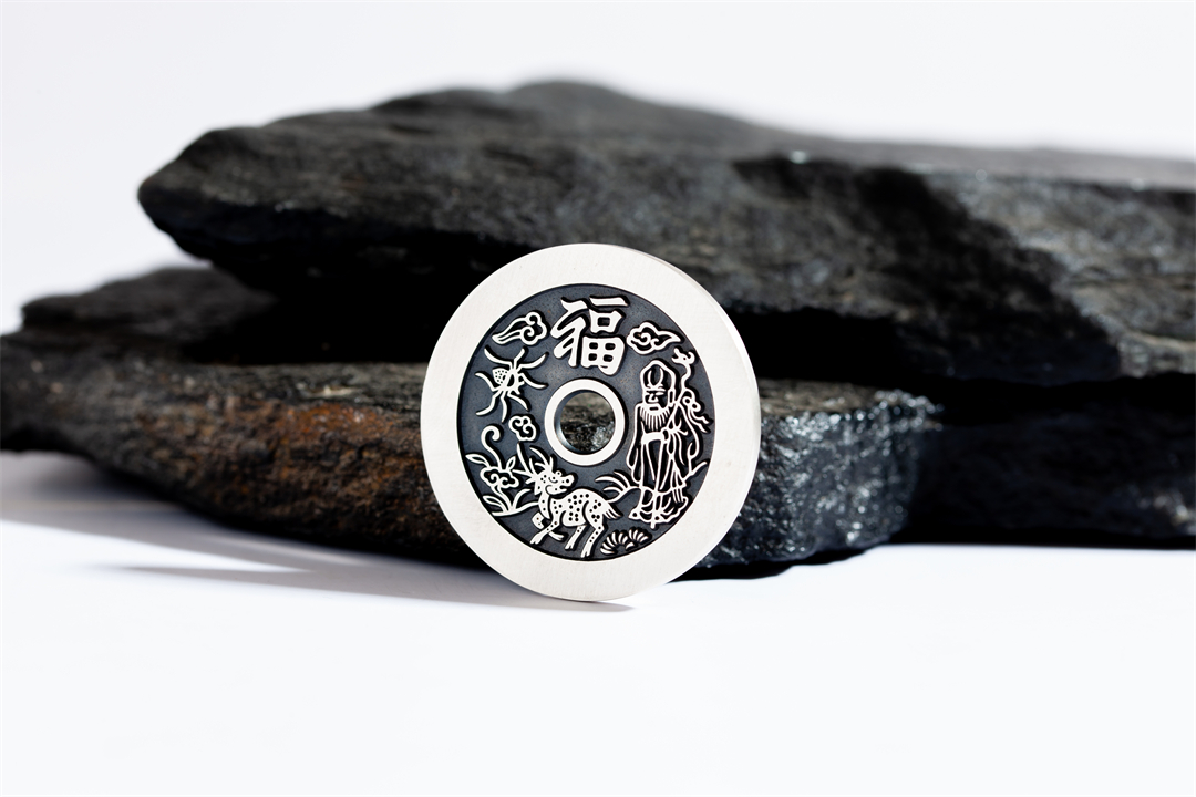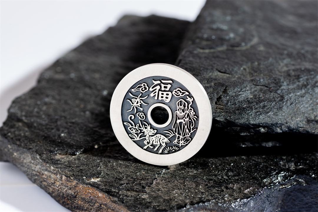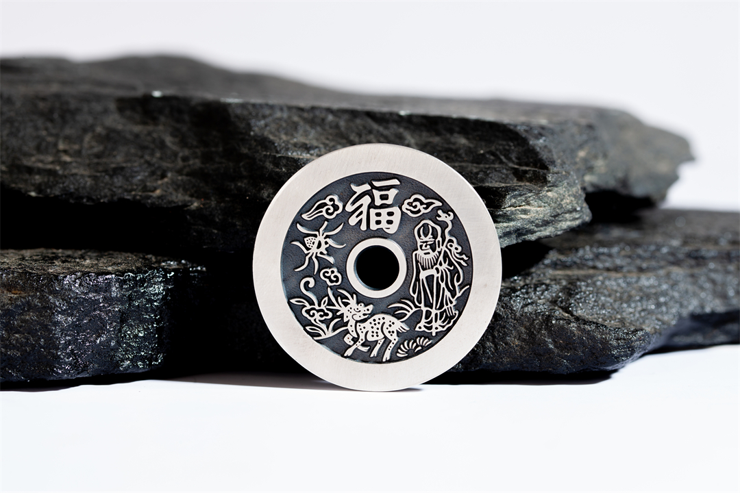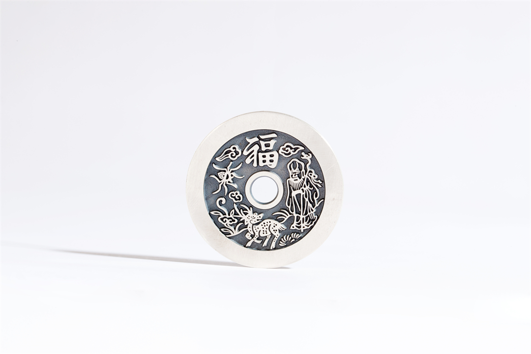 矩德泉坊 纯银手作 喜生贵子福寿双全(3.8厘米)807