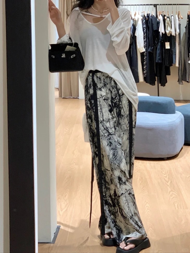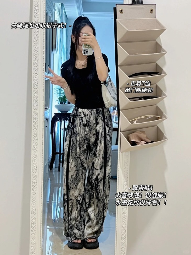 今年国内穿搭热潮是什么?当然是新中式啦~ AILISCOCO新中式扎染阔腿裤🤩真的巨好看! 品质超好,我自己都留了2条! 上身的第一感觉,凉凉的0️⃣负担 水墨国风给人一种古典韵味,超适合我们东方女性 飘逸的阔腿版型,自带典雅大气不挑场合 穿上显得人很瘦很高挑~是必入的一款长裤!