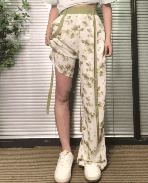 以传统水墨画为灵感,融合现代技术 配上利落流畅的裤型和飘逸的系带,最终呈现出风格独特的扎染元素的遛弯神裤! 拥有它,就能穿出独属于你的个性! 真的想把它焊死在我的腿上~