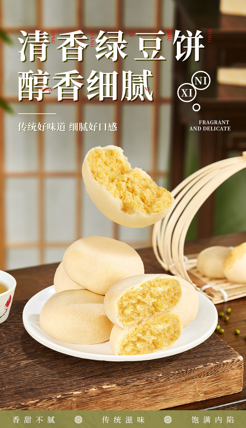 秒杀50枚【皮薄馅厚!清甜不腻口】清香冰淇淋绿豆饼,醇香细腻,传统追剧办公室解馋糕点小吃零食盒装正宗传统手工营养早餐茶点,满满豆馅,一口好满足。ry