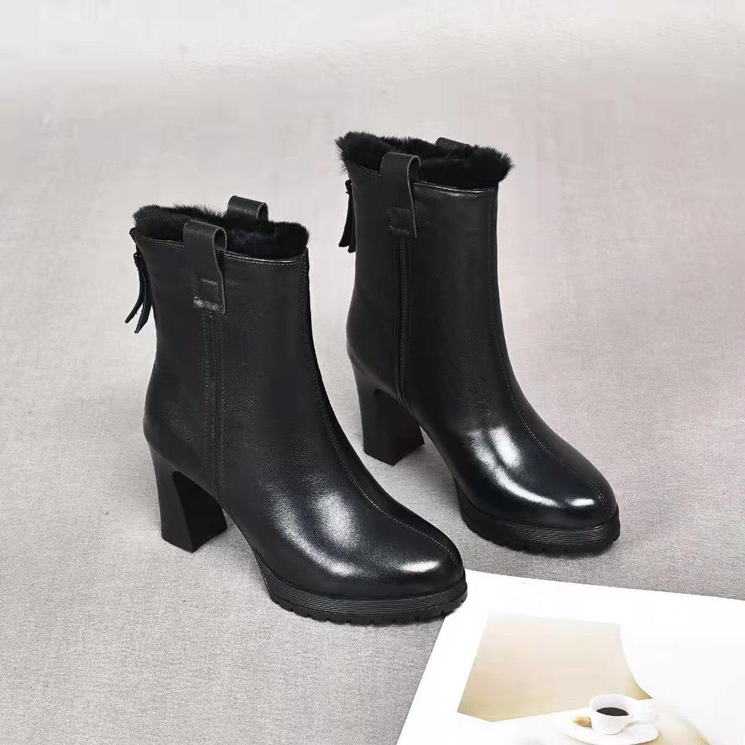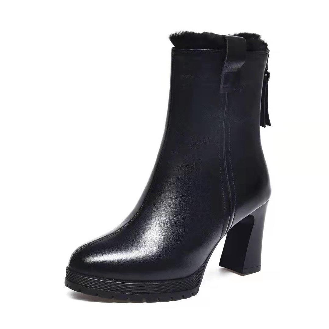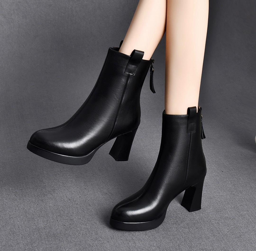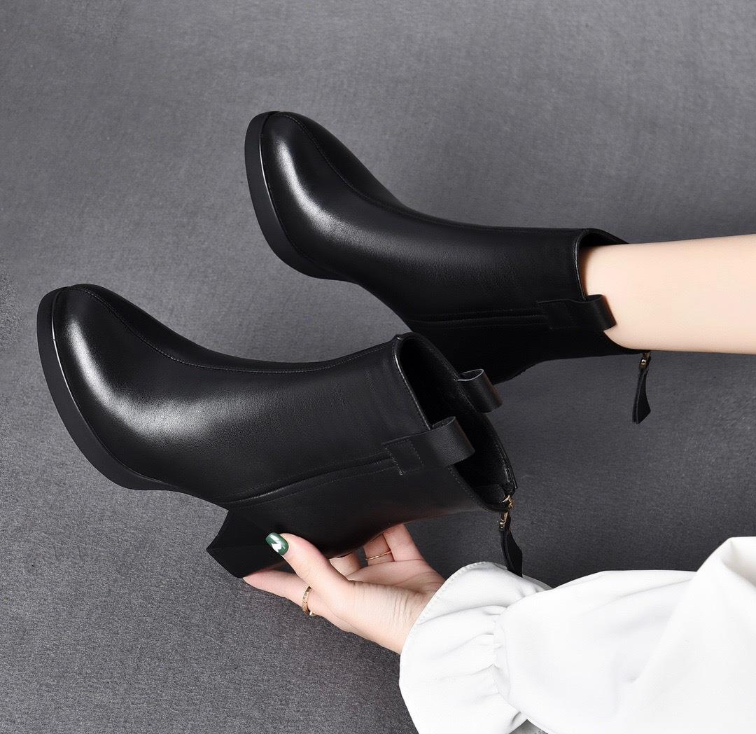 真皮气质中跟小短靴2025年秋冬新款加绒粗跟软底百搭高跟鞋女皮鞋