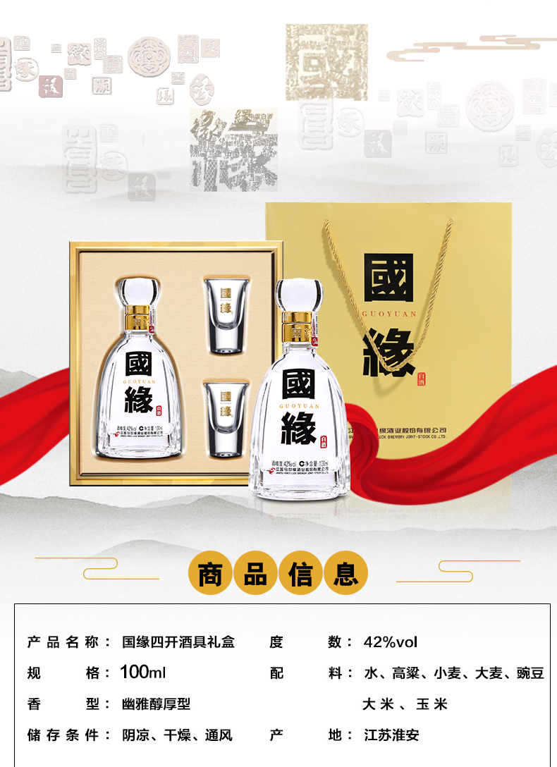 【免费定制】国缘浓香型白酒52度1L装国缘·100单瓶