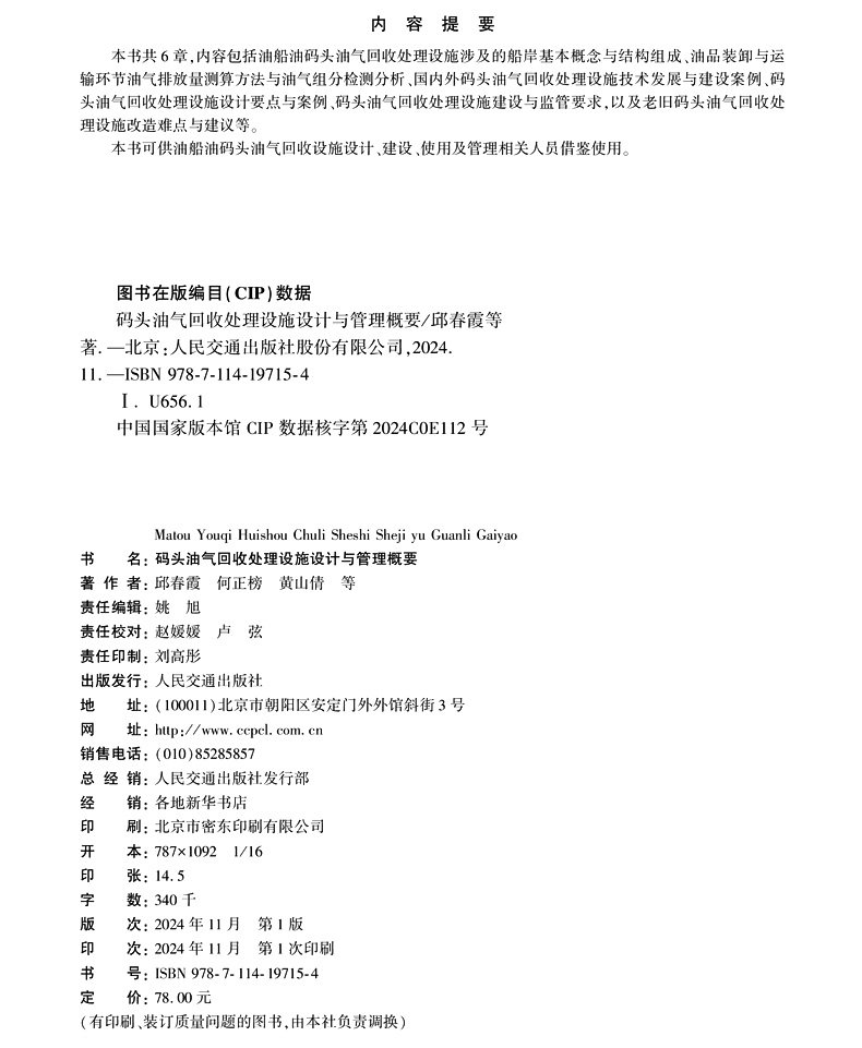 书名:码头油气回收处理设施设计与管理概要