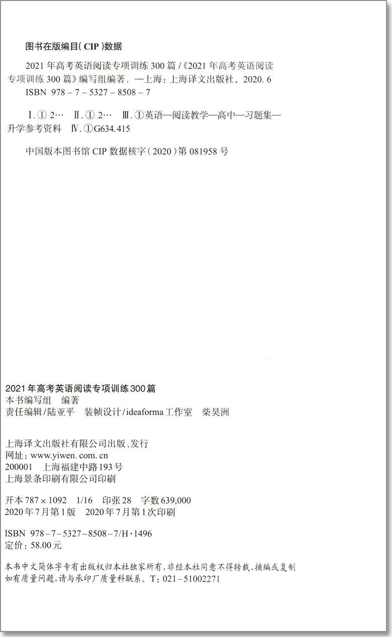 2021年新题型高考英语阅读专项训练300篇 含答案 上海新高考英语一年两考 上海译文出版社新题型附2018/19/20阅读理解完形填空真题