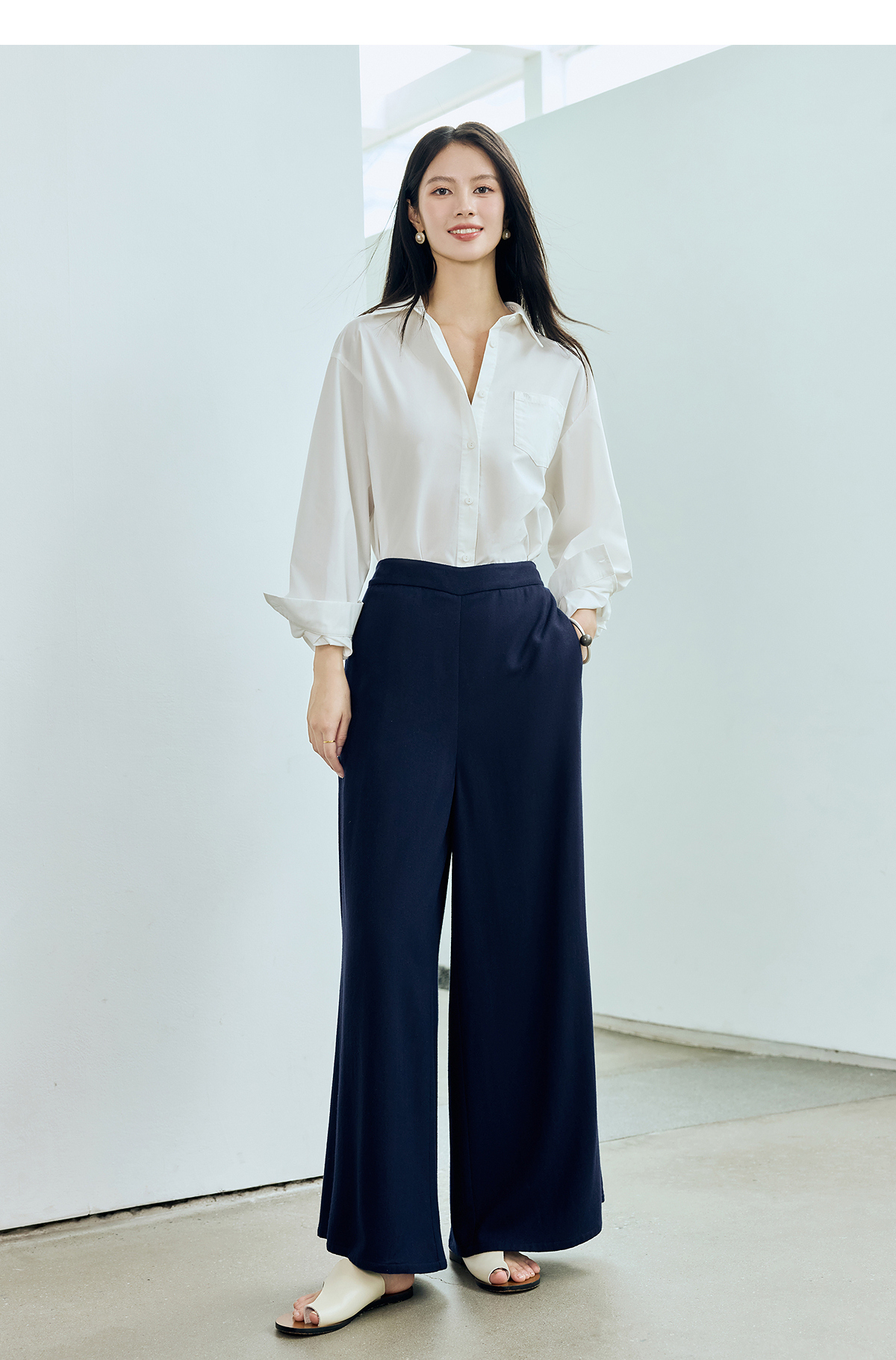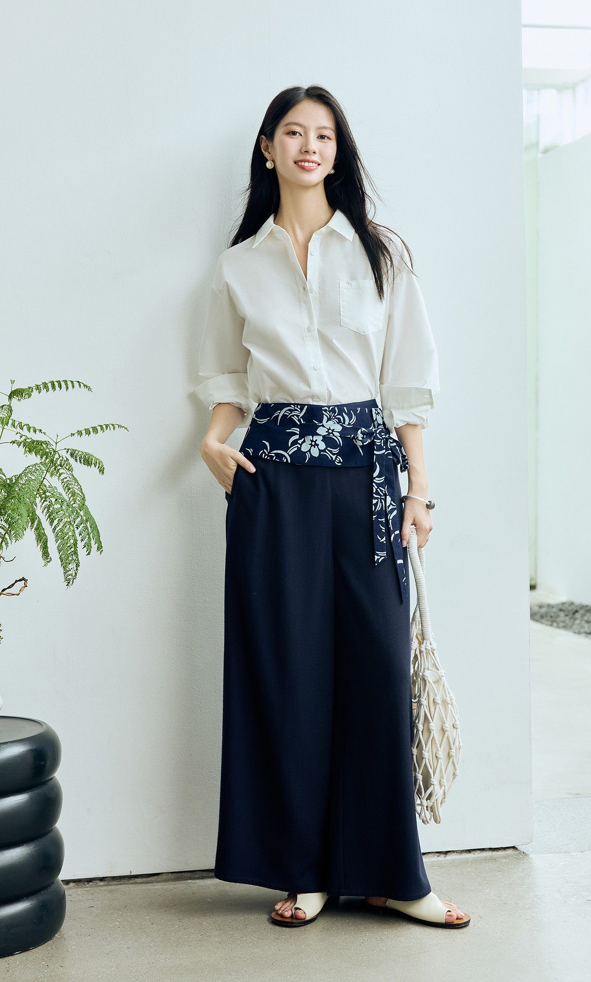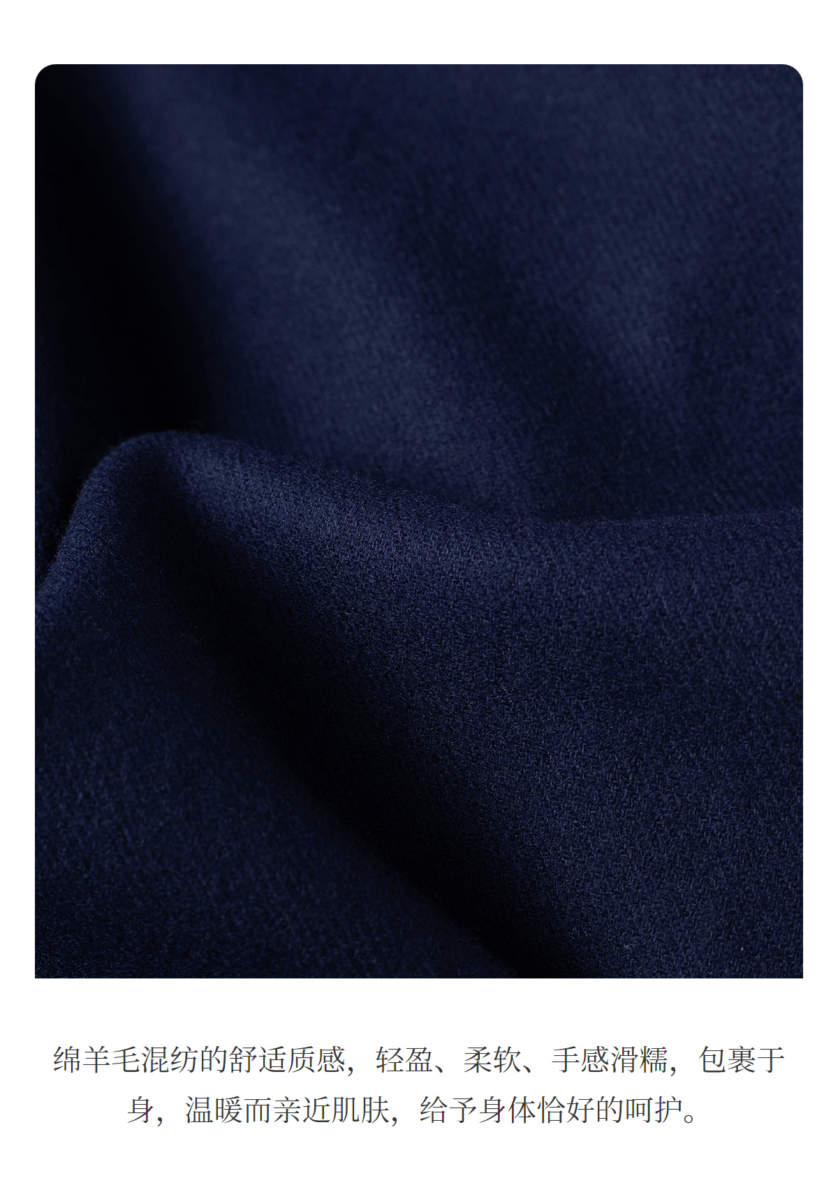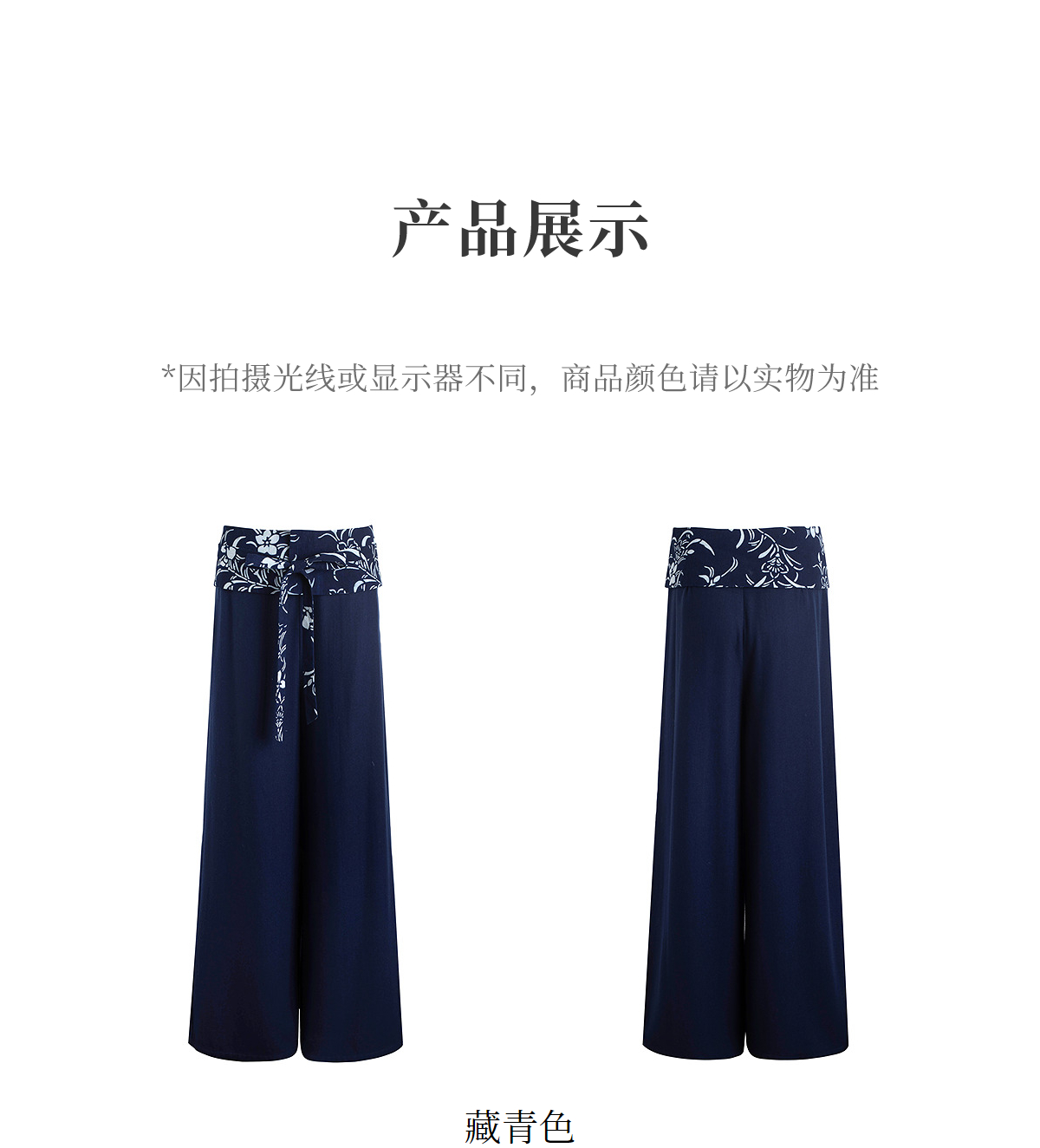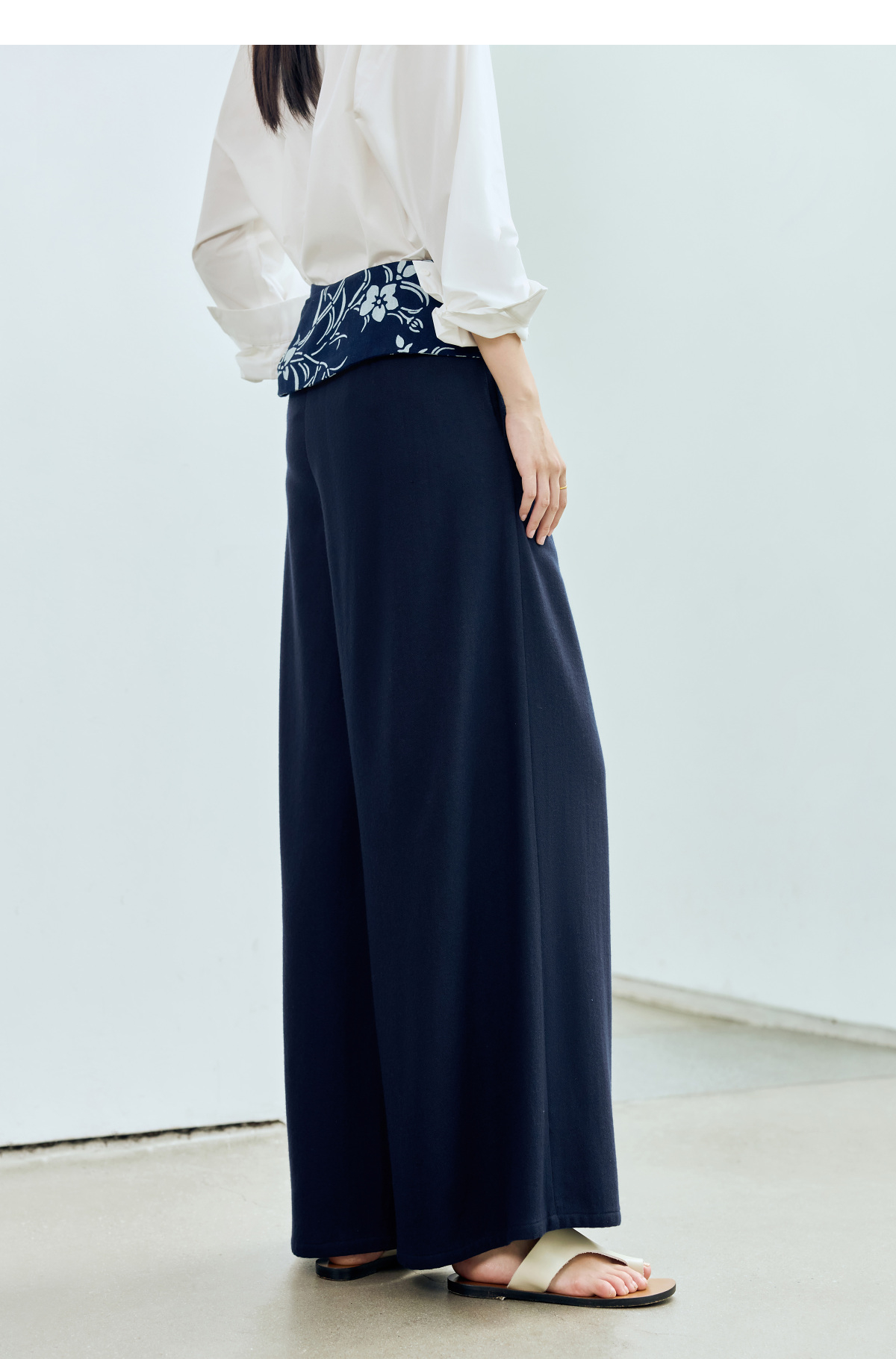 【林栖设计小店】(现货)绵羊毛混纺裤子配纯棉腰封蓝印花布秋冬新品阔腿裤女1961276