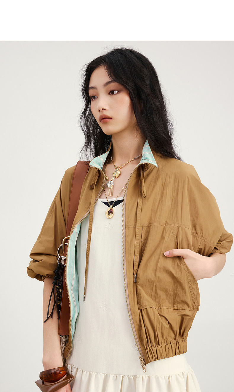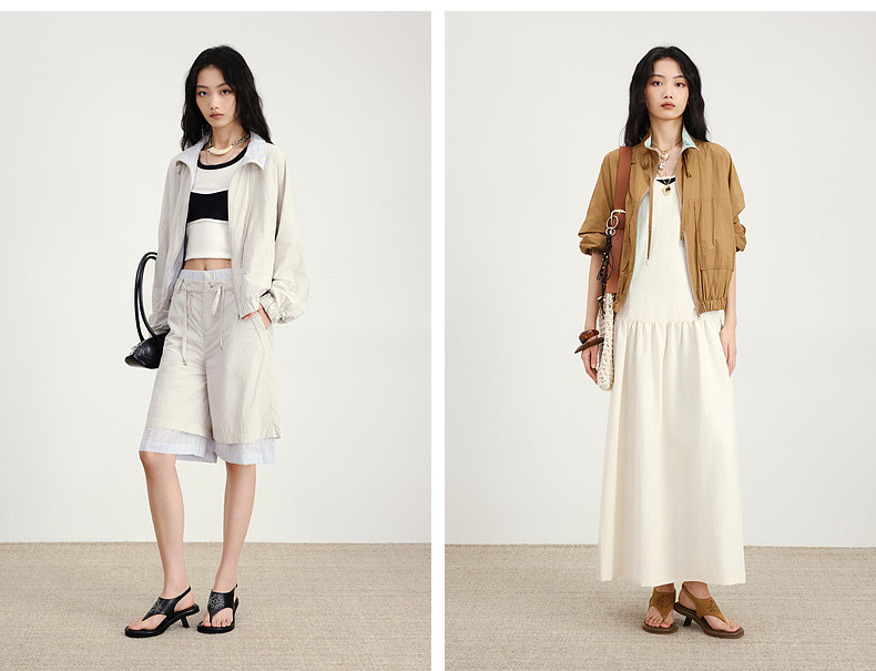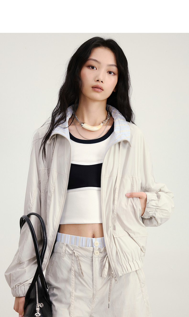 lost in echo2026年春夏新款立领撞色条纹户外运动感外套中裤套装