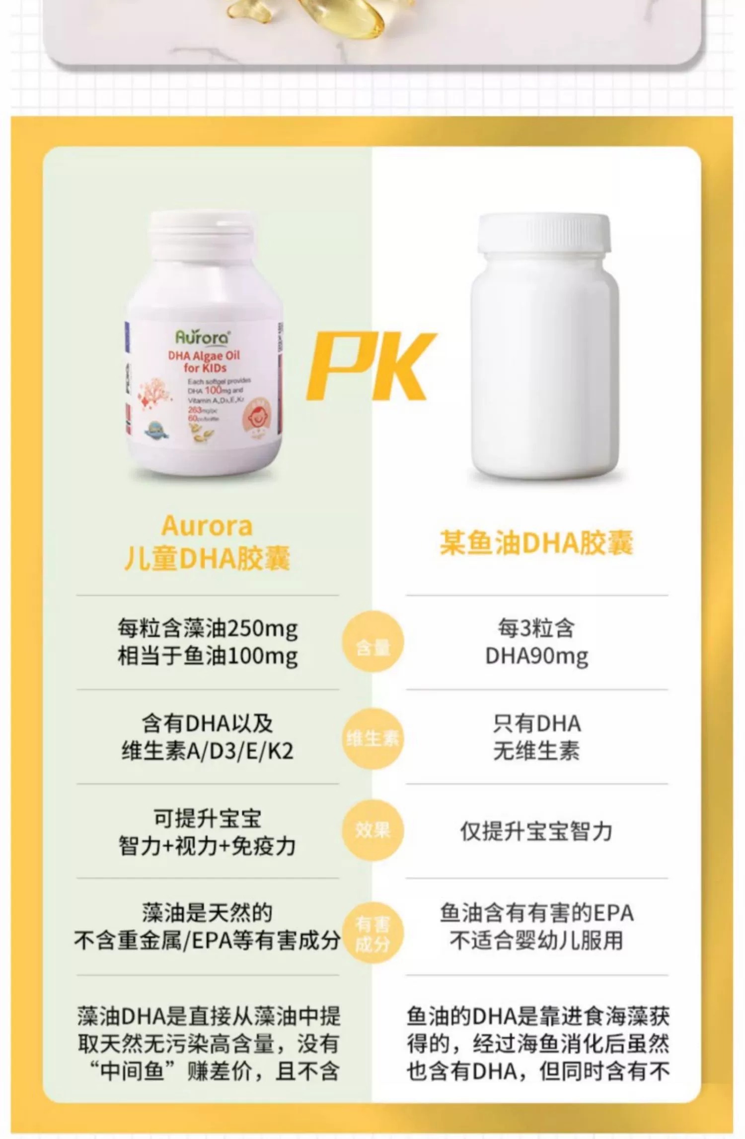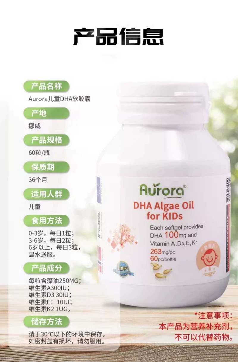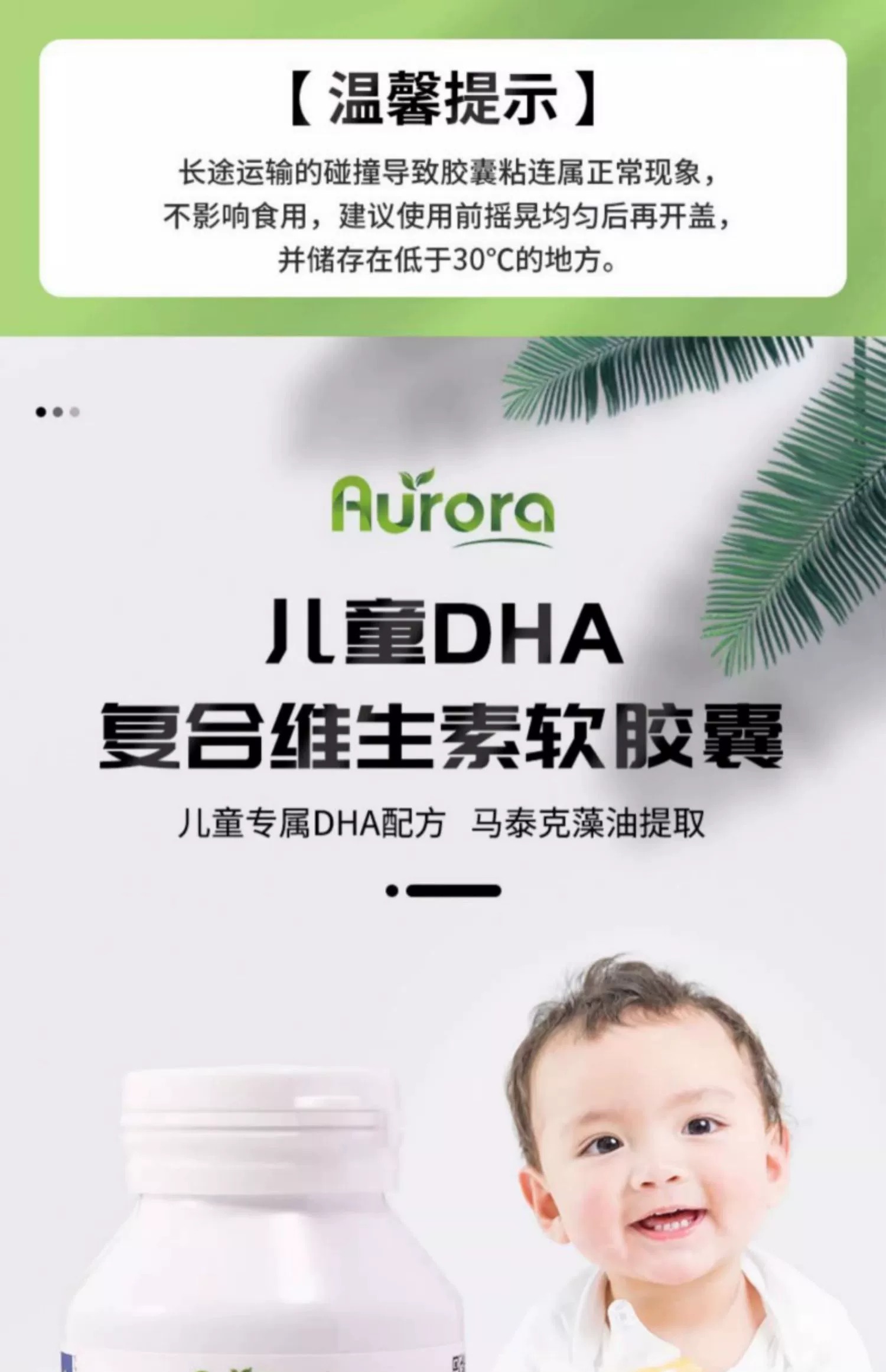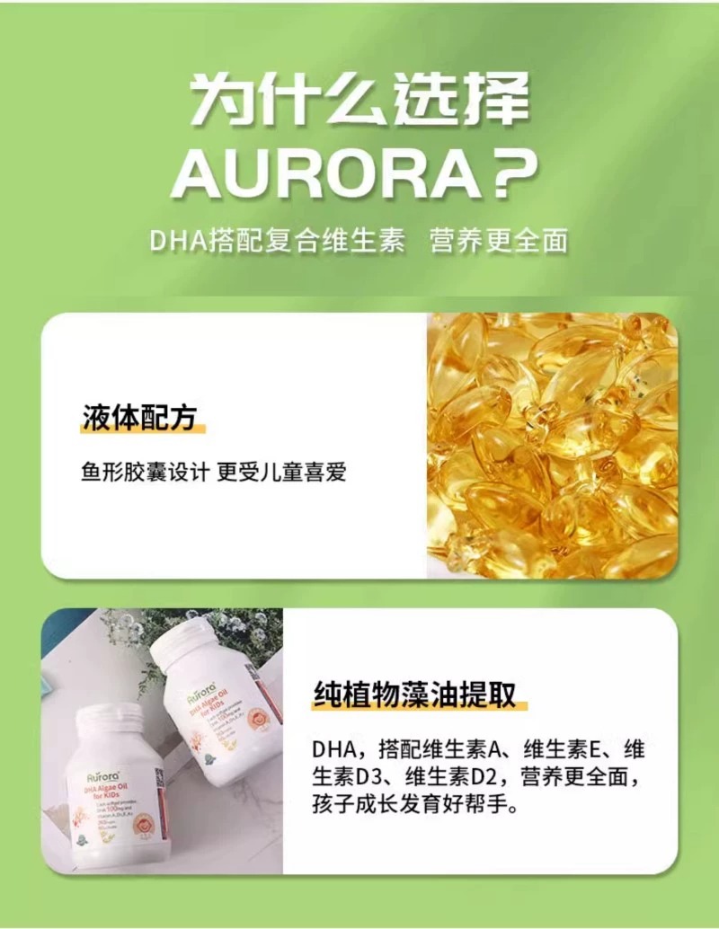 Aurora儿童DHA藻油复合维生素胶囊进口维他命60粒婴幼儿专用补脑