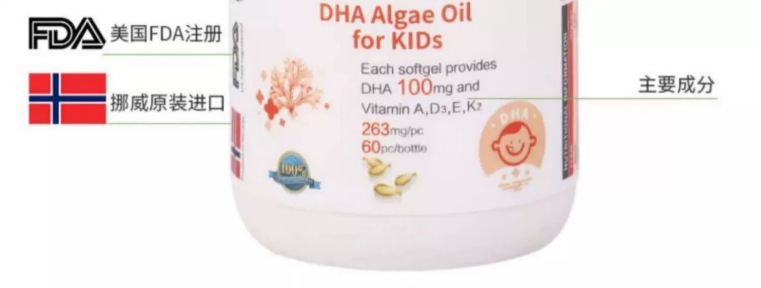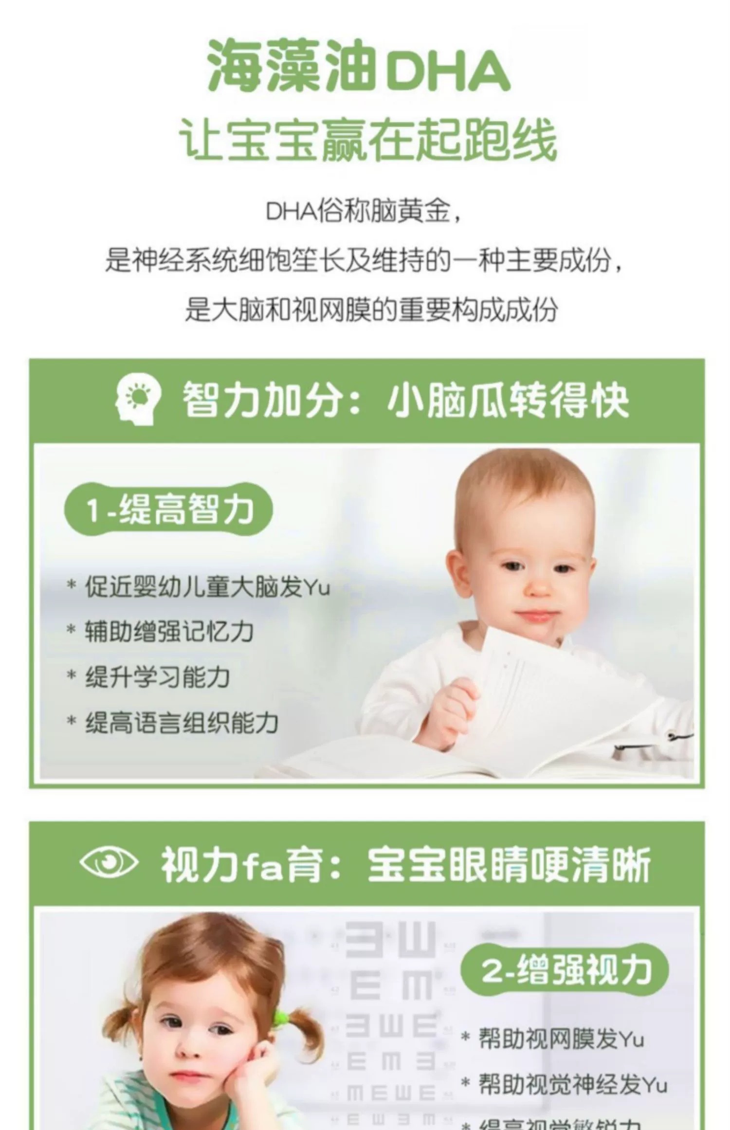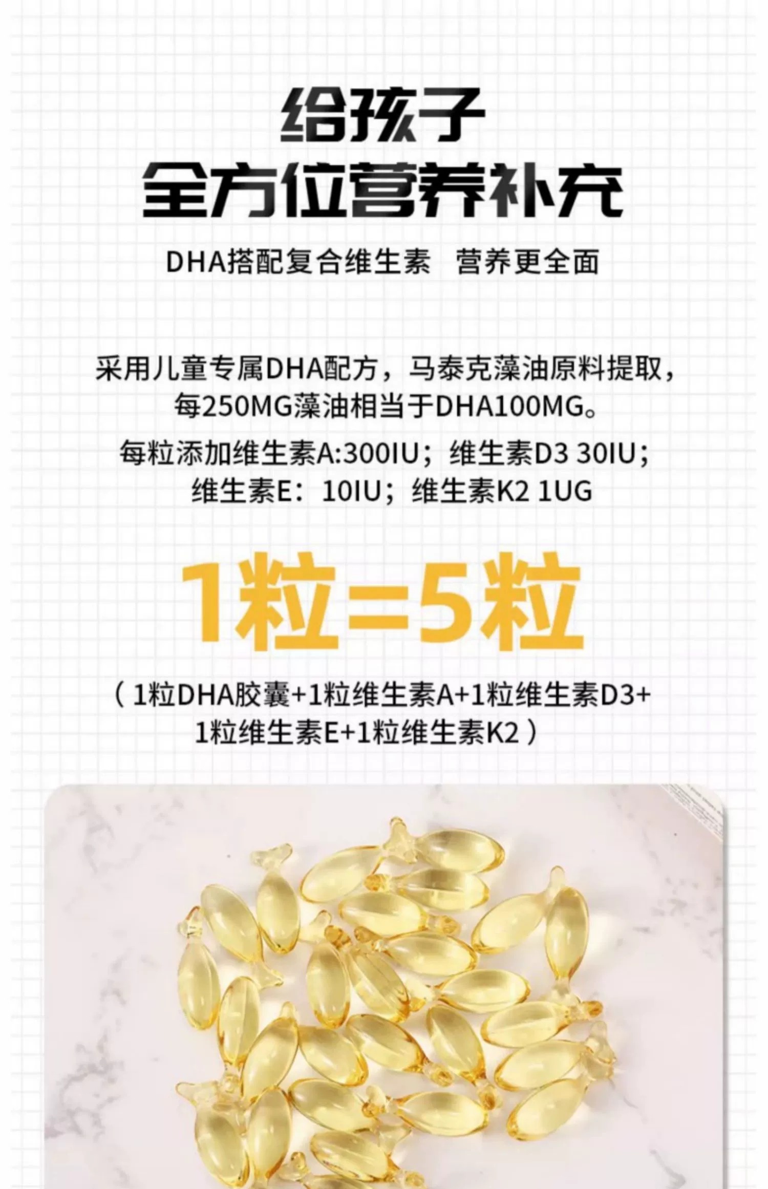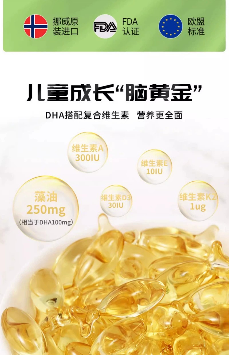 Aurora儿童DHA藻油复合维生素胶囊进口维他命60粒婴幼儿专用补脑