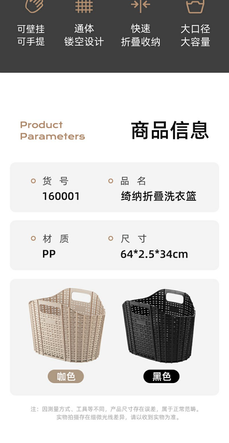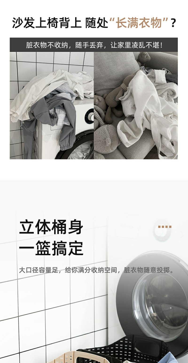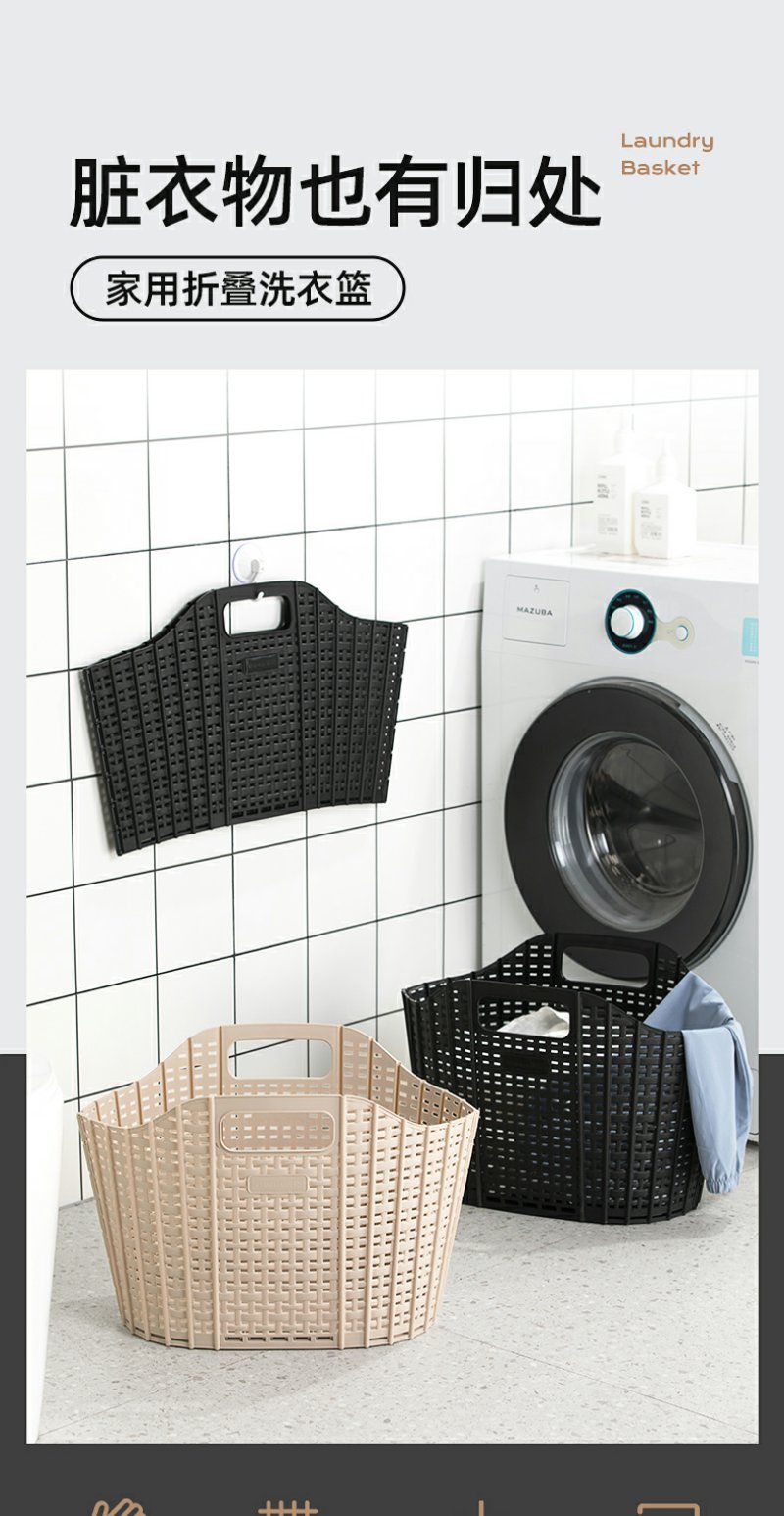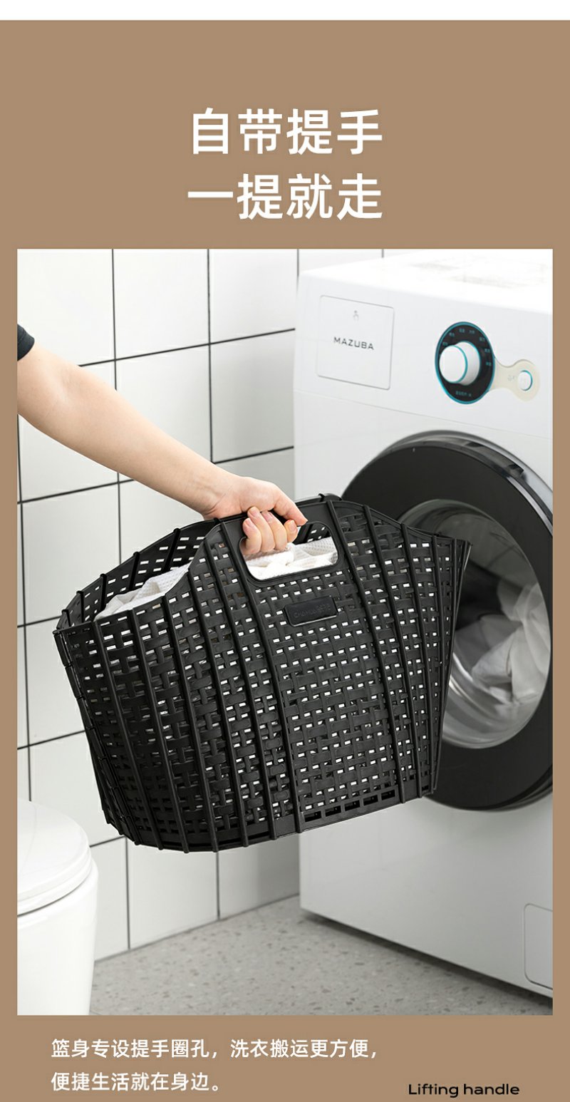 【茶花】可折叠洗衣篮壁挂手提脏衣篮