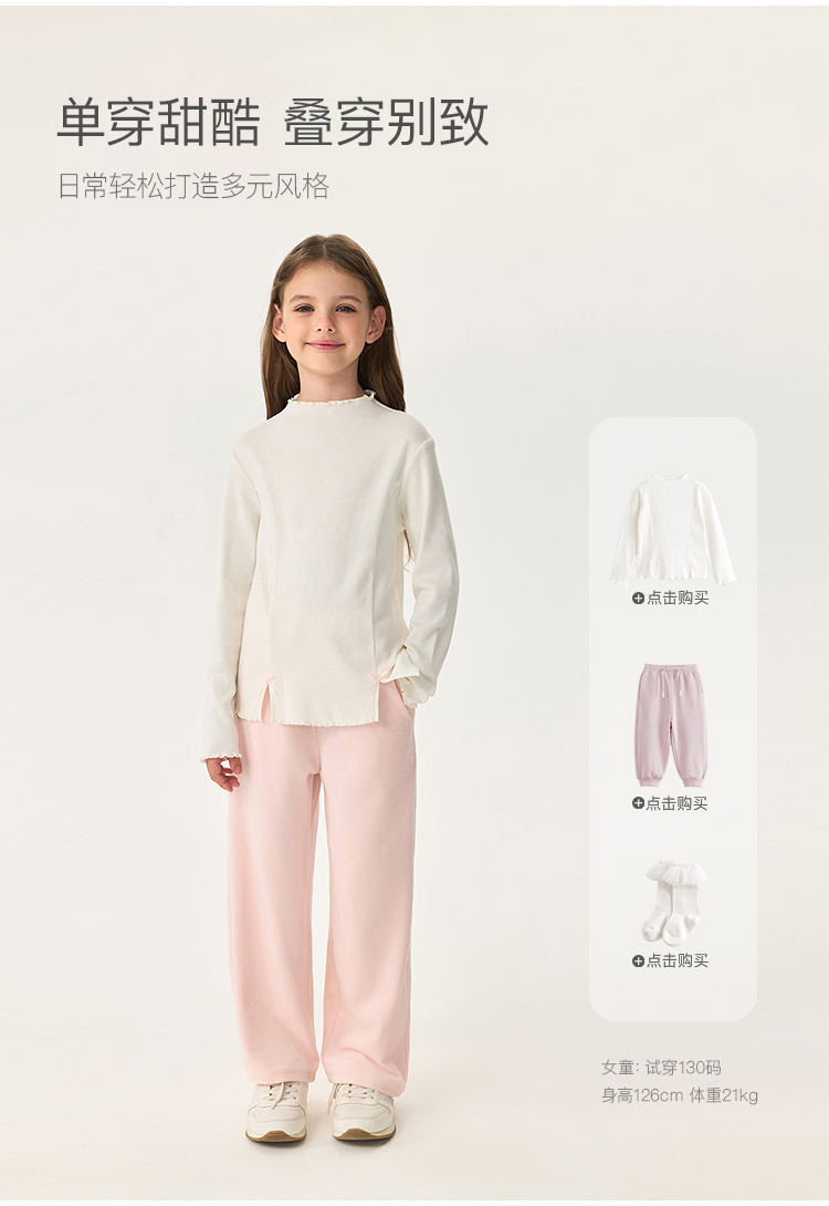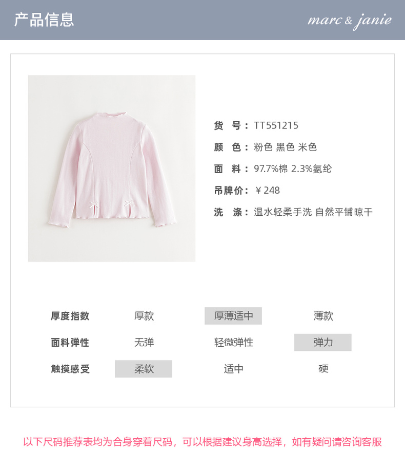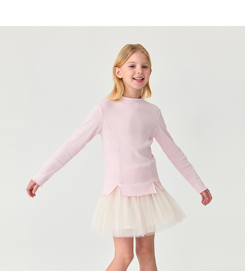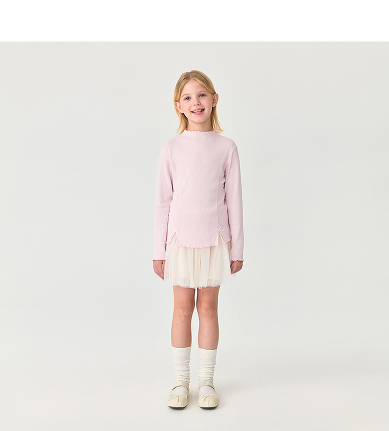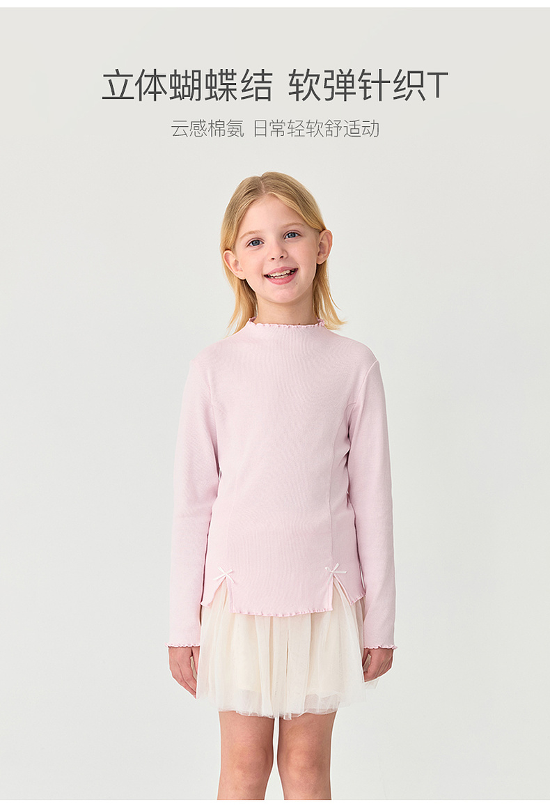 马克珍妮女童立体蝴蝶结软弹针织T恤2025年秋装新款551215