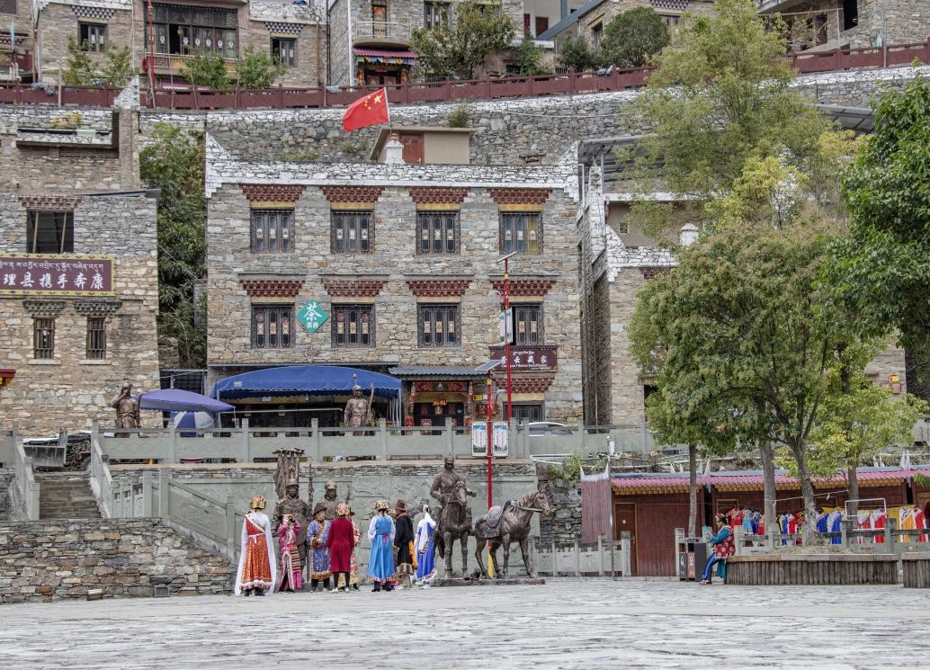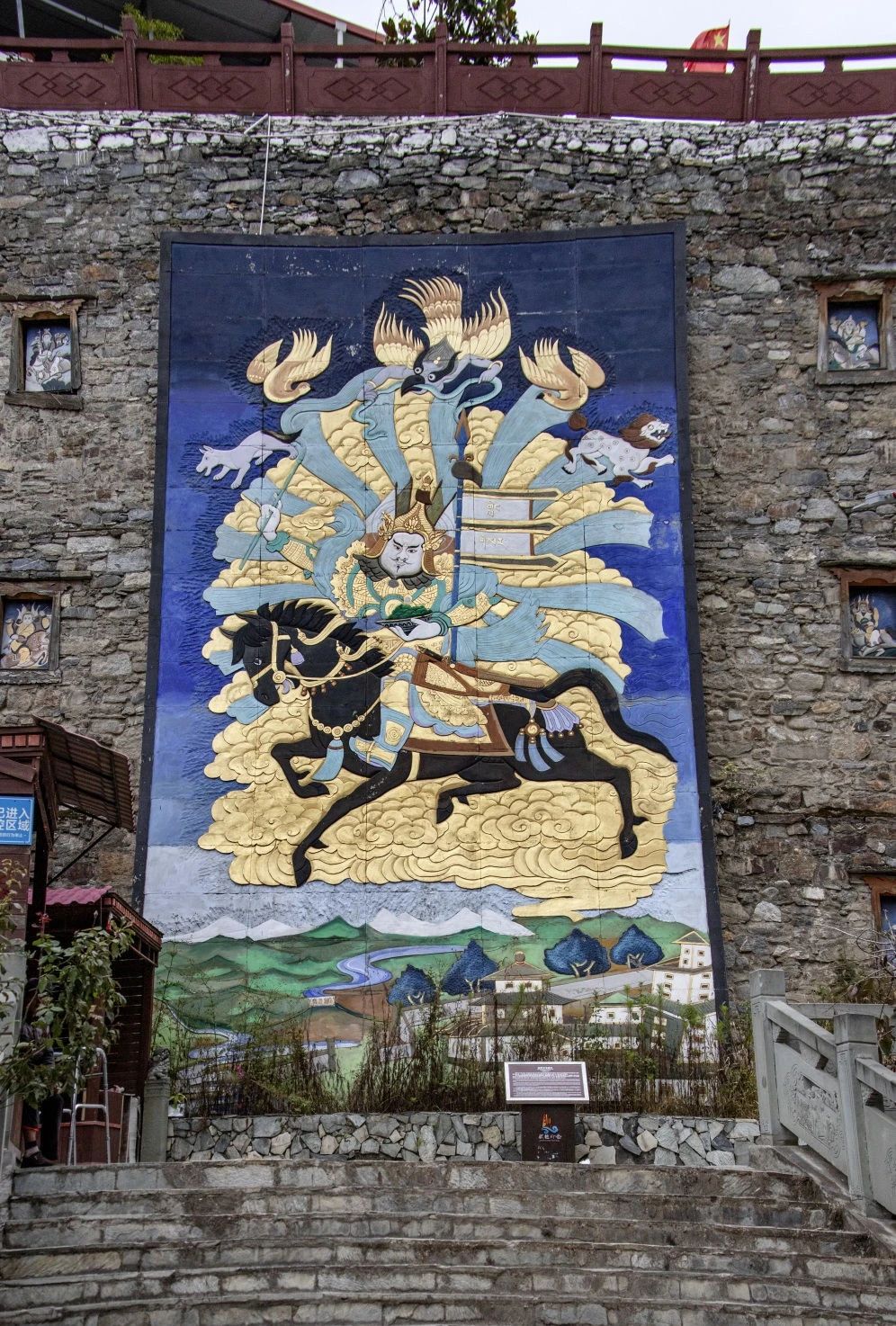 巨大的格萨尔王像、具有独特意义的图腾、屯兵广场上的雕像、飞舞的五色经幡……都在诉说着藏寨的故事。