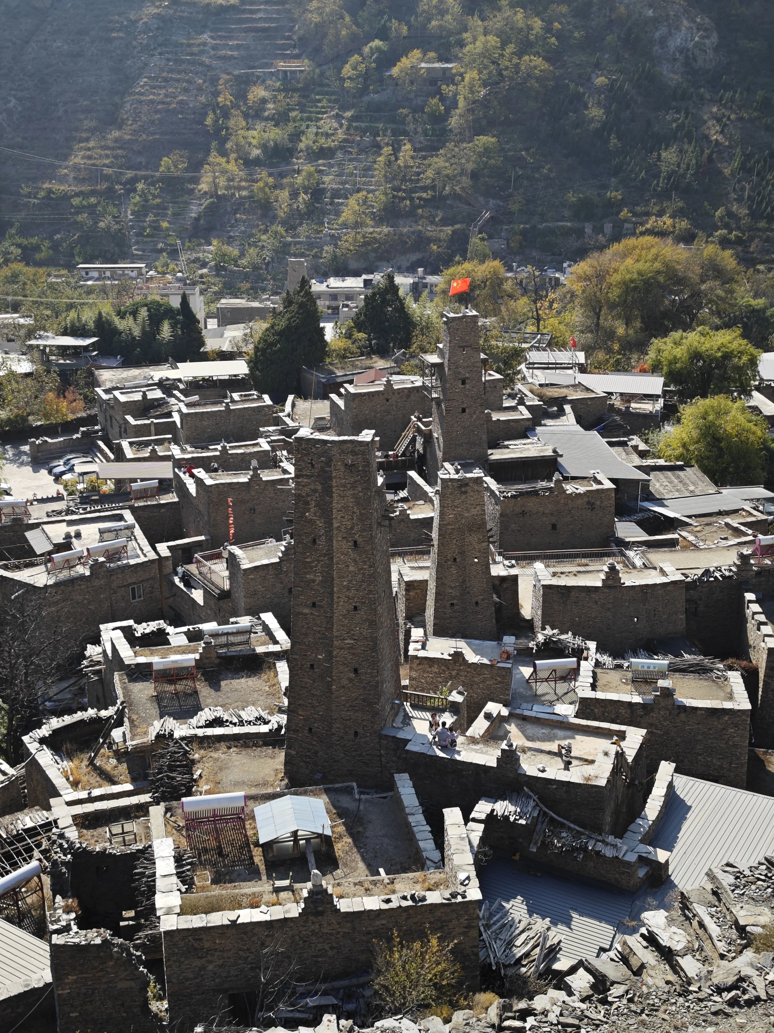 远远望去,黄褐色的石屋依山而建,碉楼林立、气势不凡,让人不由感叹羌族建筑的奇妙!