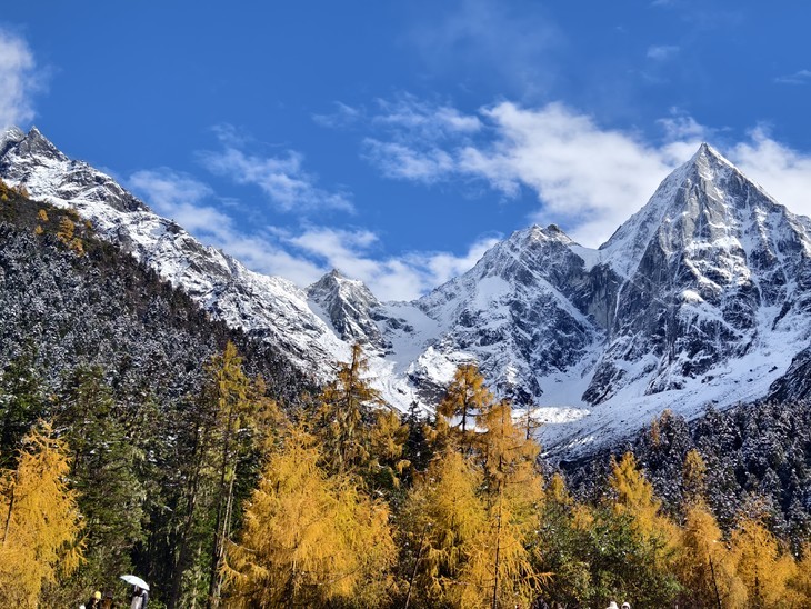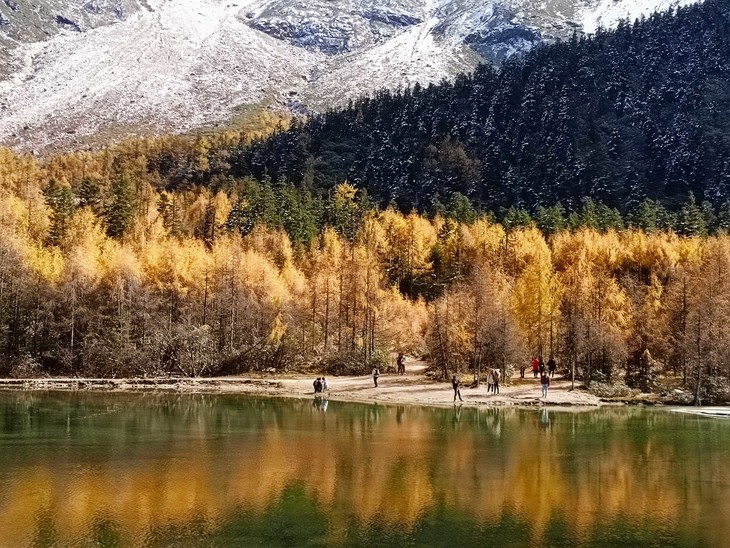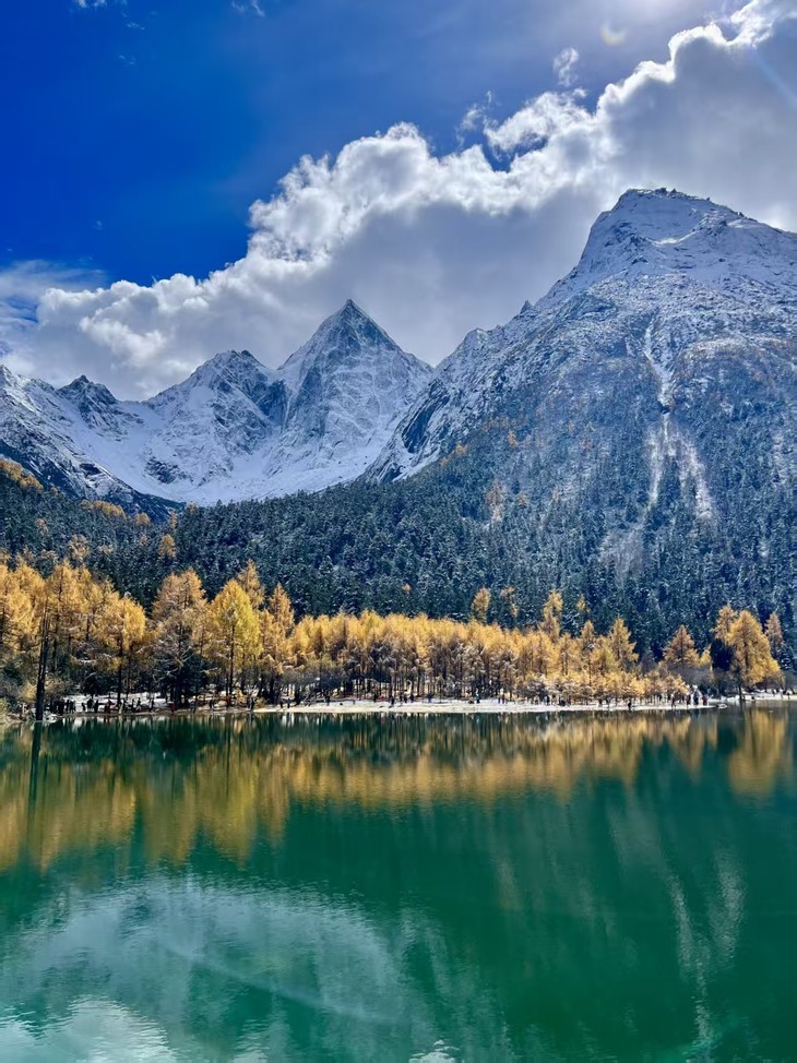 这里拥有金字塔般的雪山群,终年积雪的山峰在阳光下熠熠生辉;翡翠般的高山海子如龙王海、磐羊湖,倒映着雪山森林,宛若仙境;