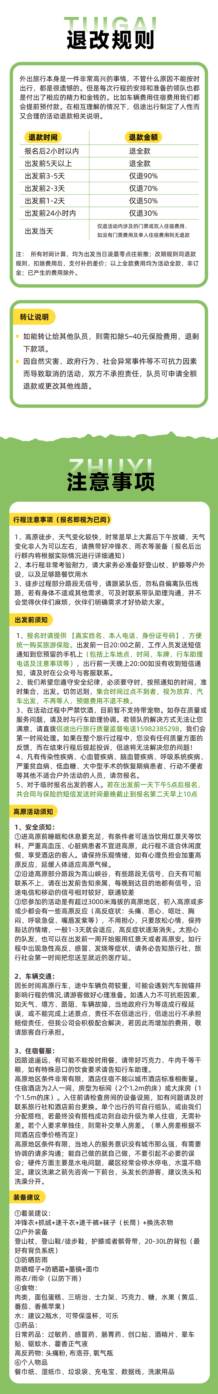 | 以上时间线仅作为参考,具体以实际为准。若遇到堵车情况,返程时间会往后延,具体时间以实际为准 | |