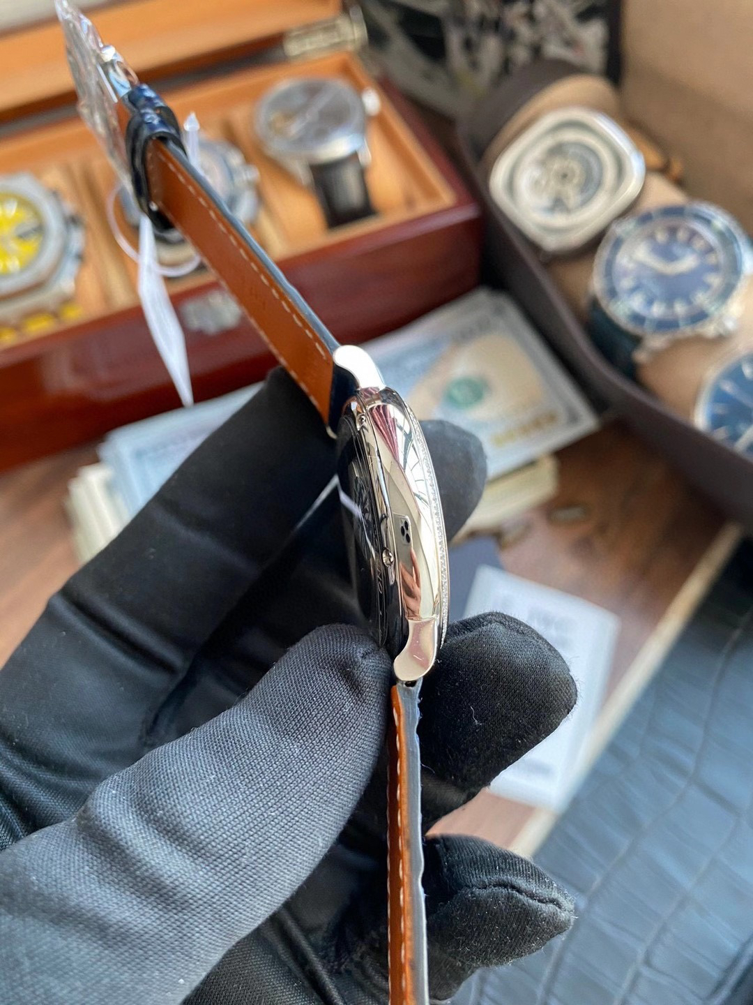 10.V7厂此款波涛菲诺上可见的均为世界最顶级的120切面施华洛世奇锆石,每一颗都纂刻有SWAROVSKI ZIRCONIA(用放大镜可见,行业唯一,成本较普通版本贵数倍),完全符合国际钻石评级权威GIA在评定钻石切割等级的综合标准,凭借无可比拟的璀璨光芒,可媲美钻石!整体效果已无限接近正品!可谓用心良苦,超高性价比带来的正品既视感为其点赞!