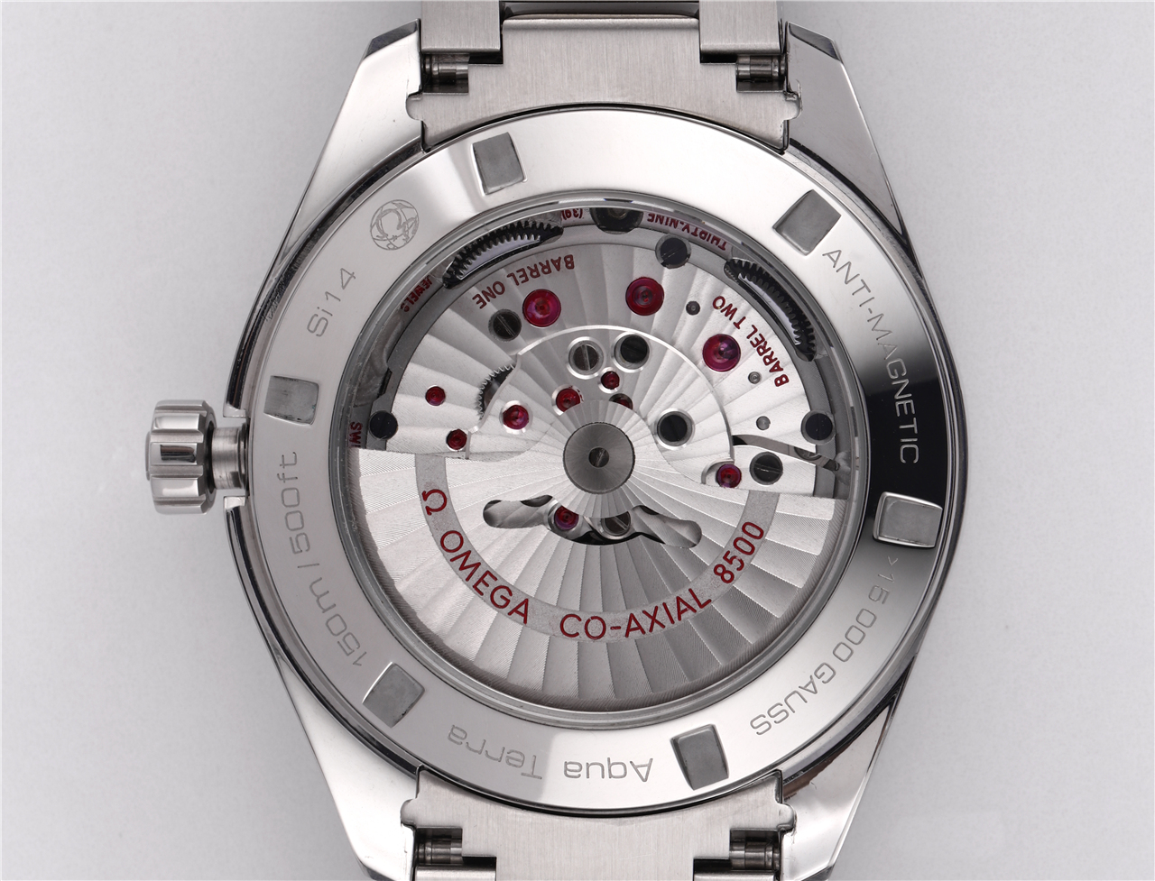 TZ欧米茄海马150米系列,TZ厂购入原装,对每个配件进行一比一开模,同步原装【黑色抗磁摆轮】8500机芯,摆轮和原装一样在正六点钟位置.而且机芯走时稳定,防水性能强,和原装一样41.5mmX13.5mm尺寸规格。机芯的稳定才是一枚表的“灵魂”,黑色摆轮的好处降低磁场影响,在整体机芯机构抛光打磨工艺上,还原度95%以上一致,摆轮下面有欧米茄的“Ω”英文LOGO,以及8500机芯型号,红色宝石、螺丝、孔位位置大小接近原装98%以上,自动陀双向上链,效率高且稳定,整体效果可以称得上无懈可击了。在配件上面无所不至VS原装所有配件,可通用原装把头、头粒、内罩等配件。每个细节做的淋漓尽致,上手效果很好,商务工作时佩戴显得大气得体,休闲运动时佩戴充满活力阳刚。所有TZ工厂出品的手表均配有香港太子钟表行的原装皮套。原始评测视频(无水印):https://v.qq.com/txp/iframe/player.html?vid=g0868z8o460