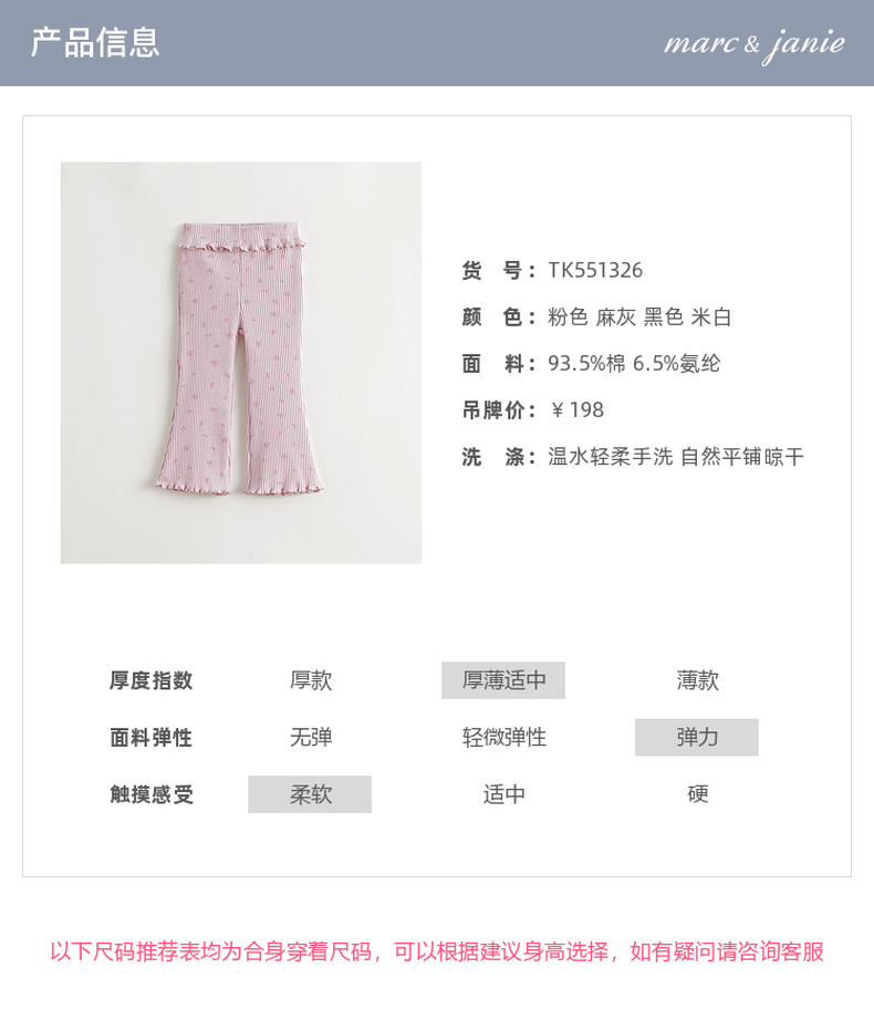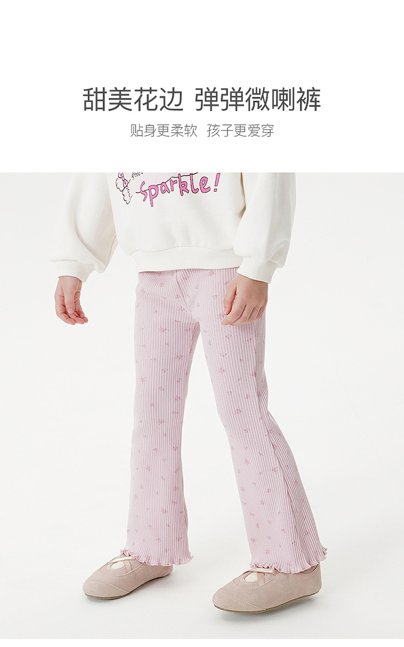 马克珍妮女童甜美花边弹弹喇叭裤宝宝打底裤2025年秋装新品551326