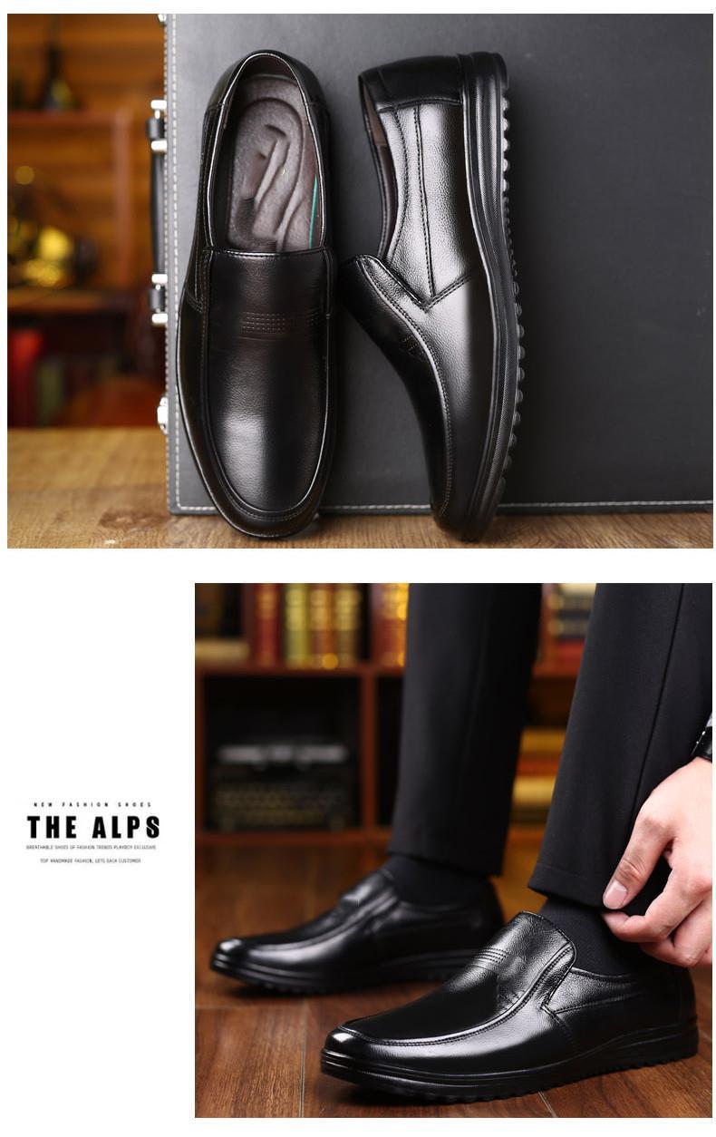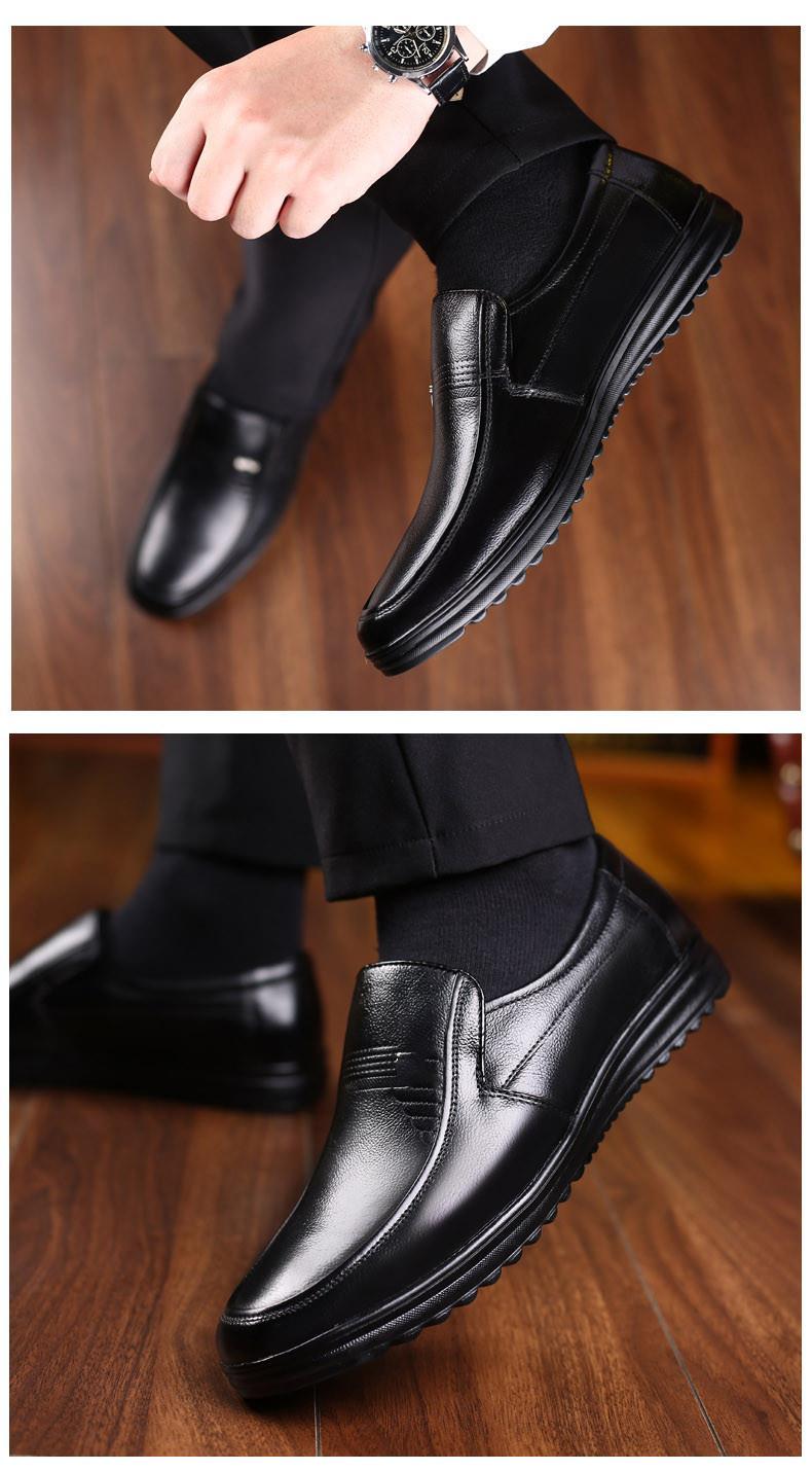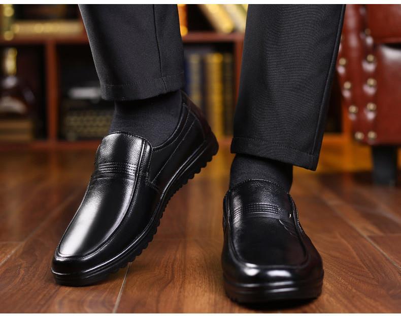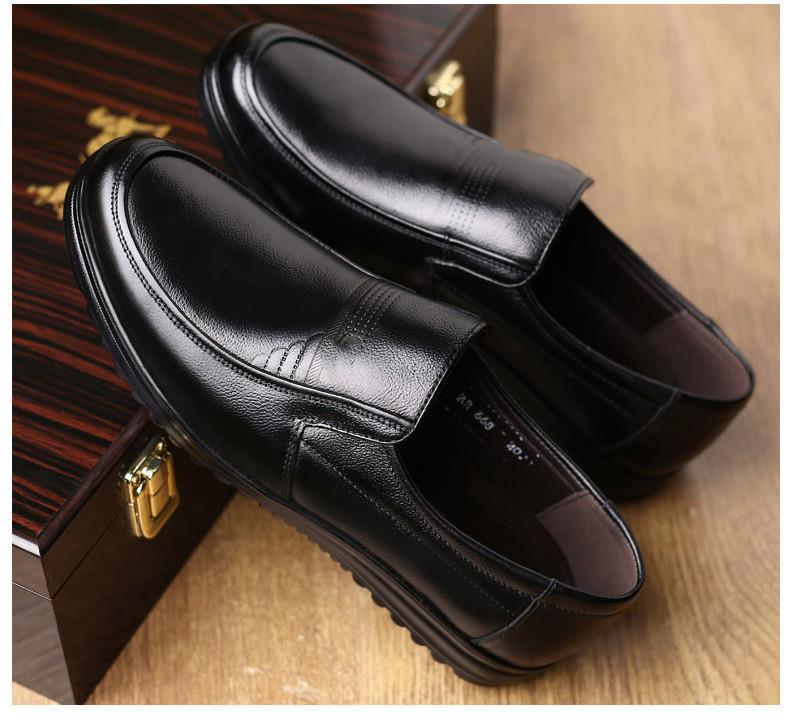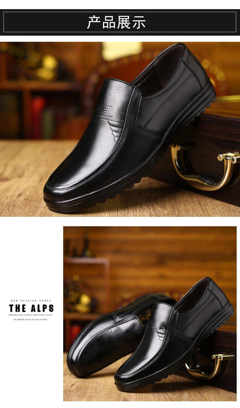 真牛皮男士休闲皮鞋男单鞋中老年软底爸爸皮鞋