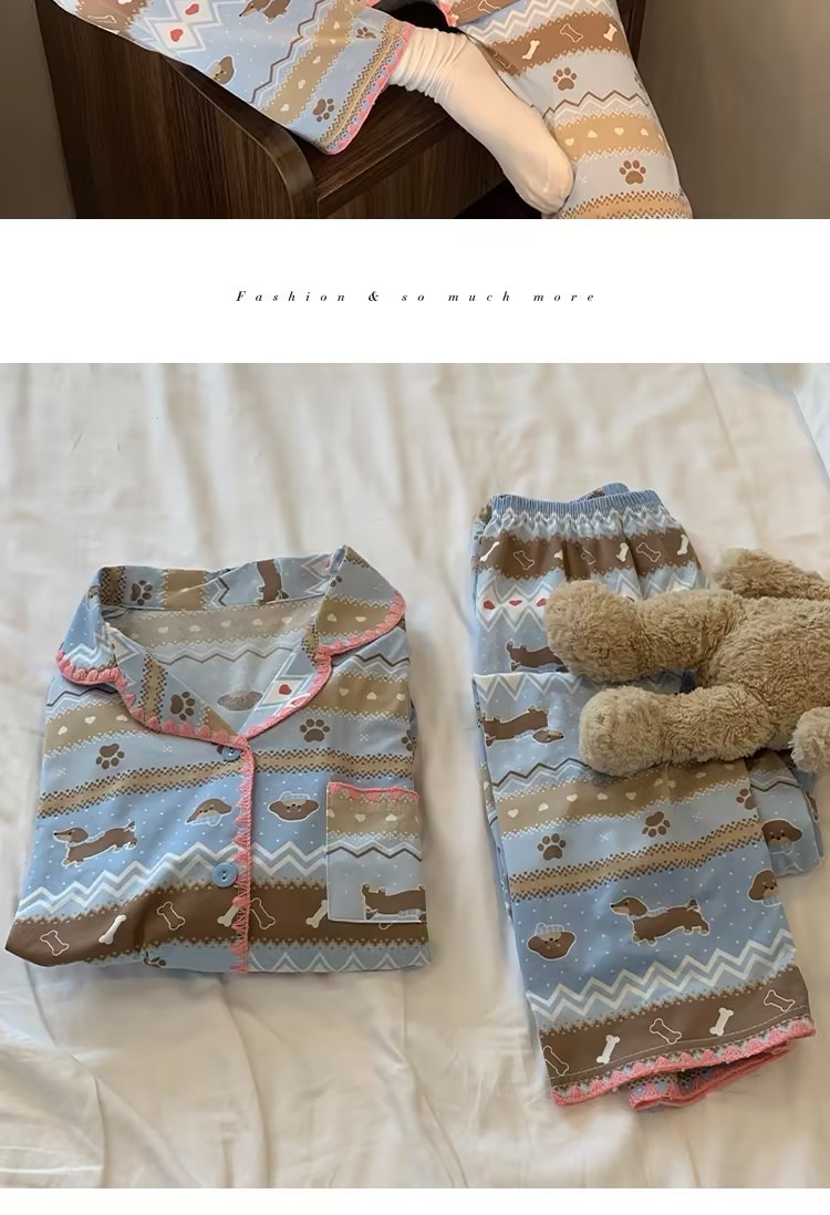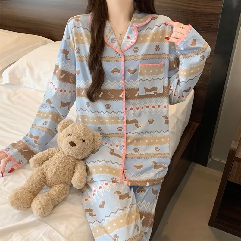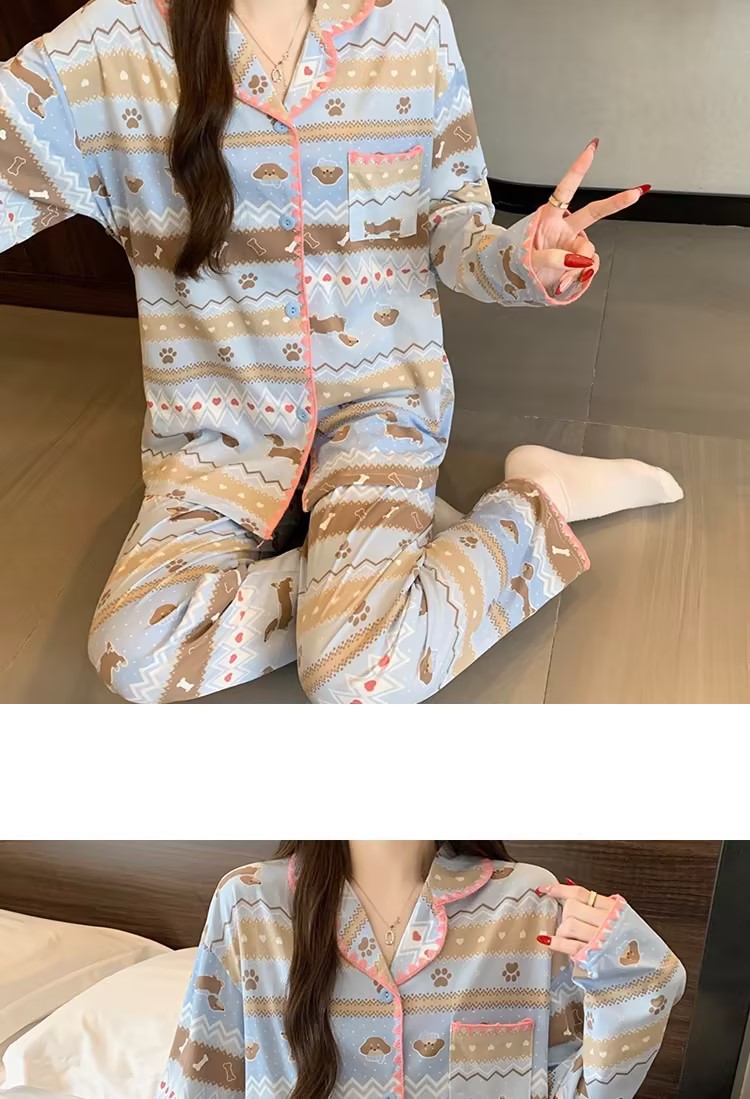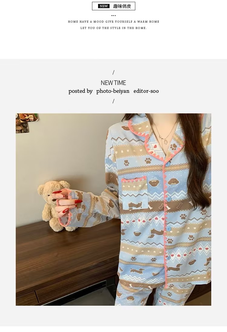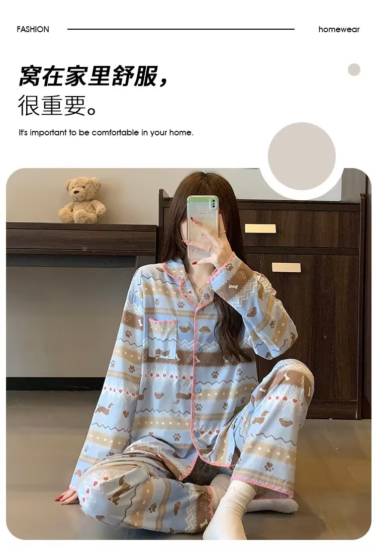 YW买手优选卡通仿棉睡衣女款可外穿贝壳刺绣边家居服套装170545581(预售3-5天发货)