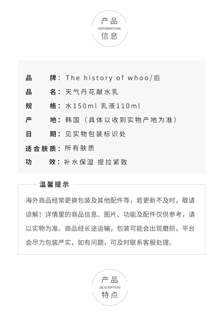 WHOO后天气丹光彩紧颜爽肤水150ml/乳液110ml补水保湿紧致浸透亮泽不油腻淡化细纹