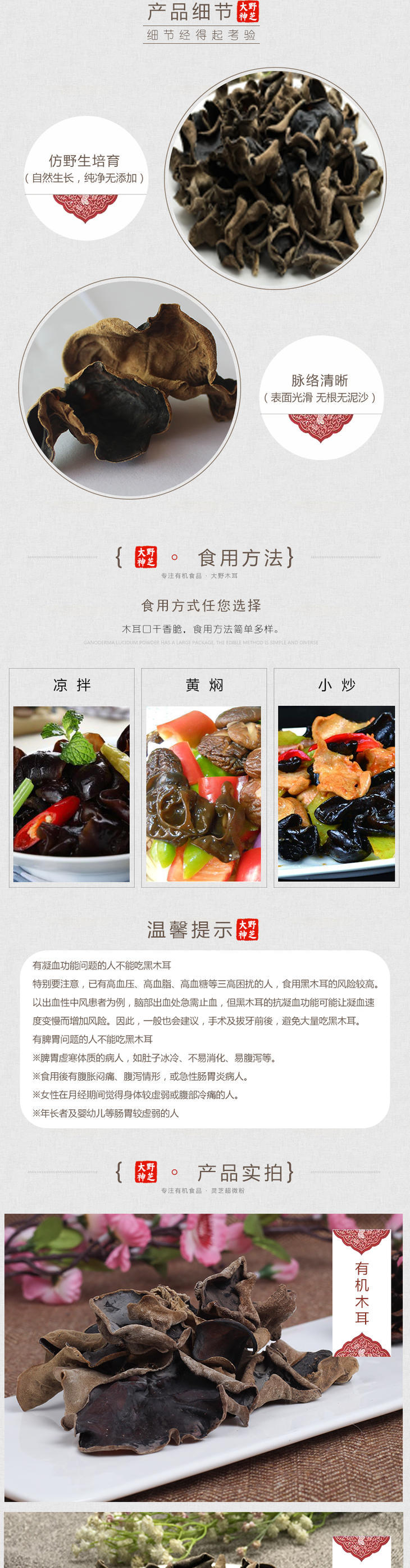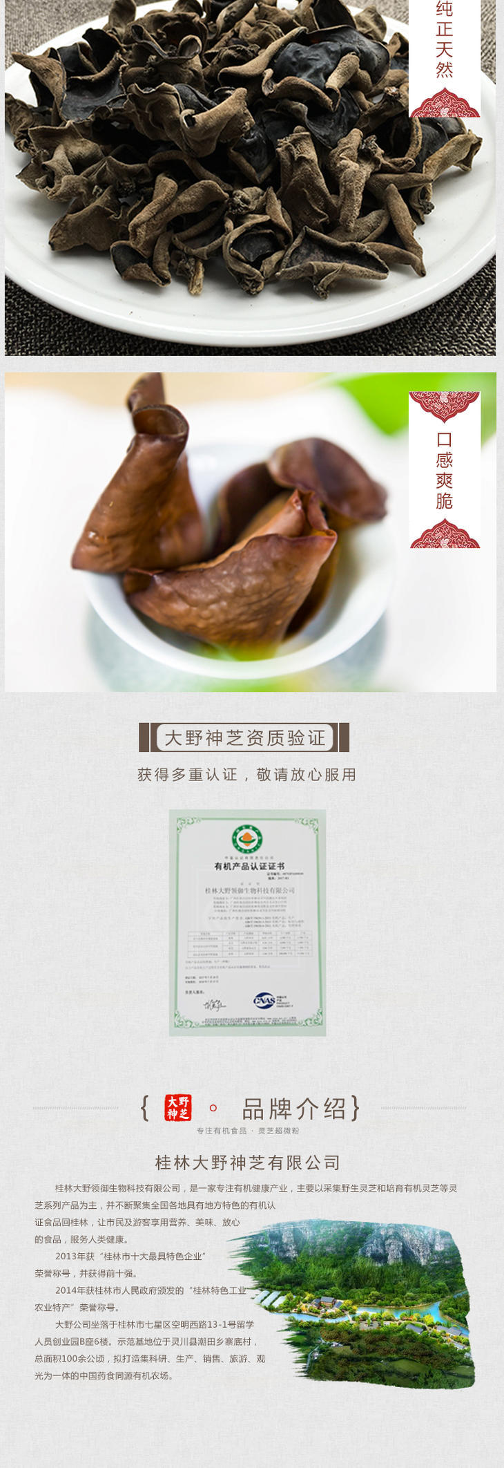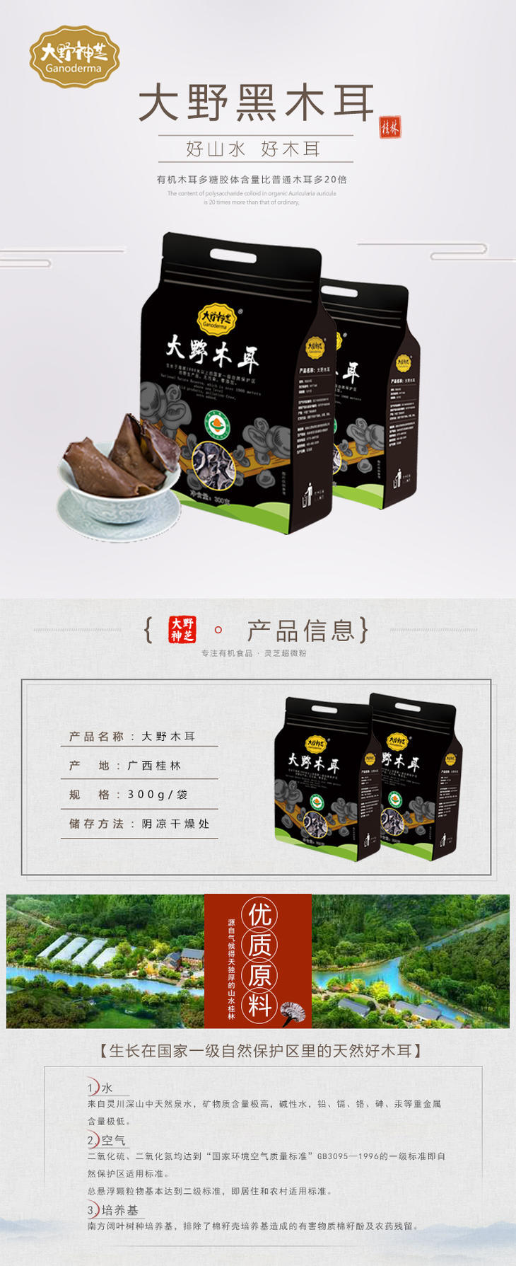 丨有机丨黑木耳 广西长寿瑶乡特产 干货300克 大野神芝