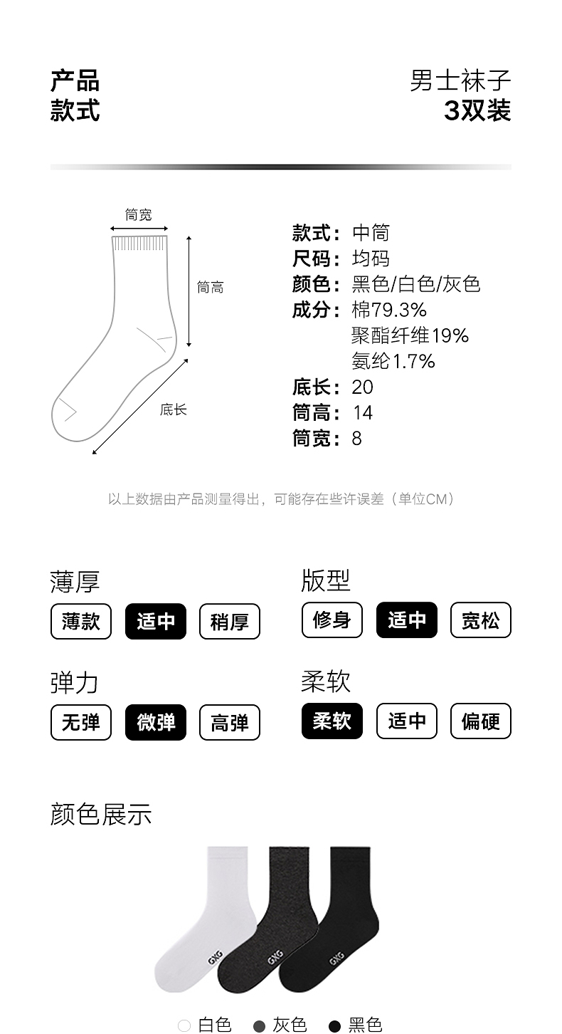GXG男士商务中筒中邦袜【3双装】印花字母运动休闲袜