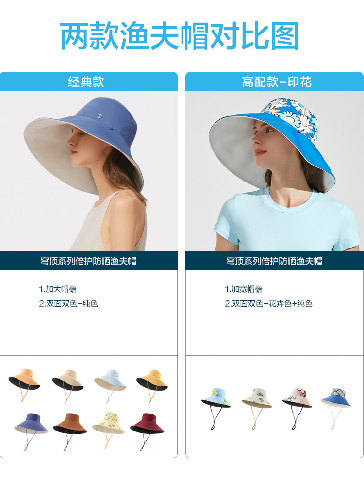 蕉下【李小冉同款】遮阳帽女防晒帽渔夫帽加宽帽檐透气UPF50+防紫外线海边沙滩户外运动2021-倍护渔夫帽【下单备注颜色】